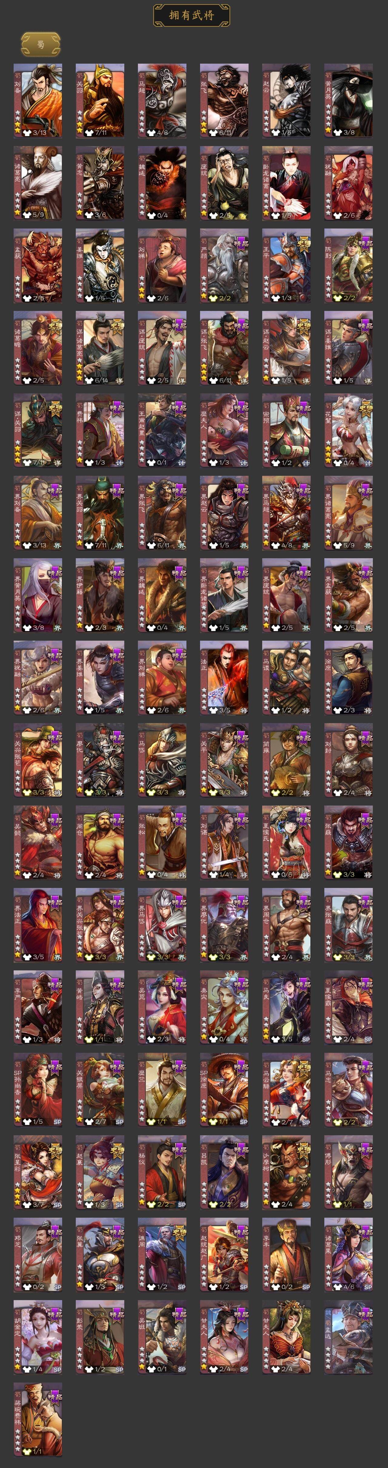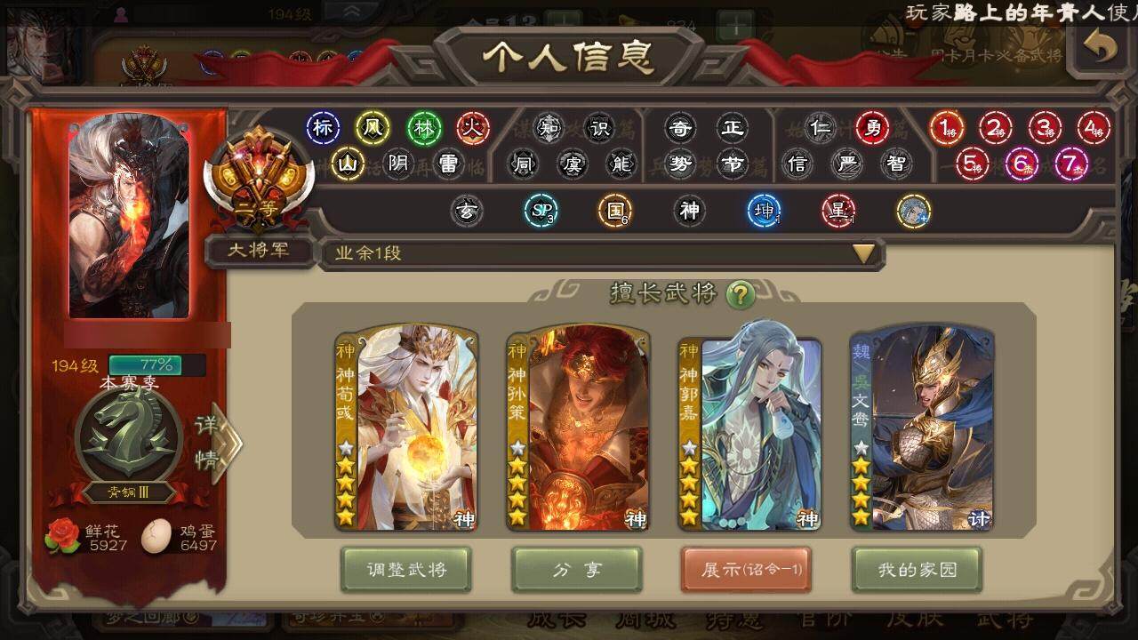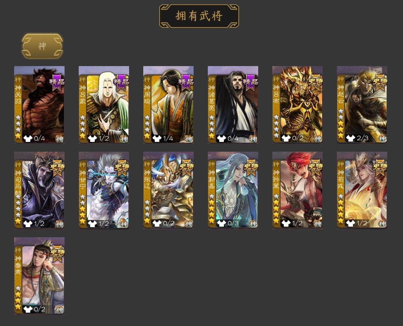 [15181032]【1025】官阶:大将军;vip等级:vip13;史诗武将数量:60;动态皮肤数量:61;武将总数:422;史诗宝珠数量:0;将魂数量:1956;神将:10;魏国史诗武将:47;蜀国史诗武将:11;吴国史诗武将:7;群史诗武将:21 神吕布神赵云神司马懿神甘宁神张辽神郭嘉神孙策神荀彧神诸葛亮神鲁肃星周不疑谋曹仁杨修羊徽瑜王元姬界钟会界于禁嵇康陈琳曹婴曹纯戏志才蒋干程昱谋诸葛亮马云騄谋赵云诸葛瞻赵襄张星彩王平沙摩柯谯周花鬘谋关羽孙寒华骆统界徐盛界步练师势太史慈文鸯十常侍皇甫嵩左慈张让徐荣星黄忠星甘宁司马徽麹义庞德公南华老仙沮授界李儒杜预卑弥呼谋张角许攸星董卓兀突骨司马昭神吕蒙神周瑜神关羽sp关羽sp曹仁sp蔡文姬乐进曹昂诸葛诞朱灵文聘sp姜维张春华钟会曹冲郭淮满宠界王异界曹操界司马懿界夏侯惇界张辽界许褚界郭嘉李典曹真韩浩史涣陈群曹叡曹休钟繇司马朗王基李通郭皇后孙资刘放辛宪英界甄姬吕虔鲁芝蒯越蒯良界典韦界荀彧界徐晃杜畿界曹丕毌丘俭界邓艾张恭贾逵界曹植界满宠界郭淮卞夫人华歆蔡贞姬袁涣王双崔琰毛玠杨阜曹嵩谋徐晃谋于禁谋甄姬谋荀彧界曹休牵招胡班成济玄毌丘俭李昭焦伯谋张辽谋郭嘉牛金界夏侯渊界曹仁臧霸唐咨董昭sp孙尚香关银屏夏侯霸马良关兴张苞廖化界马岱关平简雍刘封界法正界关兴张苞界刘备界关羽界张飞界赵云界马超sp徐庶吴懿周仓张松刘谌夏侯氏糜竺马忠李严黄皓吴苋秦宓界黄月英界诸葛亮赵统赵广严颜界伊籍界卧龙诸葛界庞统界孟获界祝融陈到界姜维界刘禅胡金定吕凯张翼杨仪界廖化邓芝傅肜费祎糜夫人王甫赵累界周仓宗预彭羕谋庞统界张嶷谋姜维谋张飞吴班诸葛果界魏延蒋琬费祎甘夫人鲁肃孙茹凌操大乔小乔诸葛恪诸葛瑾孙鲁育程普韩当潘璋马忠虞翻朱然界周泰界甘宁界吕蒙界黄盖界周瑜界大乔界陆逊孙鲁班朱桓顾雍孙休朱治全琮步骘阚泽孙登岑昏徐氏薛综界孙权界孙
