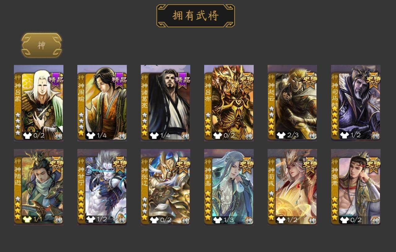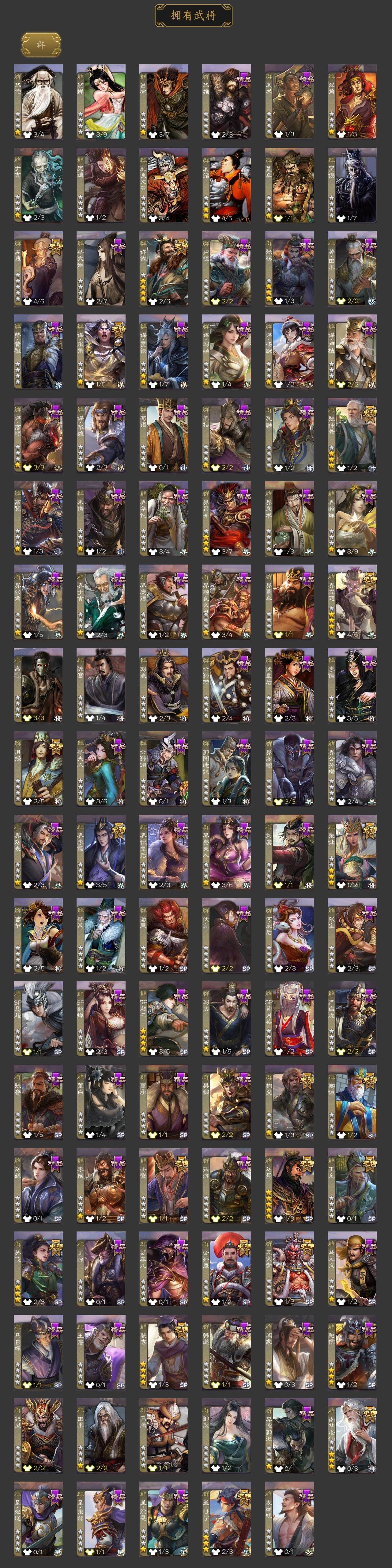 [15181097]【483】官阶:大将军;vip等级:vip11;史诗武将数量:66;动态皮肤数量:47;武将总数:426;史诗宝珠数量:0;将魂数量:99;神将:12;魏国史诗武将:37;蜀国史诗武将:11;吴国史诗武将:9;群史诗武将:22 神吕布神赵云神司马懿神陆逊神甘宁神张辽神郭嘉神荀彧神吕蒙神周瑜神诸葛亮神鲁肃曹髦星周不疑王粲文鸯王元姬王凌王朗司马师界钟会界于禁界曹真嵇康郝昭曹婴曹纯戏志才刘晔马云騄谋赵云谋马超诸葛瞻周群张星彩王平沙摩柯谯周界黄忠花鬘周处吴景孙寒华骆统留赞界朱然界徐盛界步练师贺齐谋郭嘉裴秀左慈张仲景张让星甘宁王允陶谦苏飞麹义南华老仙刘焉沮授界左慈界李儒公孙康鲍信谋张角张绣李傕阎象许攸神郭嘉-虎年清明动态神太史慈-勇撼日月动态神荀彧-虎年清明动态神甘宁-万人辟易动态神陆逊-绽焰摧枯动态神诸葛亮-风舞魔鸟动态神赵云-战龙在野动态神赵云-神龙天降神司马懿-鉴往知来动态曹丕-龙年中秋动态sp蔡文姬-兔年冬日动态许褚-兔年端午动态许褚-虎啸生风动态司马懿-牛年立冬动态荀彧-驱虎吞狼动态曹丕-牛年清明动态界司马懿-牛年立冬动态界许褚-虎啸生风动态界曹丕-牛年清明动态张春华-牛年立冬动态张春华-雪中舞刃动态钟会-谋谟之勋动态曹真-虎年春节动态界钟会-谋谟之勋动态戏志才-举棋若定动态朱灵-以战破氐动态曹纯-虎年春节动态王元姬-鼠年冬至动态马超-虎年冬至动态马超-明良千古动态诸葛亮-明良千古动态界诸葛亮-明良千古动态关银屏-鼠年中秋动态关索-虎年七夕动态李丰-太仓聚粟动态周处-义除三害动态周瑜-兔年七夕动态孙寒华-莲华熠熠动态孙权-吴王六剑动态界孙权-吴王六剑动态孙鲁班-牛年端午动态界孙鲁班-牛年端午动态徐氏-琪花瑶草动态刘赞-灵魂歌王动态陆逊-蛇年清明动态文鸯-势若万钧动态高顺-每战必克动态貂蝉-绝世倾城动态吕布-傲睨万物动态袁绍-一往无前动态