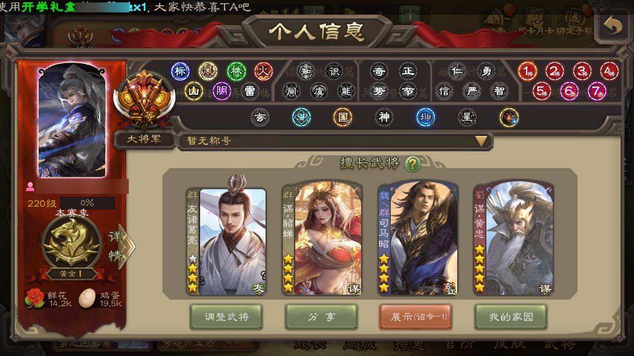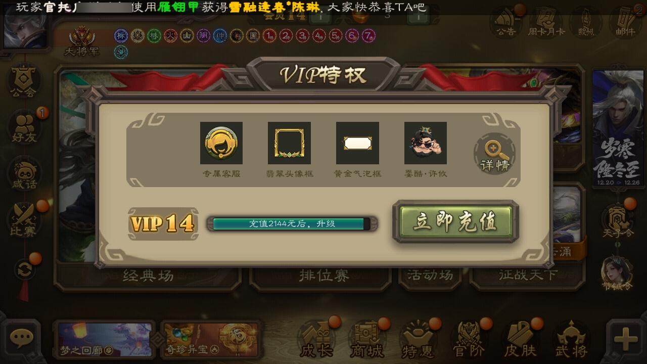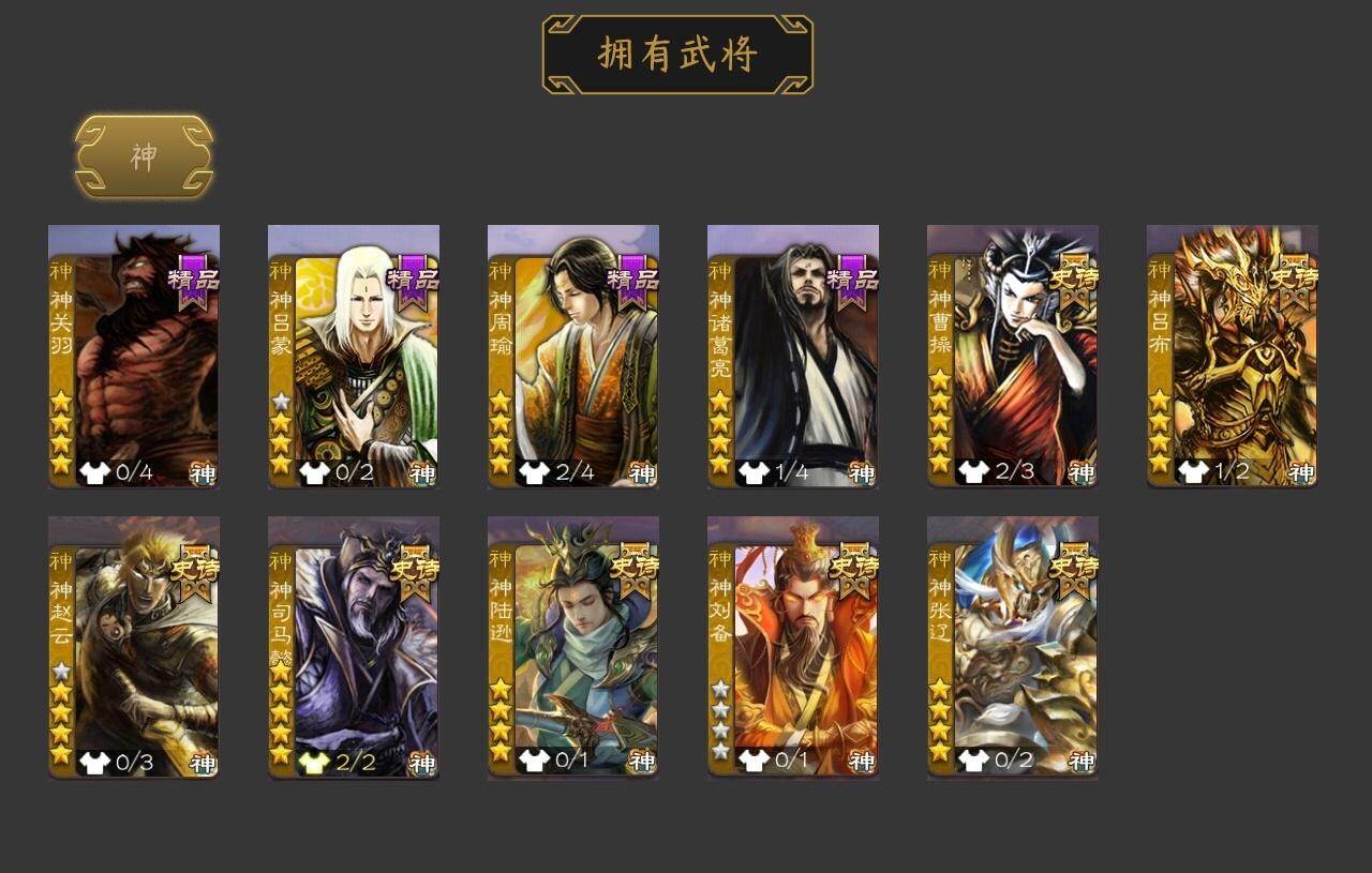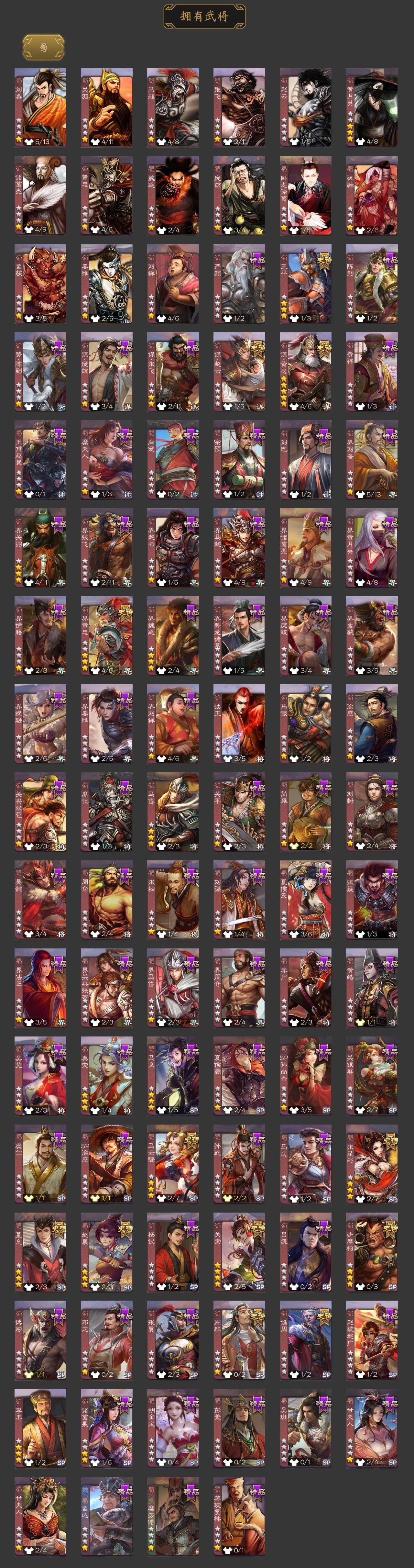 [15181120]【521】官阶:大将军;vip等级:vip14;史诗武将数量:64;动态皮肤数量:53;武将总数:423;史诗宝珠数量:0;将魂数量:1372;神将:11;魏国史诗武将:36;蜀国史诗武将:12;吴国史诗武将:7;群史诗武将:20 神曹操神吕布神赵云神司马懿神陆逊神刘备神张辽神关羽神吕蒙神周瑜神诸葛亮sp司马昭杨修文鸯王元姬王朗魏-司马昭马钧界钟会界于禁嵇康陈琳曹婴曹纯戏志才刘晔谋夏侯惇关索马云騄谋黄忠谋赵云周群赵襄张星彩王平沙摩柯谯周界黄忠董允谋黄盖周处吴景孙皓留赞界徐盛贺齐谋貂蝉左慈郑玄张让杨彪徐荣王允陶谦司马徽麹义庞德公祢衡刘焉沮授界李儒杜预卑弥呼李傕许攸友诸葛亮神周瑜-陵光引灵动态神诸葛亮-孟章诛邪动态神司马懿-徐图大略神曹操-天下归心神曹操-玄天通冥动态神吕布-监兵噬魅动态神司马懿-鉴往知来动态王元姬-婆娑起舞(动态)曹植-龙年中秋动态钟会-潜蛟觊天动态钟繇-安民护祚(动态)甄姬-明珠耀躯(动态)曹冲-五陵英少动态甄姬-洛水神韵动态荀彧-驱虎吞狼动态曹丕-猪年端午动态王基-独秉固志动态界甄姬-洛水神韵动态界曹丕-猪年端午动态张春华-宣穆夜袭动态王异-轻燕掠影动态界王异-轻燕掠影动态程昱-泰山捧日动态曹婴-兔年春节动态司马昭-昭威淮南(动态)刘备-猪年圣诞动态刘备-龙骧麟振动态马超-牛年春节动态马超-西凉雄狮动态张飞-明良千古动态黄月英-木牛流马动态黄忠-明良千古动态魏延-麒麟生角动态刘禅-猪年端午动态界刘备-猪年圣诞动态界刘备-龙骧麟振动态界马超-牛年春节动态界马超-西凉雄狮动态界黄月英-木牛流马动态界魏延-麒麟生角动态界刘禅-猪年端午动态夏侯氏-猪年中秋动态sp孙尚香-猪年圣诞动态马云騄-牛年春节动态赵襄-猪年春节动态关索-鼠年中秋动态诸葛果-蛇年限定动态小乔-兔年七夕动态吕蒙-剑起惊澜动态周瑜-免年清明动态孙权-猪年端午动态陆逊-猪年圣诞动态