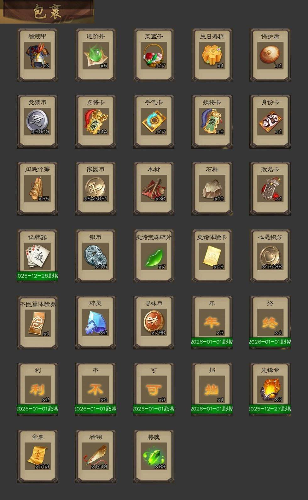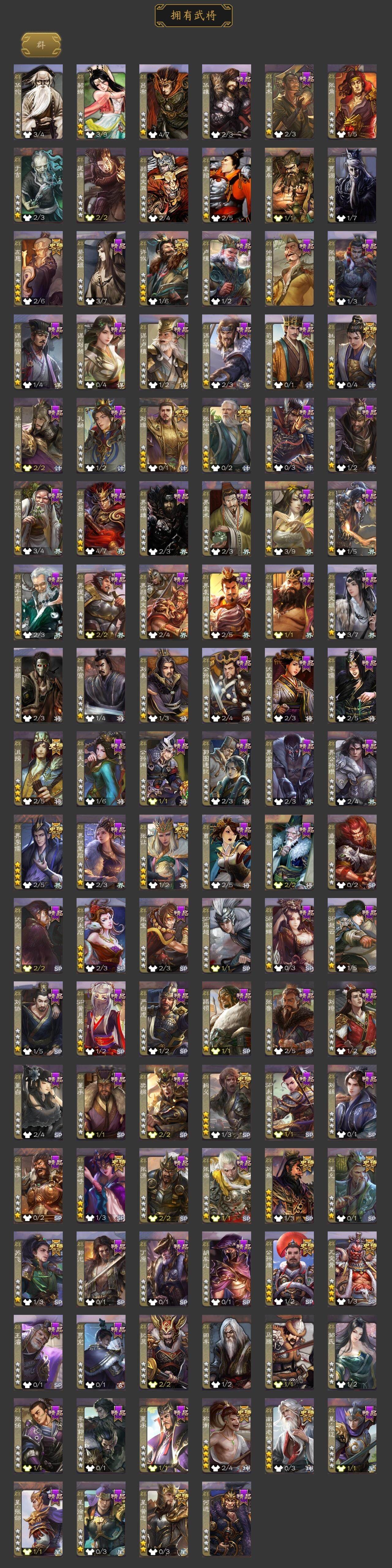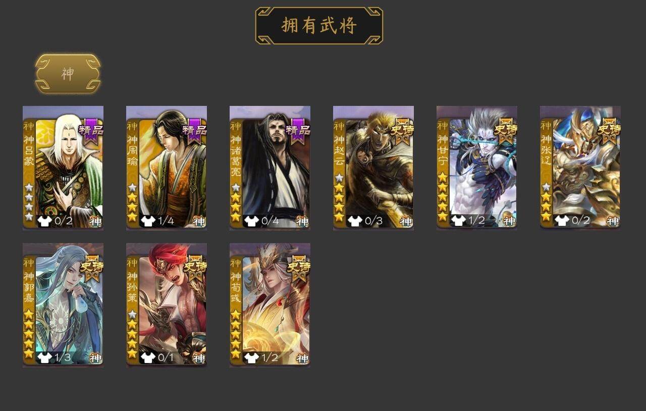 [15181147]【20】官阶:大将军;vip等级:vip13;史诗武将数量:57;动态皮肤数量:34;武将总数:422;史诗宝珠数量:0;将魂数量:88;神将:9;魏国史诗武将:31;蜀国史诗武将:9;吴国史诗武将:9;群史诗武将:19 神赵云神甘宁神张辽神郭嘉神孙策神荀彧神吕蒙神周瑜神诸葛亮王粲杨修文鸯王元姬王凌界钟会界于禁界曹真嵇康陈琳曹婴曹纯戏志才刘晔关索谋诸葛亮谋赵云谋马超周群张星彩沙摩柯谯周花鬘周处吴景孙寒华骆统留赞界朱然界徐盛界步练师贺齐左慈张仲景张让星黄忠王允苏飞麹义南华老仙祢衡刘璋刘焉沮授界李儒公孙康杜预卑弥呼张绣李傕许攸神郭嘉-虎年清明动态神荀彧-虎年清明动态神甘宁-万人辟易动态sp司马昭-鼠年冬至(动态)钟会-龙年端午(动态)钟繇-安民护祚(动态)星周不疑-龙年清明动态sp蔡文姬-兔年冬日动态司马懿-牛年立冬动态邓艾-神兵天降动态王粲-笔翰如流动态界司马懿-牛年立冬动态界邓艾-神兵天降动态张春华-牛年立冬动态戏志才-举棋若定动态曹婴-锋芒毕露动态朱灵-以战破氐动态曹纯-虎年春节动态王元姬-鼠年冬至动态司马师-牛年中秋动态关羽-明良千古动态马超-明良千古动态黄月英-虎年中秋动态黄月英-明良千古动态诸葛亮-明良千古动态界诸葛亮-明良千古动态界黄月英-明良千古动态夏侯氏-明良千古动态sp孙尚香-明良千古动态关索-虎年七夕动态胡金定-明良千古动态卧龙诸葛-火烧博望动态孙权-牛年七夕动态孙权-冠绝天下动态大乔-鼠年春分动态小乔-鼠年春分动态界大乔-鼠年春分动态界孙权-牛年七夕动态界小乔-鼠年春分动态徐盛-破军杀将动态朱然-剑舞枫飞动态孙鲁班-牛年端午动态界孙鲁班-牛年端午动态刘赞-灵魂歌王动态鲁肃-蛇年端午动态貂蝉-绝世倾城动态吕布-傲睨万物动态界貂蝉-绝世倾城动态李儒-鸠杀少帝动态界李儒-鸠杀少帝动态何太后-蛇蝎为心动态卑弥呼-鬼渊蝶引动态刘焉-雄踞益州