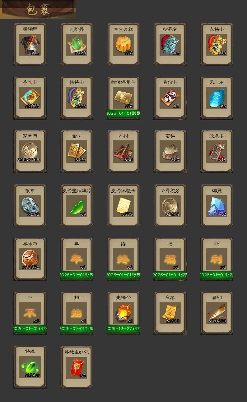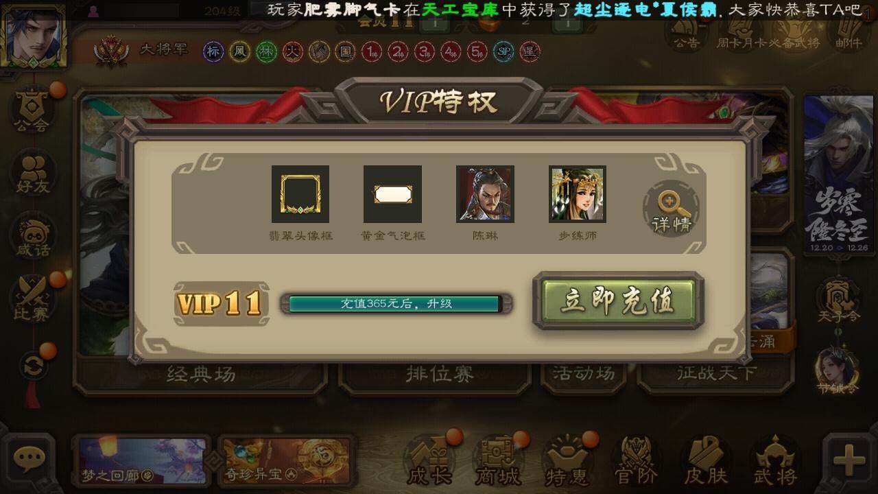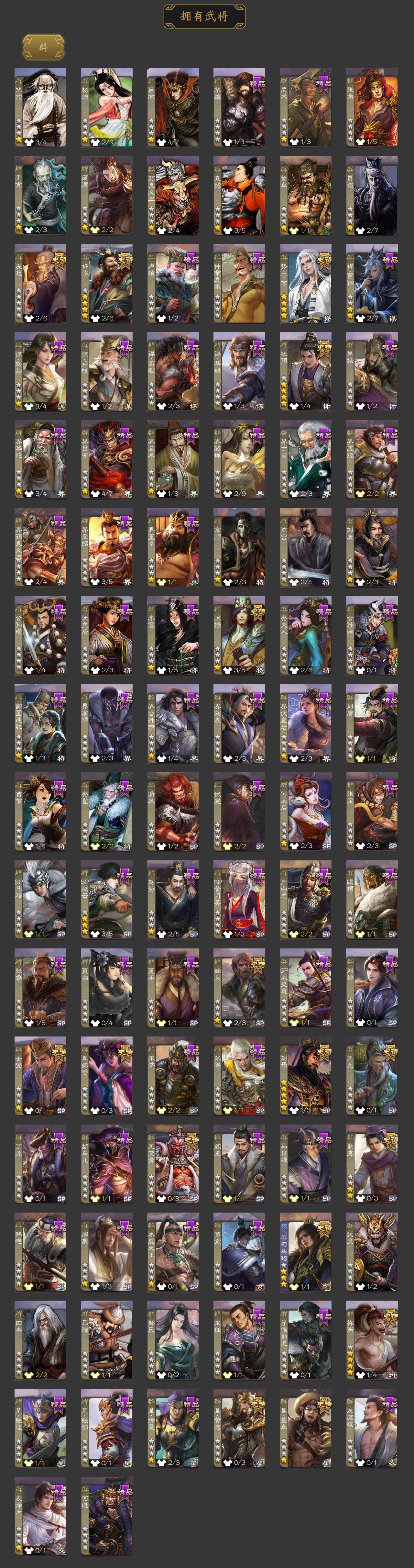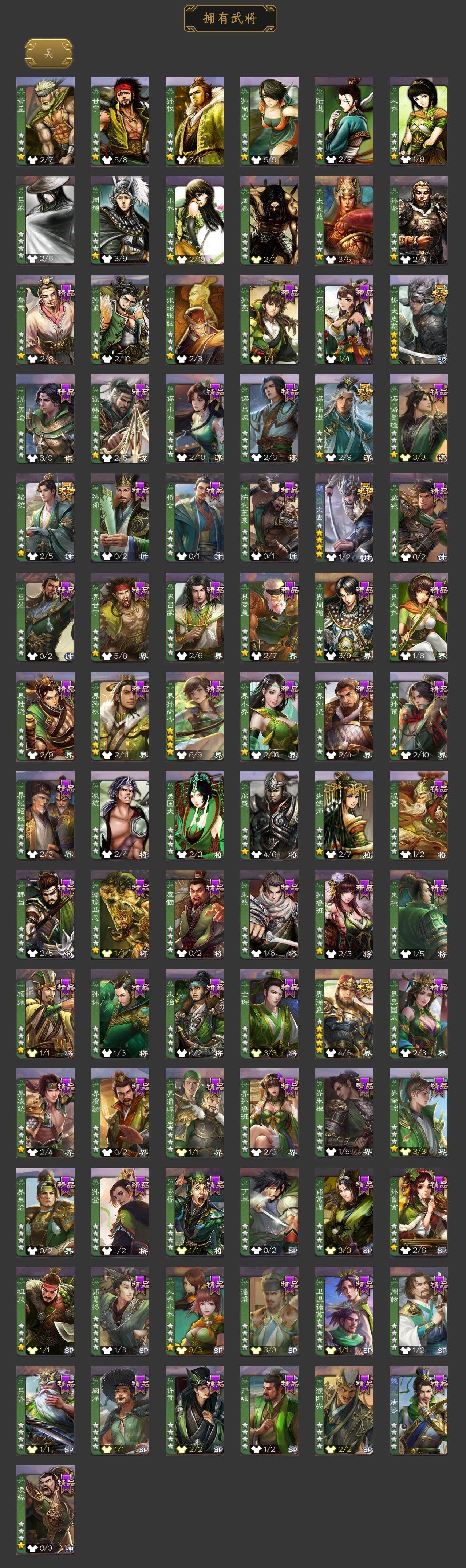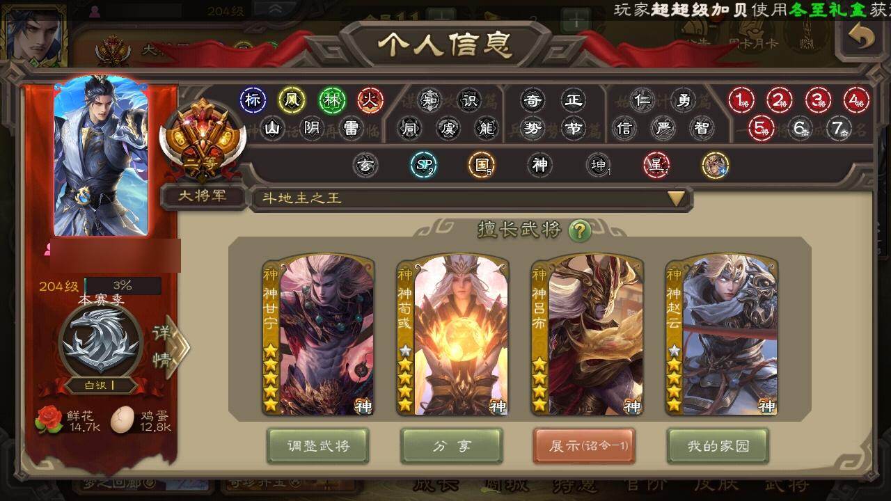 [15181179]【218】官阶:大将军;vip等级:vip11;史诗武将数量:53;动态皮肤数量:51;武将总数:396;史诗宝珠数量:0;将魂数量:2309;神将:11;魏国史诗武将:25;蜀国史诗武将:11;吴国史诗武将:4;群史诗武将:16 神吕布神赵云神陆逊神刘备神甘宁神张辽神孙策神荀彧神吕蒙神周瑜神鲁肃星周不疑王粲杨修文鸯魏-司马昭司马师马钧界钟会嵇康郝昭曹纯戏志才清河公主马云騄谋夏侯氏谋赵云谋马超诸葛瞻赵襄沙摩柯谯周傅佥花鬘谋关羽谋陆逊骆统界徐盛势太史慈谋黄月英裴秀左慈星黄忠王允麹义祢衡刘焉沮授杜预卑弥呼阎象许攸势于吉友徐庶星董卓神鲁肃-九州为局神荀彧-虎年清明动态神荀彧-匡汉延祚动态神张辽-散敌擒孙神周瑜-波澜不惊神赵云-鳞振九霄神甘宁-战破无间神吕蒙-心生万象神甘宁-万人辟易动态神周瑜-陵光引灵动态神吕布-冠绝天下动态曹植-龙年中秋动态甄姬-明珠耀躯(动态)sp蔡文姬-兔年冬日动态甄姬-牛年清明动态界甄姬-牛年清明动态张春华-雪中舞刃动态曹昂-竭战麟伤动态戏志才-举棋若定动态朱灵-以战破氐动态司马昭-昭威淮南(动态)嵇康-龙生九子动态星徐晃-斧引霹雳动态清河公主-魅影萦心动态刘备-龙御天下动态诸葛亮-龙年限定动态夏侯氏-明良千古动态夏侯氏-猪年中秋动态马云騄-牛年春节动态诸葛果-虎年中秋动态诸葛果-蛇年限定动态卧龙诸葛-火烧博望动态太史慈-涤荡江东动态孙策-兔年中秋动态周处-义除三害动态陆逊-龙年七夕动态孙权-兔年中秋动态孙策-虎踞江东动态孙尚香-星流霆击动态界孙尚香-星流霆击动态徐盛-破军杀将动态孙鲁育-猪年春节动态鲁肃-蛇年端午动态文鸯-势若万钧动态许攸-火烧乌巢动态袁绍-声震寰宇动态麹义-扬刀立威动态杜预-龙吟破竹动态刘协-困龙犹斗动态吕布-虓虎之勇动态界吕布-虓虎之勇动态刘焉-雄踞益州动态sp赵云-威名尽显动态皇甫嵩-奋钺振旅动态祢衡-狷介疏狂动态阎象-知