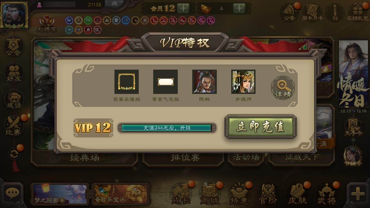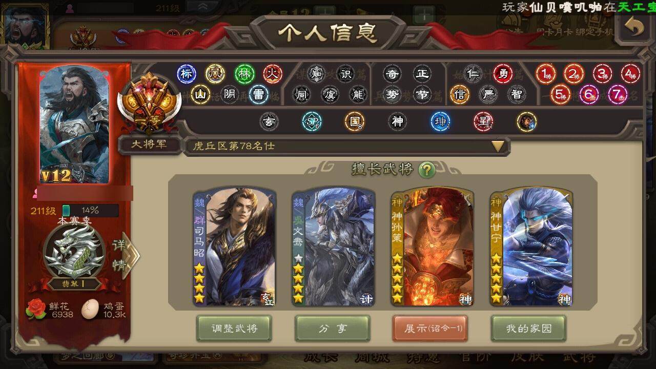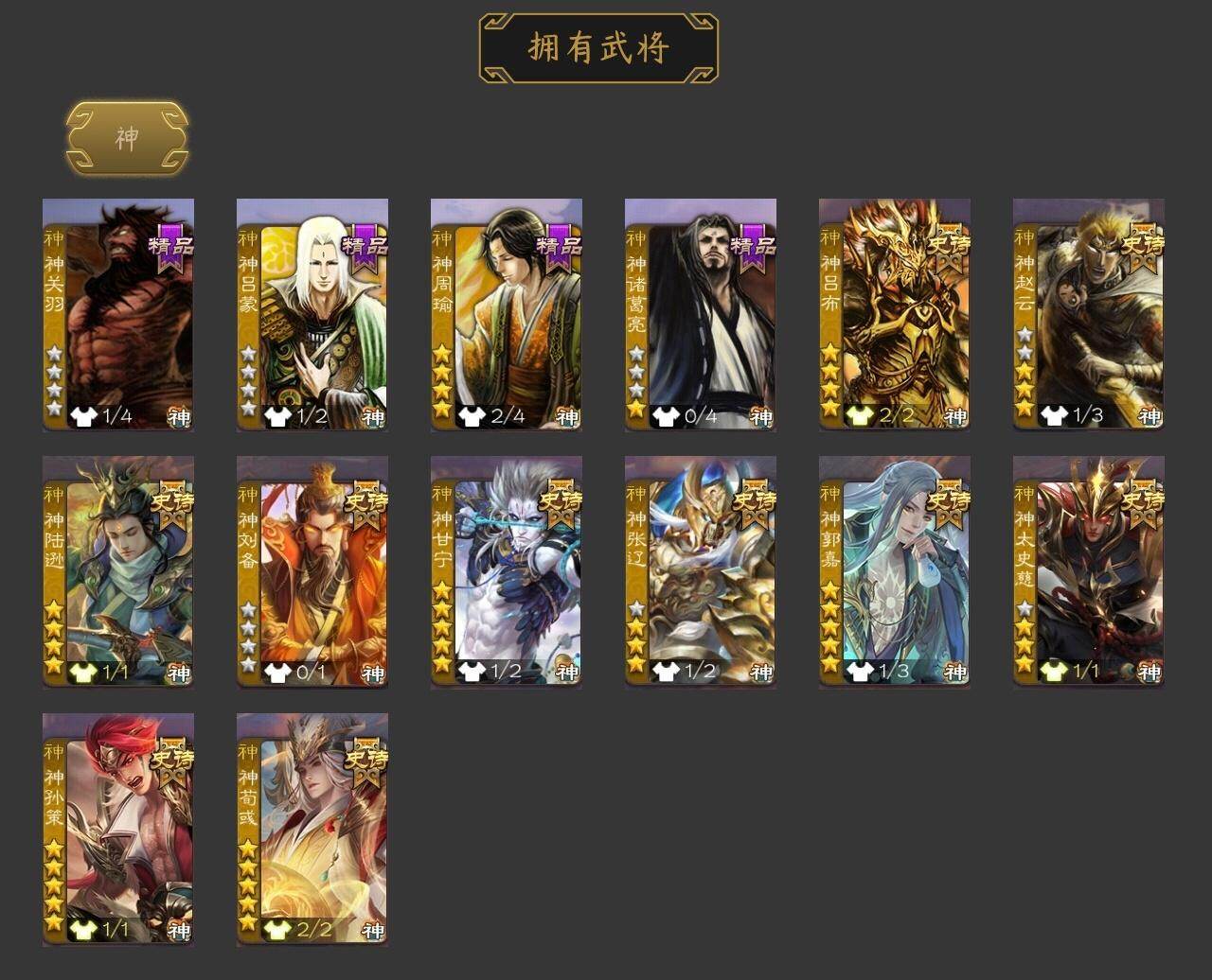 [15181230]【346】官阶:大将军;vip等级:vip12;史诗武将数量:73;动态皮肤数量:74;武将总数:455;史诗宝珠数量:0;将魂数量:384;神将:14;魏国史诗武将:39;蜀国史诗武将:12;吴国史诗武将:8;群史诗武将:26 神吕布神赵云神陆逊神刘备神甘宁神张辽神郭嘉神太史慈神孙策神荀彧神关羽神吕蒙神周瑜神诸葛亮sp司马昭星周不疑谋曹仁王粲杨修文鸯王元姬王凌魏-司马昭界钟会界于禁界曹真嵇康郝昭陈琳曹婴曹纯戏志才刘晔关索马云騄谋马超诸葛瞻周群赵襄张星彩沙摩柯谯周界黄忠花鬘董允周处吴景骆统留赞界朱然界徐盛界步练师贺齐裴秀界沮授左慈张让杨彪星黄忠星甘宁王允陶谦苏飞审配麹义南华老仙刘焉沮授界左慈界李儒公孙康卑弥呼鲍信谋张角张绣李傕阎象许攸星董卓神鲁肃-九州为局神张辽-威震江东神郭嘉-虎年清明动态神太史慈-勇撼日月动态神孙策-霸王再世动态神荀彧-虎年清明动态神荀彧-匡汉延祚动态神甘宁-万人辟易动态神陆逊-绽焰摧枯动态神关羽-血海罗刹动态神吕蒙-兼资文武动态神周瑜-焰腾麒麟动态神曹操-天下归心神吕布-监兵噬魅动态神吕布-冠绝天下动态神赵云-神龙天降星周不疑-才广志宏动态曹丕-龙年中秋动态sp蔡文姬-兔年冬日动态司马懿-牛年立冬动态荀彧-驱虎吞狼动态曹丕-牛年清明动态邓艾-神兵天降动态郝昭-死守陈仓动态王粲-笔翰如流动态界司马懿-牛年立冬动态界曹丕-牛年清明动态界邓艾-神兵天降动态钟会-谋谟之勋动态曹真-虎年春节动态界钟会-谋谟之勋动态曹昂-竭战麟伤动态戏志才-举棋若定动态朱灵-以战破氐动态曹纯-长坂败备动态司马昭-昭威淮南(动态)司马懿-重张区宇(动态)孟获-祸崇南疆动态刘备-龙御天下动态刘备-龙骧麟振动态关羽-明良千古动态马超-虎年冬至动态张飞-据水断桥动态黄月英-虎年中秋动态诸葛亮-明良千古动态诸葛瞻-绵竹之殇动态界刘备-龙骧麟振动态界张飞-据水断桥动态