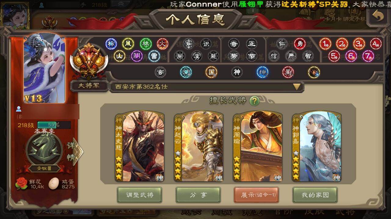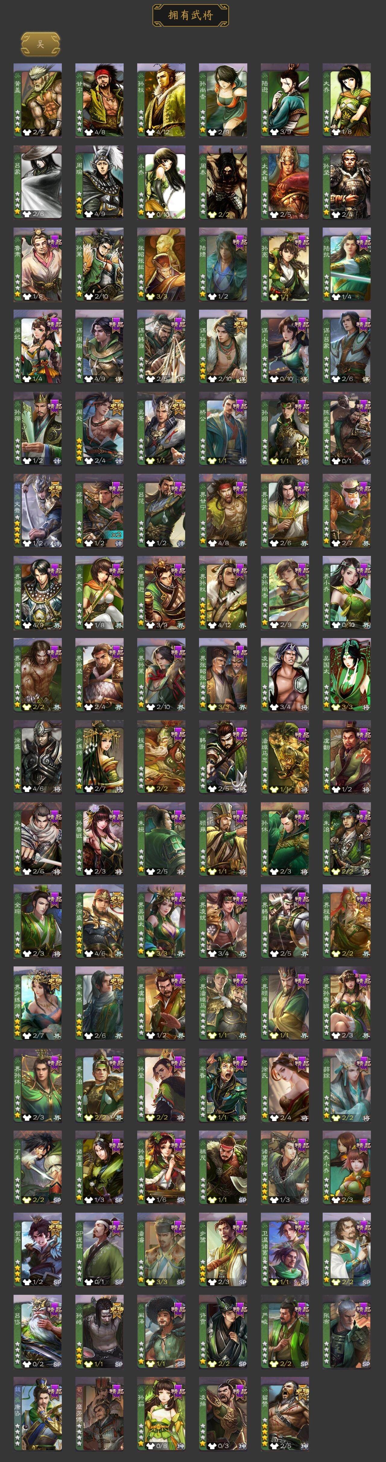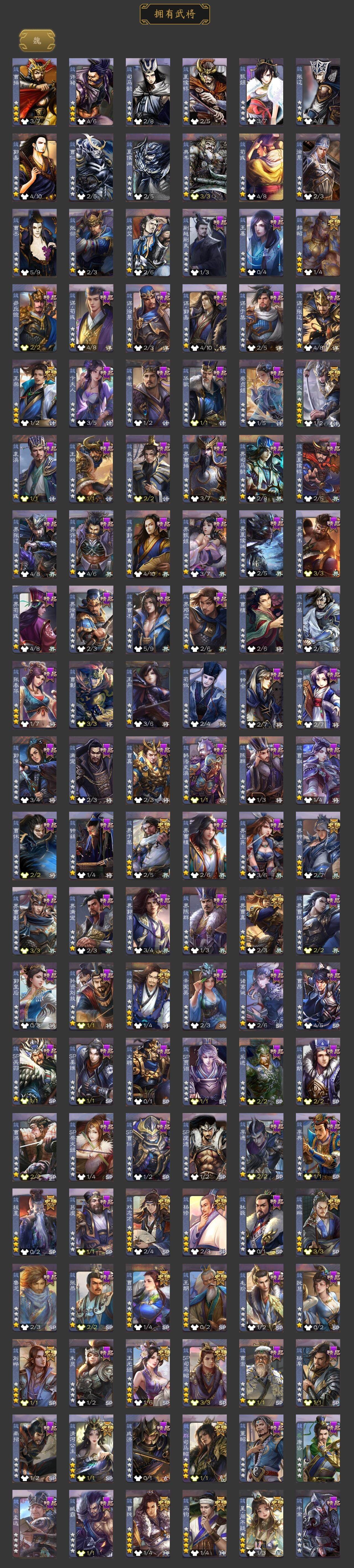 [15181254]【614】官阶:大将军;vip等级:vip13;史诗武将数量:79;动态皮肤数量:58;武将总数:457;史诗宝珠数量:0;将魂数量:2414;神将:8;魏国史诗武将:34;蜀国史诗武将:16;吴国史诗武将:11;群史诗武将:28 神吕布神赵云神陆逊神甘宁神张辽神郭嘉神太史慈神诸葛亮sp司马昭星周不疑王粲杨修王元姬王朗马钧界钟会界于禁界曹真嵇康郝昭陈琳曹婴曹纯戏志才刘晔清河公主程昱关索马云騄谋黄忠谋夏侯氏谋赵云谋马超诸葛瞻周群赵襄张星彩王平沙摩柯谯周界黄忠花鬘董允谋孙策周处吴景孙皓留赞界朱然界徐盛界步练师贺齐文鸯十常侍谋貂蝉界沮授左慈张让星黄忠星甘宁王允陶谦苏飞司马徽审配麹义庞德公南华老仙祢衡刘焉沮授界左慈界李儒公孙康卑弥呼许攸星董卓兀突骨士燮司马昭神吕蒙神周瑜sp关羽sp曹仁sp蔡文姬乐进曹昂诸葛诞朱灵文聘sp姜维张春华钟会曹冲郭淮满宠界王异界曹操界司马懿界夏侯惇界张辽界许褚界郭嘉李典曹真韩浩史涣陈群曹叡曹休钟繇司马朗王基李通郭皇后孙资刘放辛宪英界甄姬吕虔鲁芝蒯越蒯良界典韦界荀彧界徐晃杜畿界曹丕毌丘俭界邓艾张恭界曹植界曹彰界满宠界郭淮卞夫人辛毗界陈群华歆蔡贞姬袁涣王双崔琰毛玠杨阜阮慧曹嵩谋徐晃谋于禁谋荀彧界曹休牵招成济谋张辽谋郭嘉牛金界夏侯渊臧霸唐咨董昭sp孙尚香关银屏夏侯霸马良关兴张苞廖化界马岱关平简雍刘封界法正界关兴张苞界刘备界关羽界张飞界赵云界马超sp徐庶吴懿周仓张松刘谌夏侯氏糜竺马忠孙乾李严黄皓吴苋秦宓界黄月英界诸葛亮赵统赵广严颜界伊籍界卧龙诸葛界庞统界孟获界祝融陈到界姜维界刘禅胡金定吕凯张翼杨仪界廖化邓芝傅肜界简雍陈震费祎糜夫人王甫赵累界周仓向宠宗预刘巴彭羕谋庞统界张嶷谋张飞吴班李遗霍峻诸葛果界魏延蒋琬费祎糜芳傅士仁甘夫人鲁肃孙茹凌操大乔小乔诸葛恪诸葛瑾孙鲁育程普韩当潘璋马忠虞翻朱然