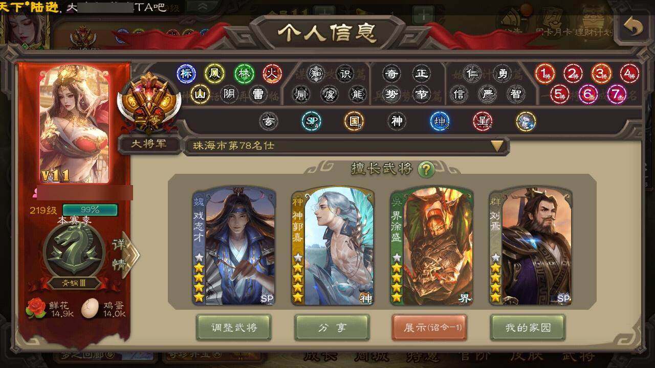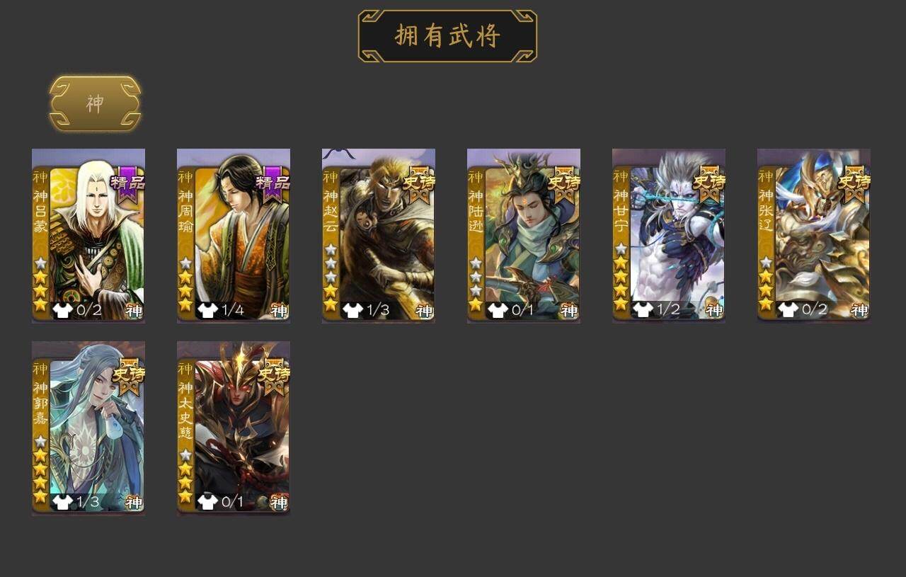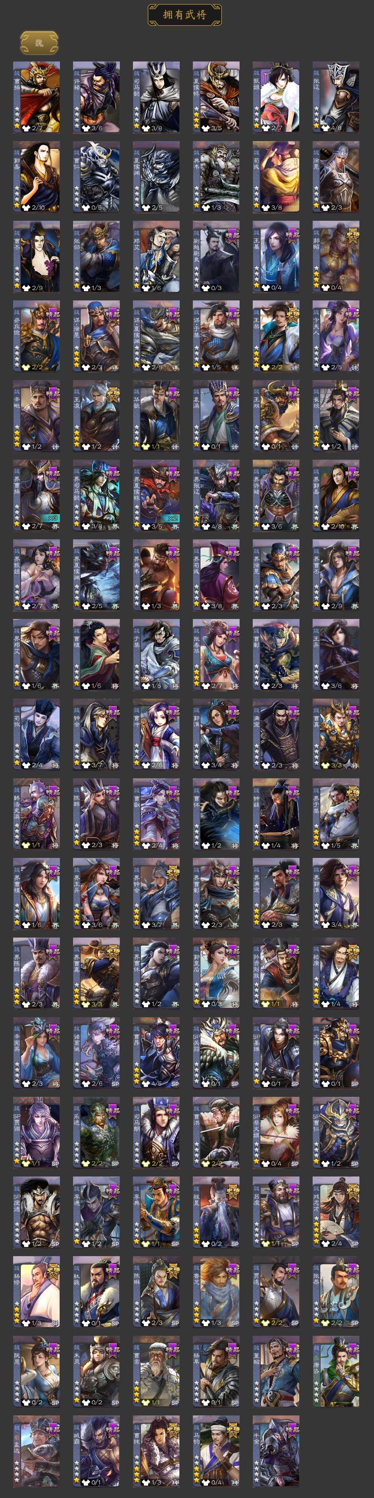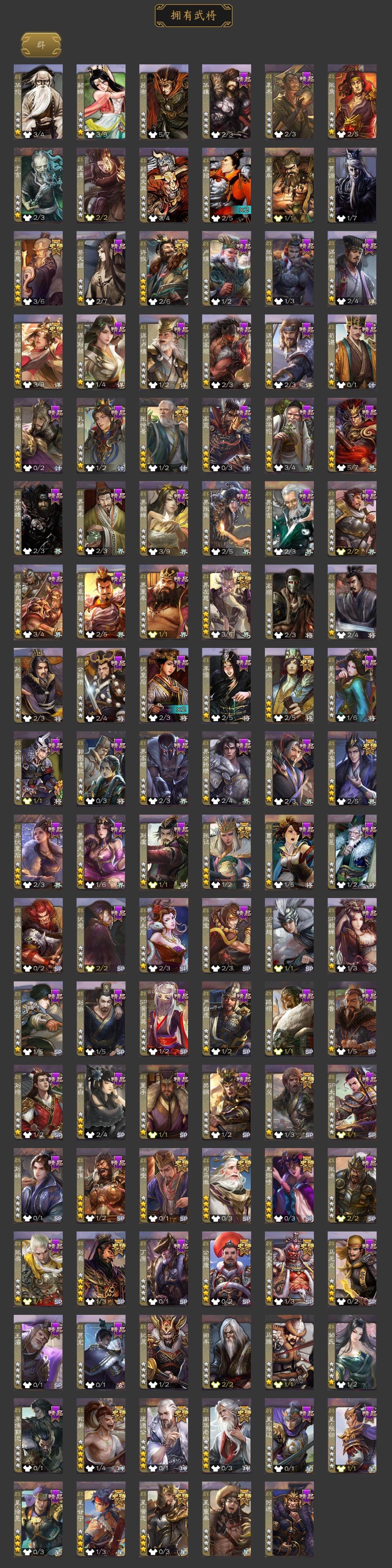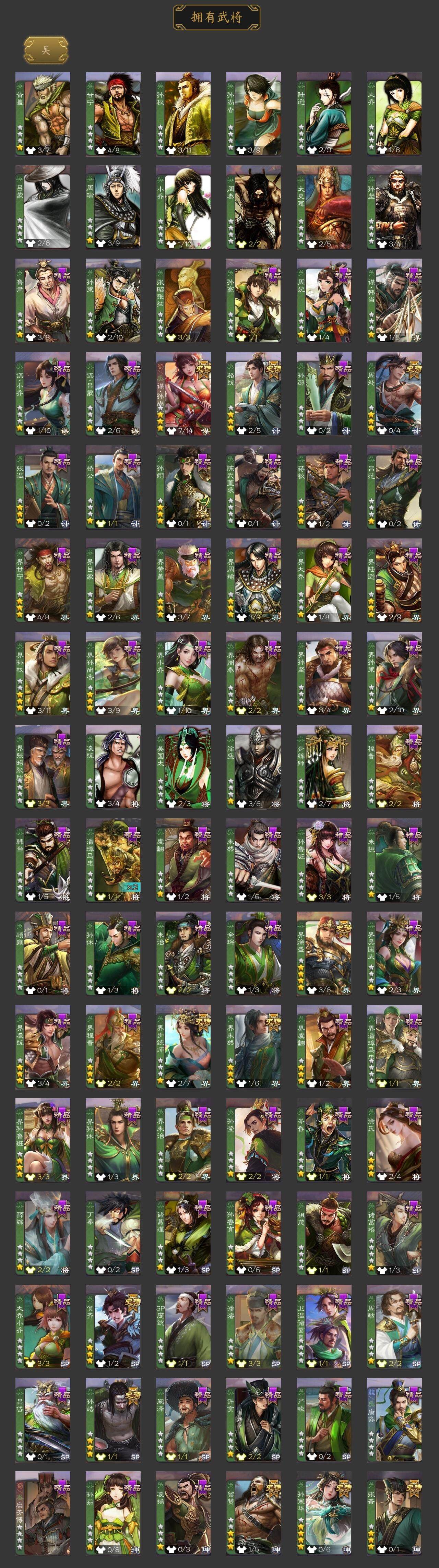 [15181270]【616】官阶:大将军;vip等级:vip11;史诗武将数量:65;动态皮肤数量:32;武将总数:421;史诗宝珠数量:27;将魂数量:5386;神将:8;魏国史诗武将:14;蜀国史诗武将:16;吴国史诗武将:10;群史诗武将:21 神赵云神陆逊神甘宁神张辽神郭嘉神太史慈神吕蒙神周瑜王粲杨修王凌马钧界钟会界于禁界曹真嵇康郝昭陈琳曹纯戏志才关索马云騄谋孙尚香谋黄忠谋赵云谋马超诸葛瞻周群王平沙摩柯谯周界黄忠花鬘董允鲍三娘张奋周处孙皓孙寒华骆统留赞界朱然界徐盛界步练师贺齐谋貂蝉左慈张仲景张让星黄忠星甘宁司马徽麹义庞德公南华老仙祢衡刘焉沮授界左慈界李儒公孙康卑弥呼张绣李傕许攸星董卓神郭嘉-虎年清明动态神荀彧-虎年清明动态神甘宁-万人辟易动态神曹操-天下归心神赵云-神龙天降钟会-龙年端午(动态)荀彧-驱虎吞狼动态王粲-笔翰如流动态曹真-虎年春节动态辛宪英-鼠年春节动态戏志才-举棋若定动态曹纯-虎年春节动态刘备-猪年圣诞动态刘备-明良千古动态马超-牛年春节动态赵云-牛年春节动态黄忠-明良千古动态界刘备-猪年圣诞动态界刘备-明良千古动态界赵云-牛年春节动态界马超-牛年春节动态sp孙尚香-猪年圣诞动态sp孙尚香-明良千古动态关索-鼠年中秋动态胡金定-明良千古动态黄盖-兔年端午动态孙策-虎踞江东动态陆逊-猪年圣诞动态鲁肃-联刘抗曹动态界陆逊-猪年圣诞动态徐盛-破军杀将动态步练师-牛年七夕动态孙鲁班-牛年端午动态界步练师-牛年七夕动态界孙鲁班-牛年端午动态徐氏-琪花瑶草动态刘赞-灵魂歌王动态貂蝉-舞惑群心动态吕布-鼠年七夕动态吕布-傲睨万物动态张角-黄天当立动态左慈-役使鬼神动态许攸-盛气凌人动态谋刘赪-明良千古动态界吕布-鼠年七夕动态李儒-鸠杀少帝动态界李儒-鸠杀少帝动态董白-猪年春节动态刘焉-雄踞益州动态张琪瑛-虎年冬至动态兀突骨-鼠年春节动态祢衡-击鼓骂曹动