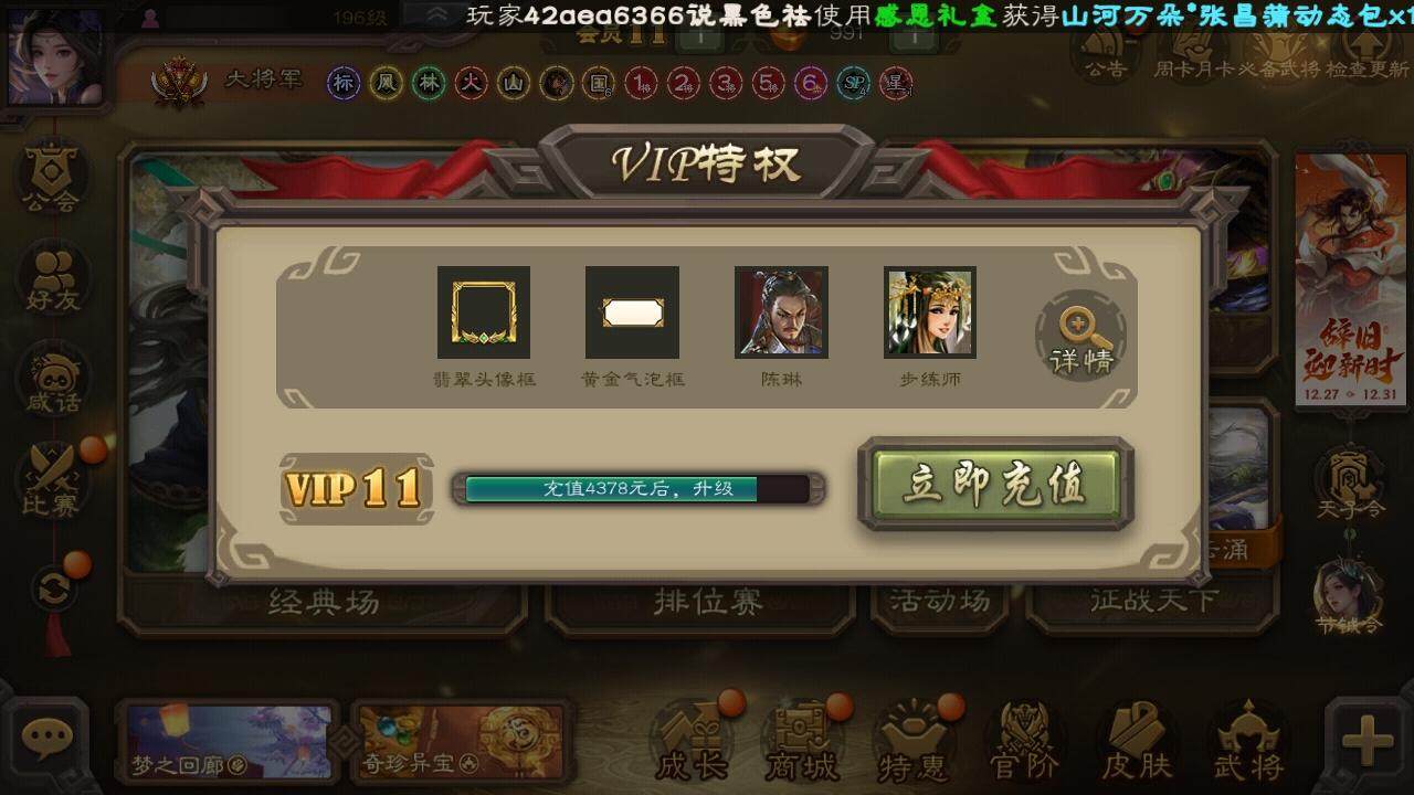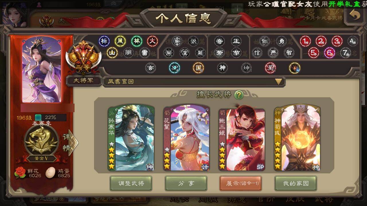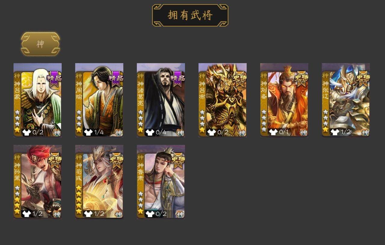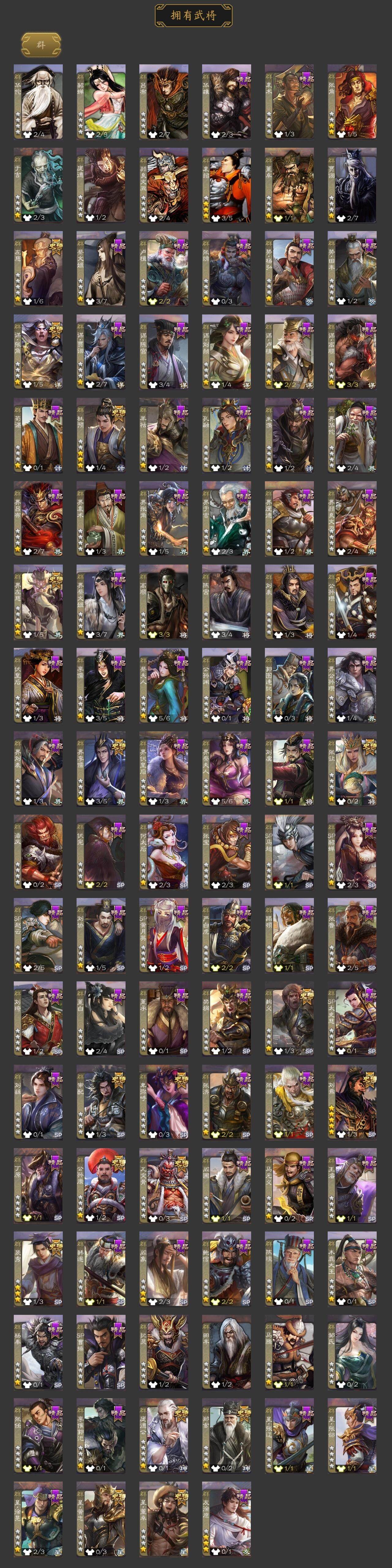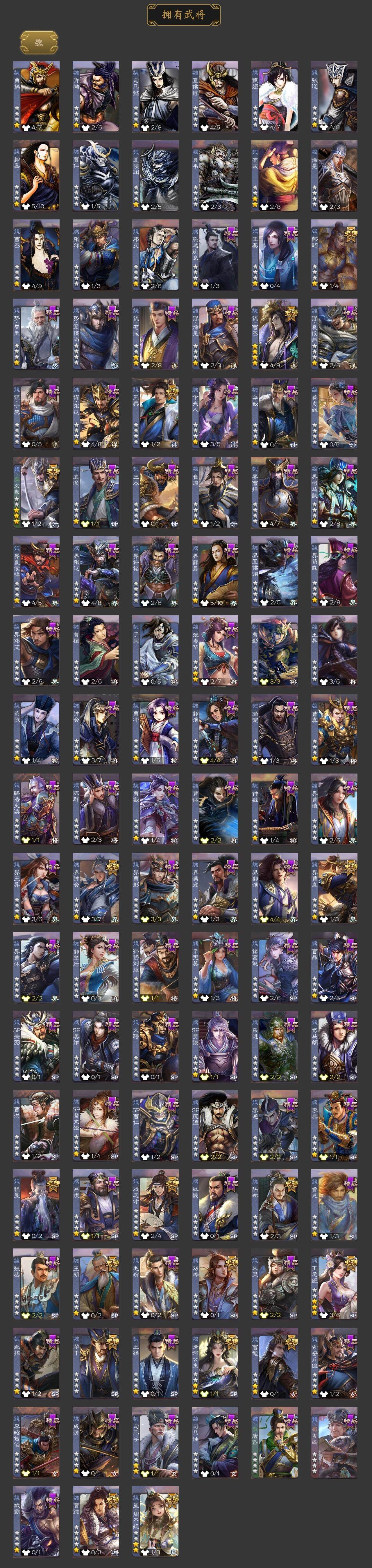 [15181327]【1006】官阶:大将军;vip等级:vip11;史诗武将数量:58;动态皮肤数量:52;武将总数:414;史诗宝珠数量:3;将魂数量:870;神将:9;魏国史诗武将:33;蜀国史诗武将:10;吴国史诗武将:8;群史诗武将:23 神吕布神刘备神张辽神孙策神荀彧神吕蒙神周瑜神诸葛亮神鲁肃曹髦星周不疑王粲文鸯王元姬王朗界钟会界曹真郝昭陈琳曹纯戏志才刘晔谋曹丕蒋干清河公主谋诸葛亮谋赵云谋马超诸葛瞻赵襄张星彩沙摩柯谯周花鬘鲍三娘谋黄盖吴景孙皓孙寒华界徐盛界步练师贺齐势陆郁生谋黄月英谋荀彧裴秀左慈郑玄张让星黄忠审配麹义庞德公刘焉界左慈界李儒公孙康杜预卑弥呼鲍信谋张角张绣阎象陈珪友徐庶星董卓神孙策-霸王再世动态神荀彧-匡汉延祚动态神张辽-散敌擒孙神关羽-血海罗刹动态神曹操-天下归心神赵云-战龙在野动态王元姬-婆娑起舞(动态)郭嘉-以身证道(动态)星周不疑-才广志宏动态钟繇-安民护祚(动态)曹丕-气荡山河(动态)甄姬-明珠耀躯(动态)曹丕-龙年中秋动态sp蔡文姬-兔年冬日动态邓艾-神兵天降动态界邓艾-神兵天降动态张春华-牛年立冬动态戏志才-举棋若定动态朱灵-以战破氐动态王元姬-鼠年冬至动态司马昭-昭威淮南(动态)司马懿-重张区宇(动态)星徐晃-斧引霹雳动态清河公主-魅影萦心动态张星彩-猪年中秋动态关索-虎年七夕动态鲍三娘-虎年七夕动态诸葛果-蛇年限定动态卧龙诸葛-火烧博望动态周处-义除三害动态吕蒙-剑起惊澜动态黄盖-以身证道动态孙权-永开吴祚动态孙寒华-威灵尽显动态黄盖-鏖战赤壁动态小乔-采莲江南动态界黄盖-鏖战赤壁动态界小乔-采莲江南动态徐盛-破军杀将动态孙鲁育-牛年端午动态陆逊-蛇年清明动态文鸯-势若万钧动态高顺-每战必克动态蔡夫人-计上心来动态灵雎-霜刃绚练动态袁绍-声震寰宇动态杜预-龙吟破竹动态李儒-鸠杀少帝动态界李儒-鸠杀少帝动态sp貂蝉-驭魂千机动态刘焉-雄踞益州动态sp