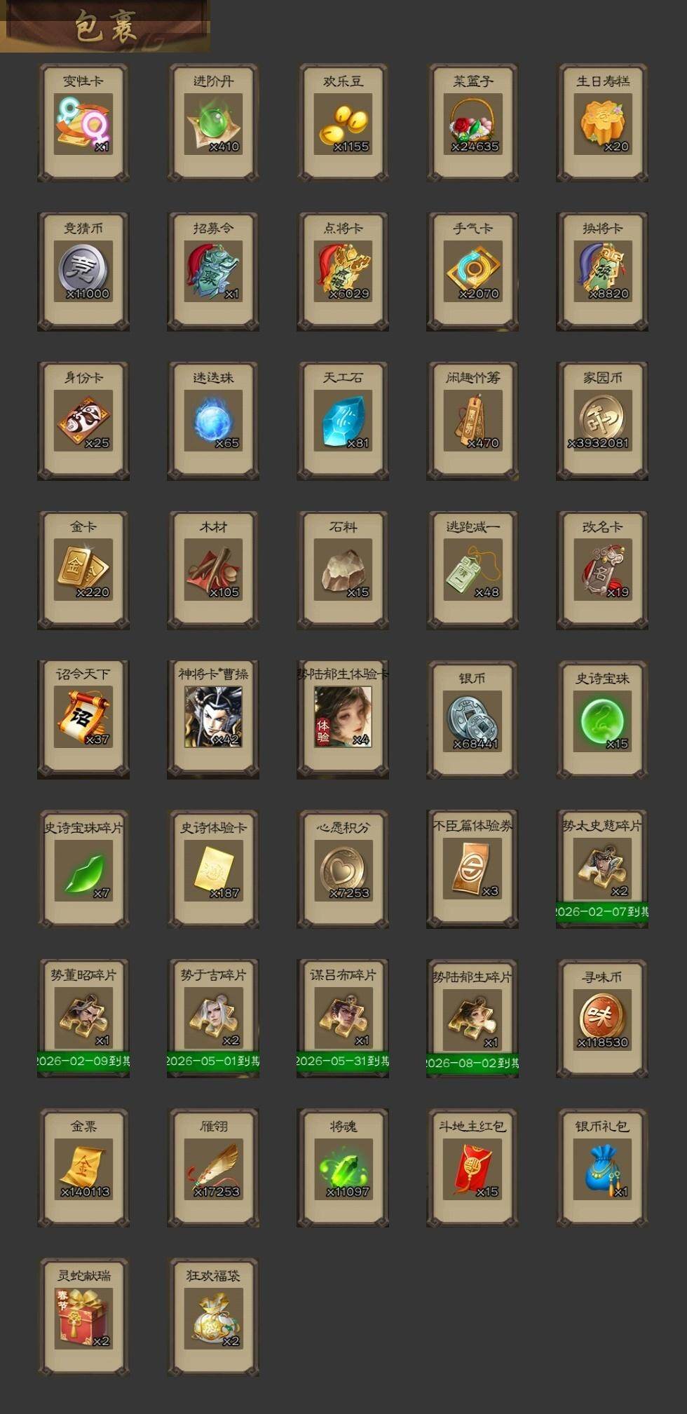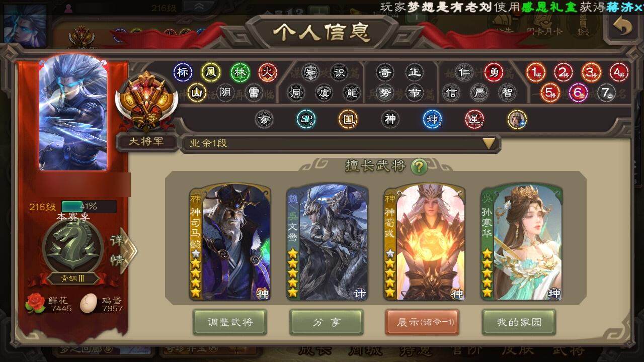 [15181350]【760】官阶:大将军;vip等级:vip13;史诗武将数量:70;动态皮肤数量:62;武将总数:441;史诗宝珠数量:15;将魂数量:11097;神将:11;魏国史诗武将:49;蜀国史诗武将:15;吴国史诗武将:7;群史诗武将:24 神吕布神赵云神司马懿神陆逊神张辽神太史慈神荀彧神华佗神吕蒙神周瑜神鲁肃sp司马昭曹髦郭女王星周不疑王粲杨修文鸯王元姬王朗魏-司马昭界钟会界于禁嵇康郝昭陈琳曹婴曹纯戏志才谋夏侯惇关索马云騄谋孙尚香谋赵云谋马超诸葛瞻赵襄张星彩王平沙摩柯谯周界黄忠花鬘董允张奋吴景孙寒华留赞界朱然界徐盛贺齐谋郭嘉谋黄月英谋荀彧裴秀界沮授左慈郑玄张让星黄忠王允苏飞麹义庞德公南华老仙沮授界左慈界李儒公孙康杜预卑弥呼鲍信谋张角阎象星董卓神荀彧-匡汉延祚动态神刘备-龙兴海内神甘宁-万人辟易动态神陆逊-绽焰摧枯动态神赵云-战龙在野动态神赵云-神龙天降神司马懿-鉴往知来动态郭嘉-以身证道(动态)星周不疑-才广志宏动态张昌蒲-龙年端午(动态)钟会-龙年端午(动态)钟繇-安民护祚(动态)曹丕-气荡山河(动态)星周不疑-龙年清明动态甄姬-明珠耀躯(动态)曹丕-龙年中秋动态曹叡-睥睨天下动态甄姬-牛年清明动态荀彧-驱虎吞狼动态邓艾-神兵天降动态界甄姬-牛年清明动态界邓艾-神兵天降动态于禁-威严毅重动态钟会-谋谟之勋动态界于禁-威严毅重动态界曹植-鼠年端午动态界钟会-谋谟之勋动态戏志才-举棋若定动态曹婴-锋芒毕露动态朱灵-以战破氐动态曹纯-虎年春节动态曹纯-长坂败备动态司马师-牛年中秋动态司马昭-昭威淮南(动态)花鬘-依心缱绻动态诸葛亮-龙年限定动态关索-依心缱绻动态关羽-明良千古动态马超-牛年春节动态马超-虎年冬至动态张飞-据水断桥动态黄月英-明良千古动态诸葛亮-明良千古动态诸葛瞻-绵竹之殇动态界张飞-据水断桥动态界马超-牛年春节动态界诸葛亮-明良千古动态界黄月英-明良千古动态sp