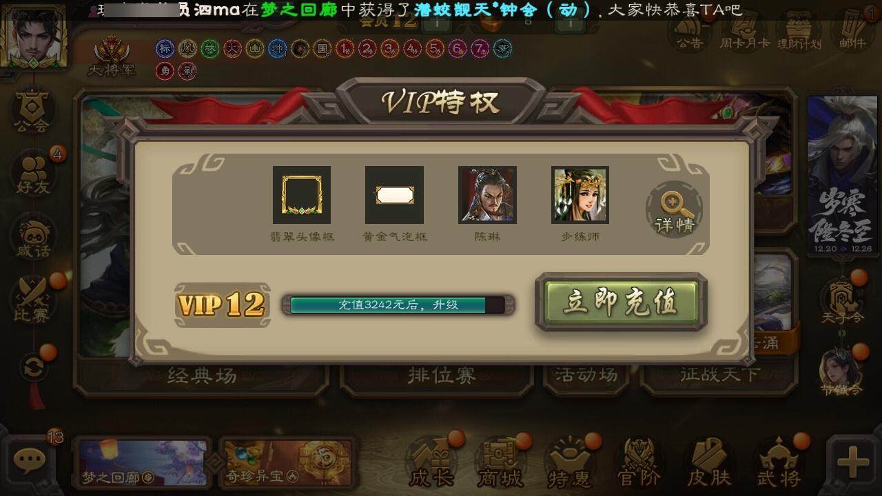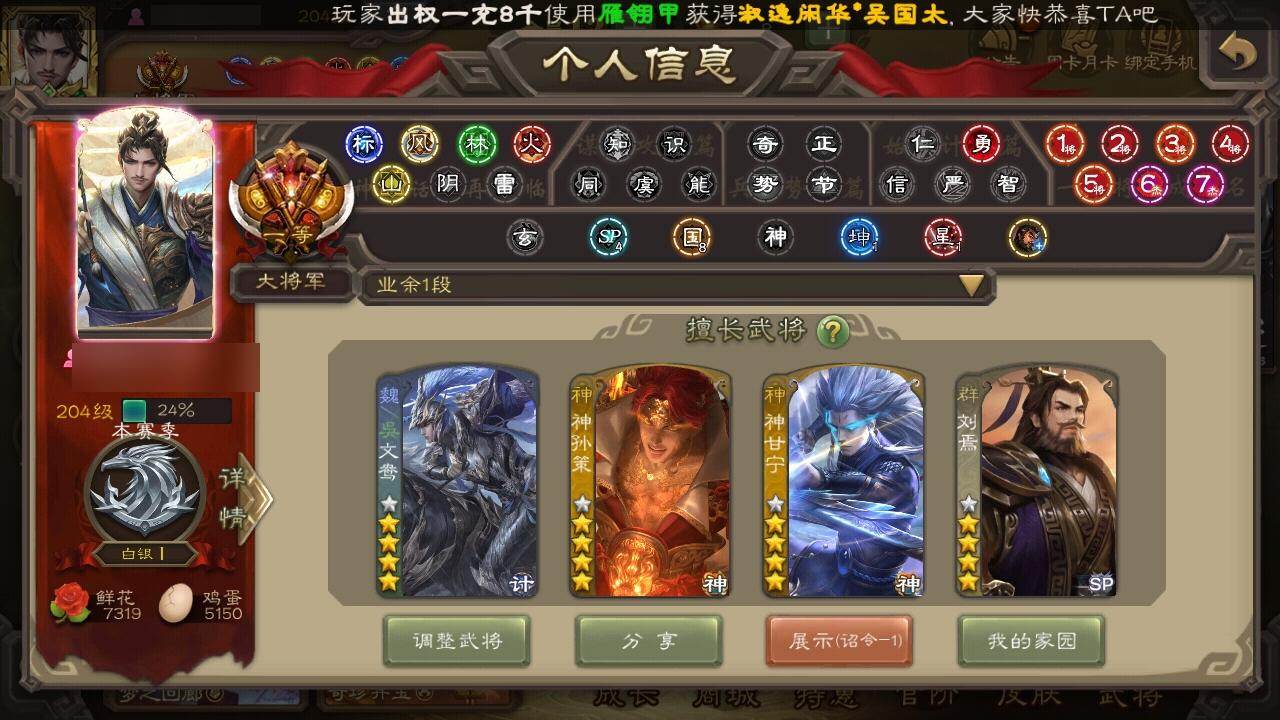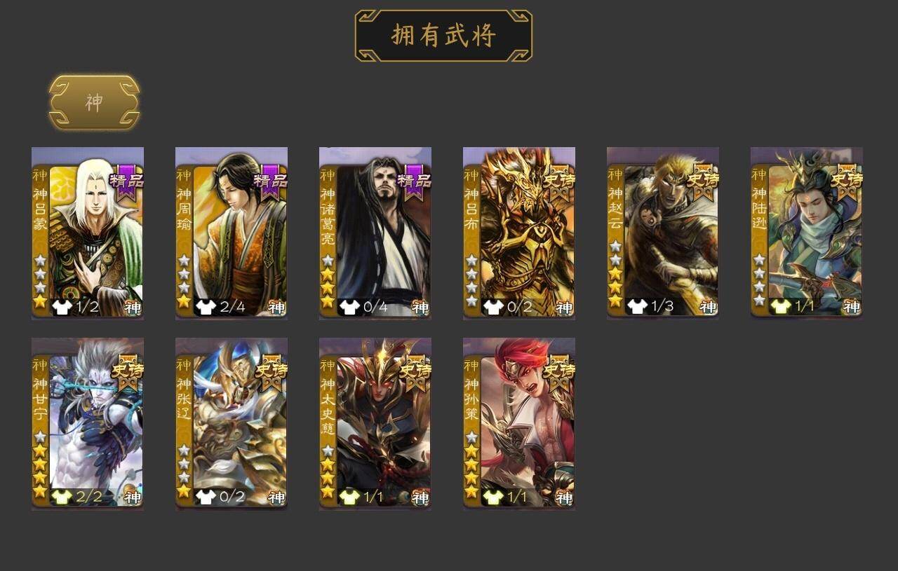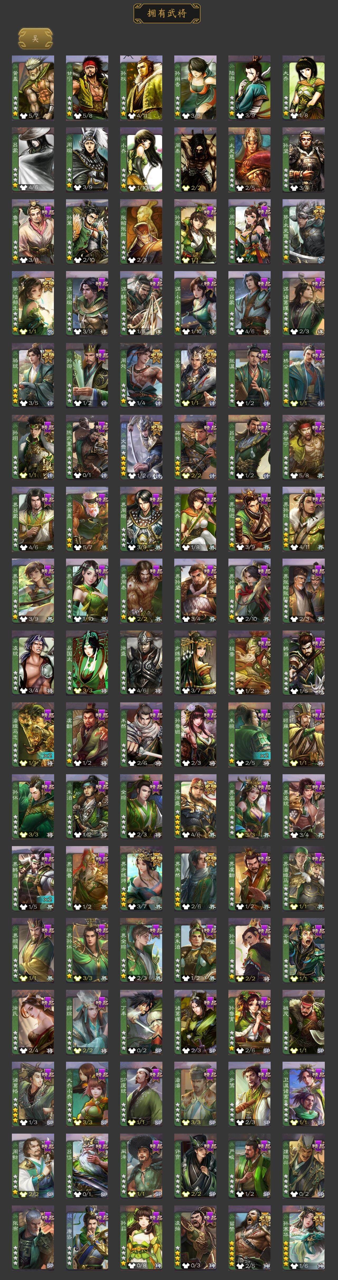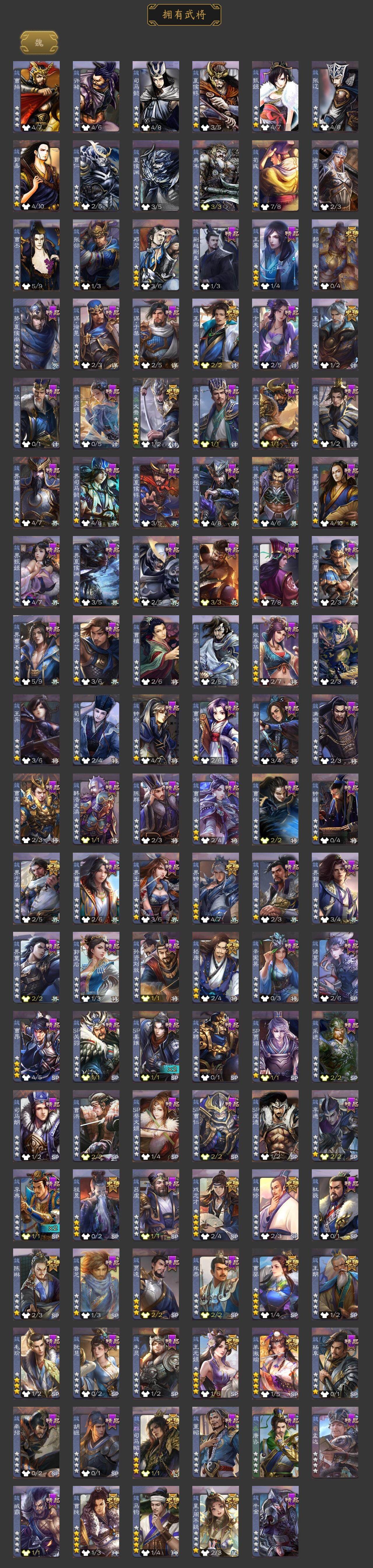 [15181474]【244】官阶:大将军;vip等级:vip12;史诗武将数量:68;动态皮肤数量:70;武将总数:442;史诗宝珠数量:0;将魂数量:2640;神将:10;魏国史诗武将:47;蜀国史诗武将:12;吴国史诗武将:10;群史诗武将:23 神吕布神赵云神陆逊神甘宁神张辽神太史慈神孙策神吕蒙神周瑜神诸葛亮星周不疑王粲杨修羊徽瑜文鸯王元姬王凌王朗魏-司马昭马钧界钟会界于禁嵇康郝昭陈琳曹婴曹纯戏志才关索马云騄谋赵云谋马超诸葛瞻周群赵襄张星彩沙摩柯界黄忠花鬘董允周处吴景孙寒华骆统留赞界朱然界徐盛界步练师势陆郁生势太史慈裴秀左慈郑玄张让张琪瑛星黄忠星甘宁陶谦苏飞审配麹义南华老仙刘焉沮授界左慈界李儒杜预卑弥呼鲍信张绣李傕阎象许攸神太史慈-勇撼日月动态神孙策-霸王再世动态神甘宁-战破无间神甘宁-万人辟易动态神陆逊-绽焰摧枯动态神吕蒙-兼资文武动态神周瑜-焰腾麒麟动态神赵云-战龙在野动态羊徽瑜-月耀华裳(动态)星周不疑-才广志宏动态曹植-龙年中秋动态钟会-潜蛟觊天动态曹丕-气荡山河(动态)星周不疑-龙年清明动态甄姬-明珠耀躯(动态)sp蔡文姬-兔年冬日动态许褚-兔年端午动态荀彧-驱虎吞狼动态曹丕-猪年端午动态邓艾-神兵天降动态王粲-笔翰如流动态界曹丕-猪年端午动态界邓艾-神兵天降动态张春华-牛年立冬动态戏志才-举棋若定动态曹婴-兔年春节动态王朗-龙袭星落动态朱灵-以战破氐动态曹纯-长坂败备动态王元姬-鼠年冬至动态司马昭-昭威淮南(动态)星徐晃-斧引霹雳动态刘备-龙御天下动态诸葛亮-龙年限定动态费祎-安民护祚(动态)关羽-明良千古动态马超-牛年春节动态马超-西凉雄狮动态赵云-明亮千古动态刘禅-猪年端午动态界马超-牛年春节动态界马超-西凉雄狮动态界刘禅-猪年端午动态关索-虎年七夕动态胡金定-明良千古动态卧龙诸葛-火烧博望动态周处-义除三害动态吕蒙-剑起惊澜动态陆逊-龙年七夕动态黄盖