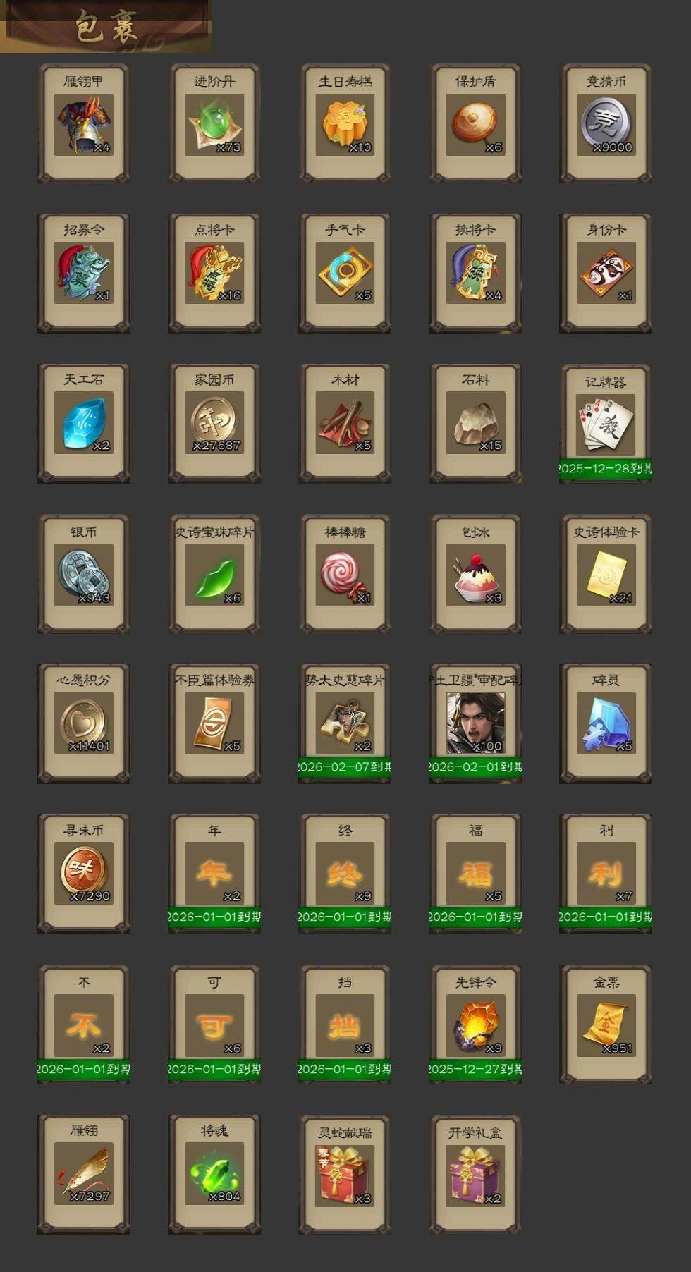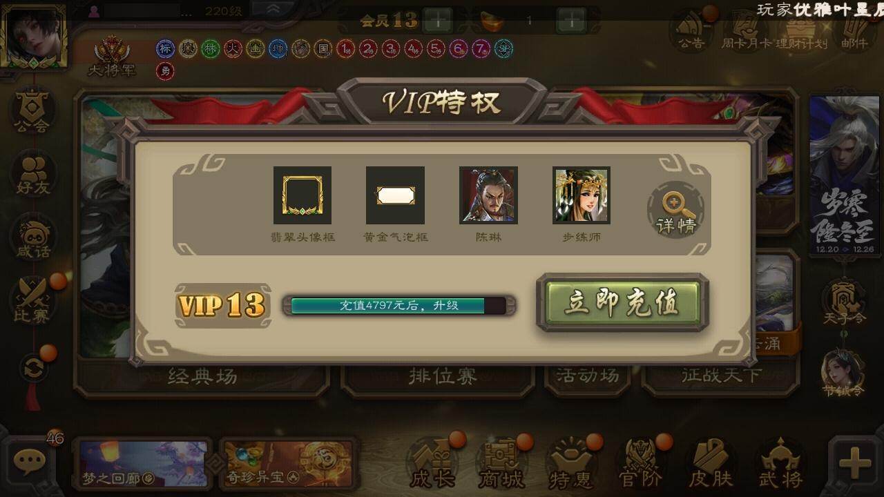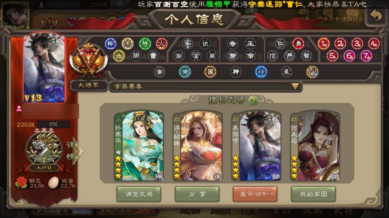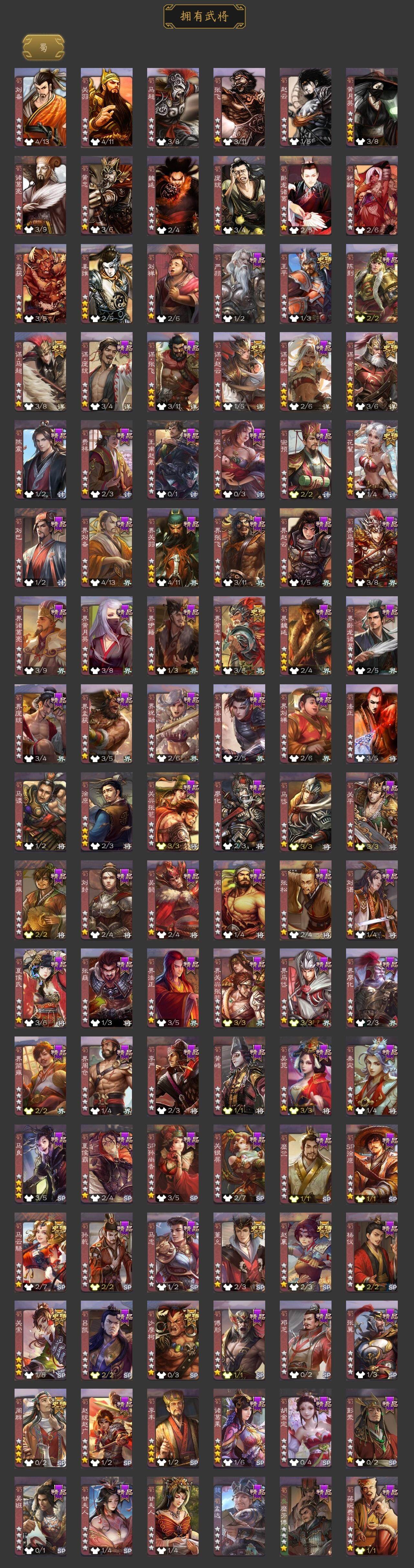 [15181503]【986】官阶:大将军;vip等级:vip13;史诗武将数量:64;动态皮肤数量:54;武将总数:430;史诗宝珠数量:0;将魂数量:804;神将:11;魏国史诗武将:28;蜀国史诗武将:12;吴国史诗武将:4;群史诗武将:22 神吕布神赵云神陆逊神甘宁神张辽神郭嘉神太史慈神荀彧神吕蒙神周瑜神诸葛亮sp司马昭星周不疑王粲杨修羊徽瑜文鸯王元姬司马师马钧界钟会界于禁嵇康郝昭陈琳曹婴曹纯戏志才刘晔关索马云騄谋黄忠谋赵云谋马超周群赵襄王平沙摩柯界黄忠花鬘董允孙寒华留赞界徐盛贺齐谋公孙瓒谋貂蝉左慈张仲景张让杨彪王允陶谦苏飞司马徽审配麹义南华老仙祢衡沮授界左慈界李儒杜预卑弥呼张绣阎象许攸神郭嘉-虎年清明动态神荀彧-虎年清明动态神荀彧-匡汉延祚动态神甘宁-万人辟易动态神陆逊-绽焰摧枯动态神吕蒙-兼资文武动态神诸葛亮-观星唤雨神诸葛亮-孟章诛邪动态神曹操-天下归心神吕布-监兵噬魅动态神赵云-战龙在野动态钟会-潜蛟觊天动态星周不疑-龙年清明动态sp蔡文姬-兔年冬日动态张郃-背水一战动态王基-独秉固志动态张春华-宣穆夜袭动态曹真-虎年春节动态界曹植-鼠年端午动态辛宪英-鼠年春节动态曹昂-竭战麟伤动态曹婴-兔年春节动态曹婴-锋芒毕露动态王元姬-鼠年冬至动态羊徽瑜-牛年中秋动态花鬘-依心缱绻动态费祎-安民护祚(动态)张飞-猪年中秋动态黄忠-明良千古动态魏延-麒麟生角动态界张飞-猪年中秋动态界魏延-麒麟生角动态sp孙尚香-猪年圣诞动态马云騄-牛年春节动态赵襄-猪年春节动态关索-虎年七夕动态陆逊-龙年七夕动态周瑜-兔年七夕动态孙寒华-莲华熠熠动态孙尚香-兔年春节动态陆逊-猪年圣诞动态大乔-绝世之姿动态周瑜-鼠年春节动态孙策-长沙桓王动态小乔-猪年大雪动态小乔-鼠年春分动态界周瑜-鼠年春节动态界大乔-绝世之姿动态界陆逊-猪年圣诞动态界小乔-猪年大雪动态界小乔-鼠年春分动态界