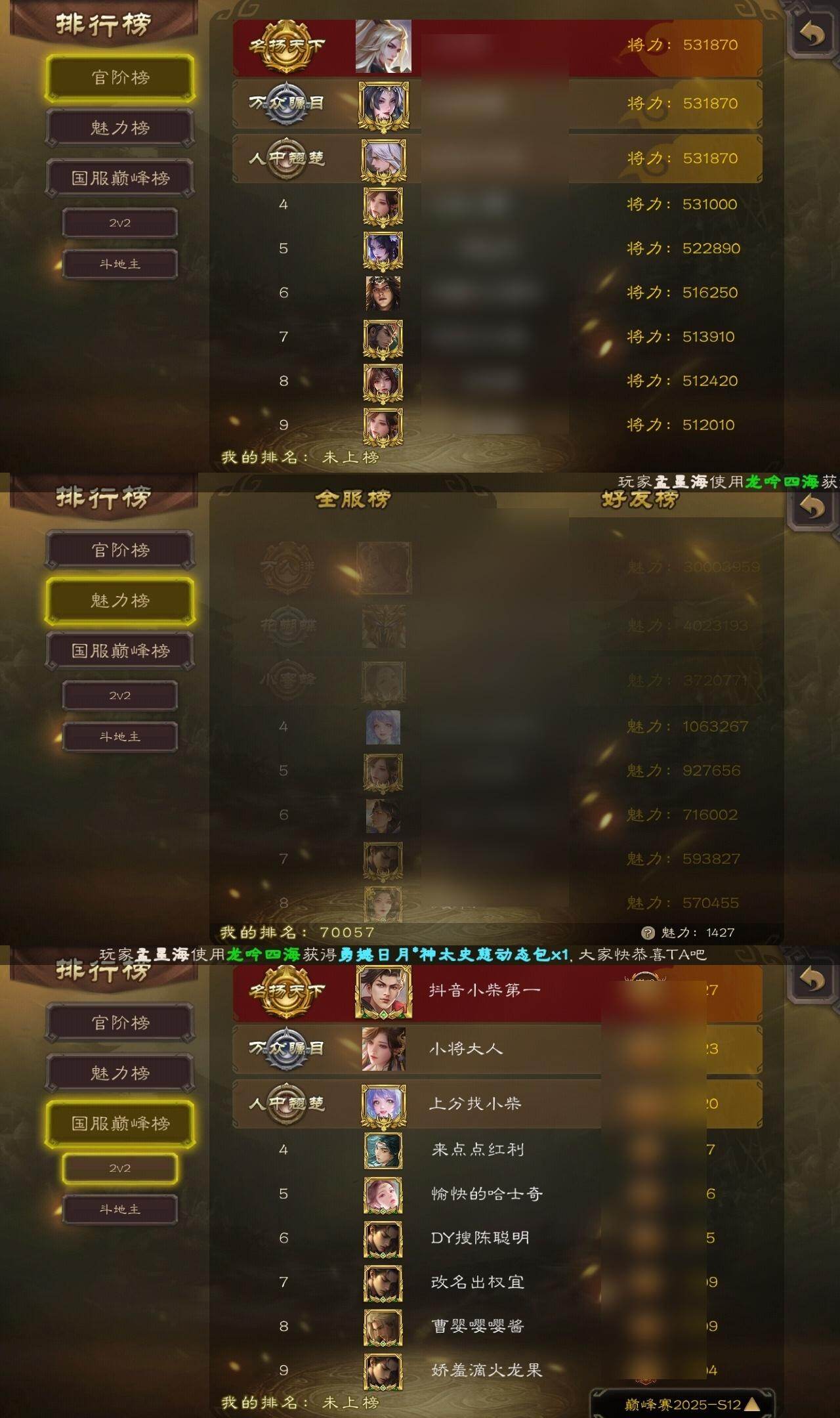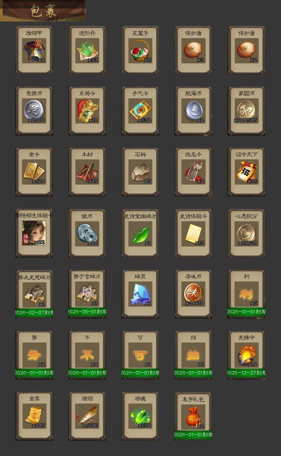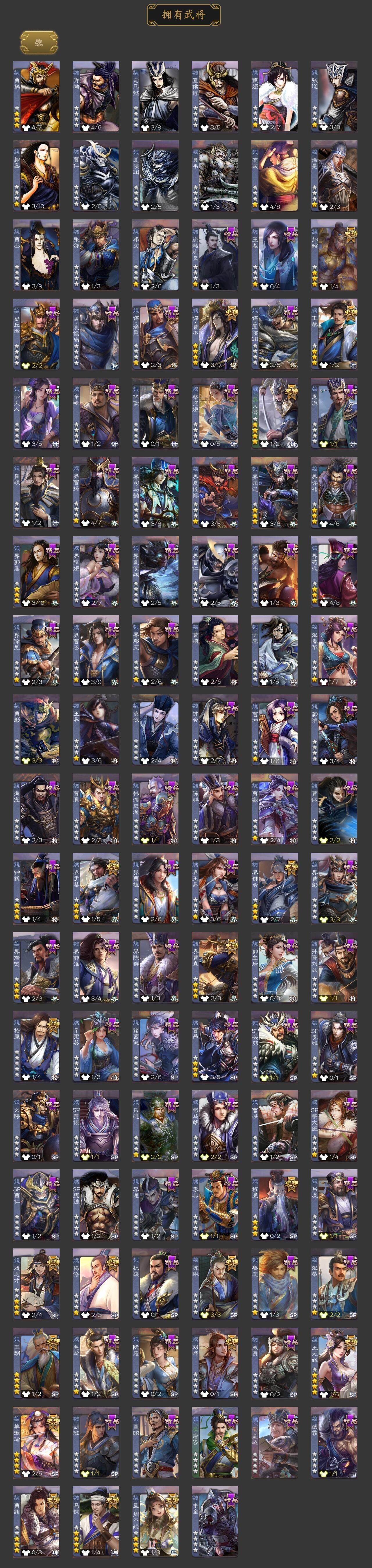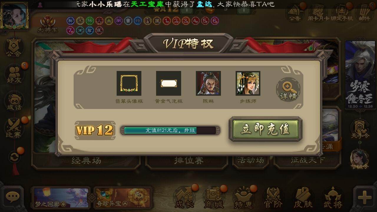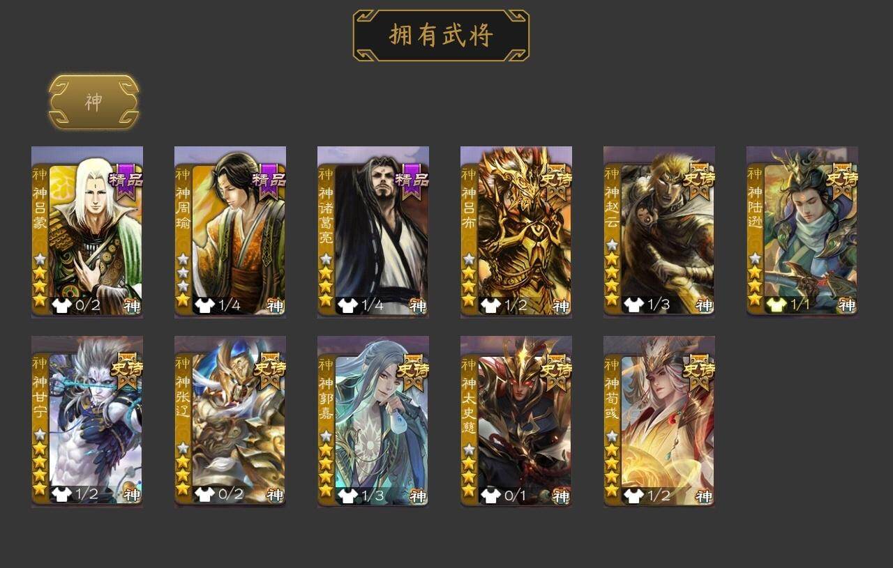 [15181582]【402】官阶:大将军;vip等级:vip12;史诗武将数量:66;动态皮肤数量:38;武将总数:435;史诗宝珠数量:0;将魂数量:654;神将:11;魏国史诗武将:28;蜀国史诗武将:11;吴国史诗武将:8;群史诗武将:20 神吕布神赵云神陆逊神甘宁神张辽神郭嘉神太史慈神荀彧神吕蒙神周瑜神诸葛亮星周不疑王粲杨修羊徽瑜文鸯王元姬王朗马钧界钟会界于禁界曹真嵇康郝昭陈琳曹纯戏志才刘晔谋曹丕关索马云騄诸葛瞻周群赵襄张星彩王平沙摩柯谯周界黄忠花鬘孙皓骆统留赞界朱然界徐盛界步练师贺齐势陆郁生左慈张仲景张让杨彪王允陶谦苏飞麹义庞德公祢衡刘焉沮授界左慈界李儒公孙康杜预谋张角张绣李傕许攸神郭嘉-虎年清明动态神荀彧-虎年清明动态神甘宁-万人辟易动态神陆逊-绽焰摧枯动态神诸葛亮-风舞魔鸟动态神关羽-血海罗刹动态神吕布-监兵噬魅动态神赵云-战龙在野动态郭嘉-以身证道(动态)星周不疑-才广志宏动态sp蔡文姬-兔年冬日动态许褚-虎啸生风动态荀彧-驱虎吞狼动态曹丕-牛年清明动态界许褚-虎啸生风动态界曹丕-牛年清明动态钟会-谋谟之勋动态界钟会-谋谟之勋动态戏志才-举棋若定动态王朗-龙袭星落动态王元姬-鼠年冬至动态羊徽瑜-牛年中秋动态刘备-龙御天下动态刘备-明良千古动态关羽-明良千古动态马超-牛年春节动态界刘备-明良千古动态界马超-牛年春节动态夏侯氏-明良千古动态鲍三娘-柳娇桃艳动态诸葛果-虎年中秋动态周处-义除三害动态吕蒙-剑起惊澜动态孙权-吴王六剑动态界孙权-吴王六剑动态徐盛-破军杀将动态徐氏-琪花瑶草动态孙鲁育-牛年端午动态刘赞-灵魂歌王动态文鸯-势若万钧动态袁绍-声震寰宇动态麹义-扬刀立威动态许攸-盛气凌人动态刘焉-雄踞益州动态苏飞-肝胆相照动态张琪瑛-虎年冬至动态星甘宁-肝胆相照动态