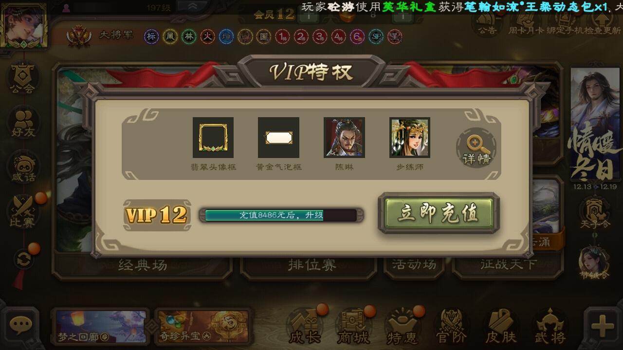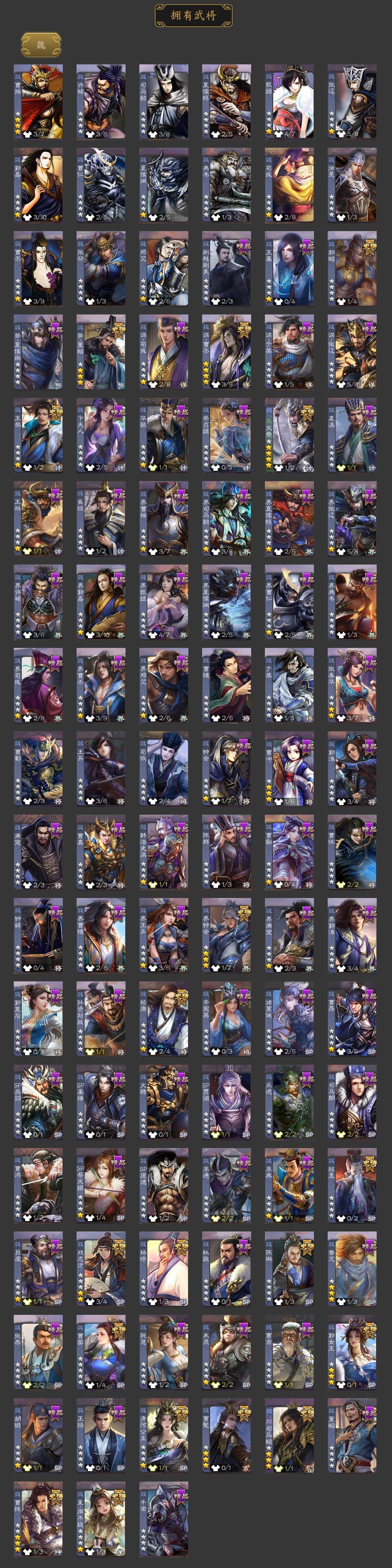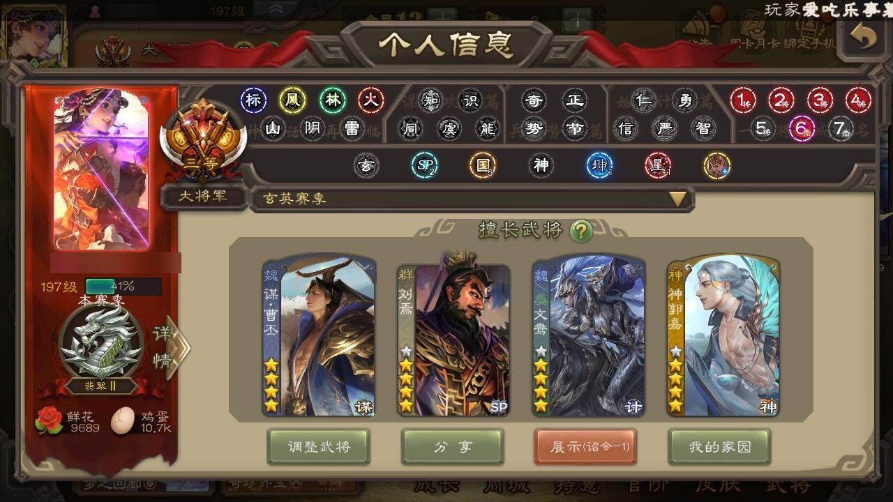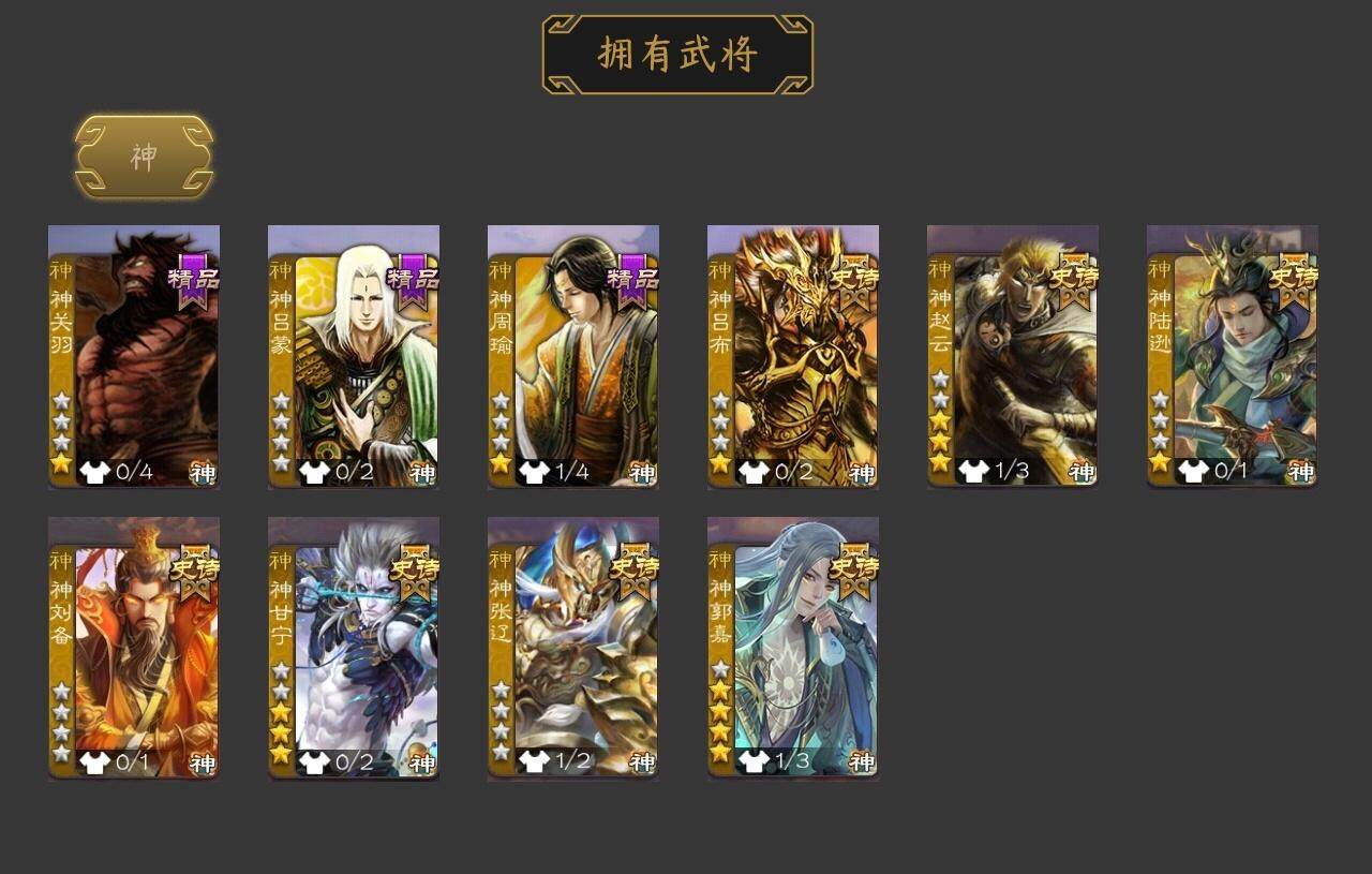 [15181614]【189】官阶:大将军;vip等级:vip12;史诗武将数量:63;动态皮肤数量:32;武将总数:397;史诗宝珠数量:0;将魂数量:282;神将:10;魏国史诗武将:25;蜀国史诗武将:9;吴国史诗武将:7;群史诗武将:24 神吕布神赵云神陆逊神刘备神甘宁神张辽神郭嘉神关羽神吕蒙神周瑜曹髦郭女王星周不疑王粲杨修文鸯魏-司马昭界钟会嵇康郝昭陈琳曹婴曹纯戏志才谋曹丕势董昭清河公主谋诸葛亮谋赵云谋马超诸葛瞻沙摩柯谯周傅佥花鬘谋关羽张奋吴景骆统留赞界徐盛界步练师势太史慈谋荀彧十常侍裴秀左慈张让星黄忠王允陶谦审配麹义祢衡刘焉沮授界左慈界李儒公孙康杜预卑弥呼李傕阎象许攸谋吕布友徐庶星董卓神鲁肃-九州为局神郭嘉-虎年清明动态神张辽-散敌擒孙神赵云-战龙在野动态曹植-龙年中秋动态曹丕-气荡山河(动态)星周不疑-龙年清明动态曹丕-龙年中秋动态sp蔡文姬-兔年冬日动态张春华-宣穆夜袭动态曹昂-竭战麟伤动态曹婴-兔年春节动态朱灵-以战破氐动态曹纯-虎年春节动态司马昭-昭威淮南(动态)星徐晃-斧引霹雳动态清河公主-魅影萦心动态花鬘-依心缱绻动态诸葛亮-龙年限定动态关羽-以身证道(动态)诸葛果-蛇年限定动态周处-义除三害动态陆逊-龙年七夕动态孙权-永开吴祚动态徐盛-破军杀将动态刘赞-灵魂歌王动态孙寒华-蛇年限定动态文鸯-势若万钧动态袁绍-声震寰宇动态李儒-业火毒计动态麹义-扬刀立威动态杜预-龙吟破竹动态左慈-役使鬼神动态何太后-蛇蝎为心动态刘焉-雄踞益州动态祢衡-击鼓骂曹动态谋刘赪-冠绝天下动态