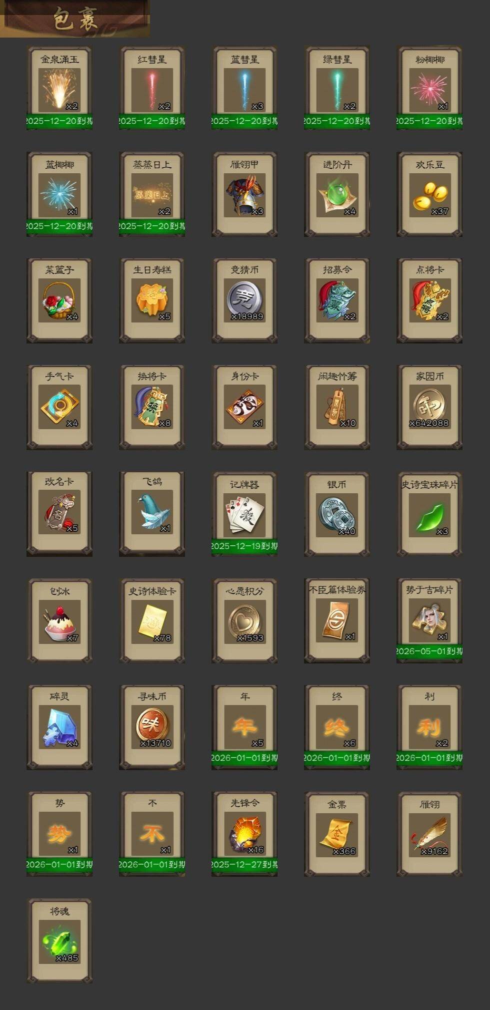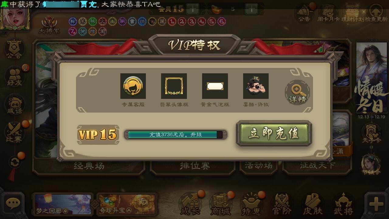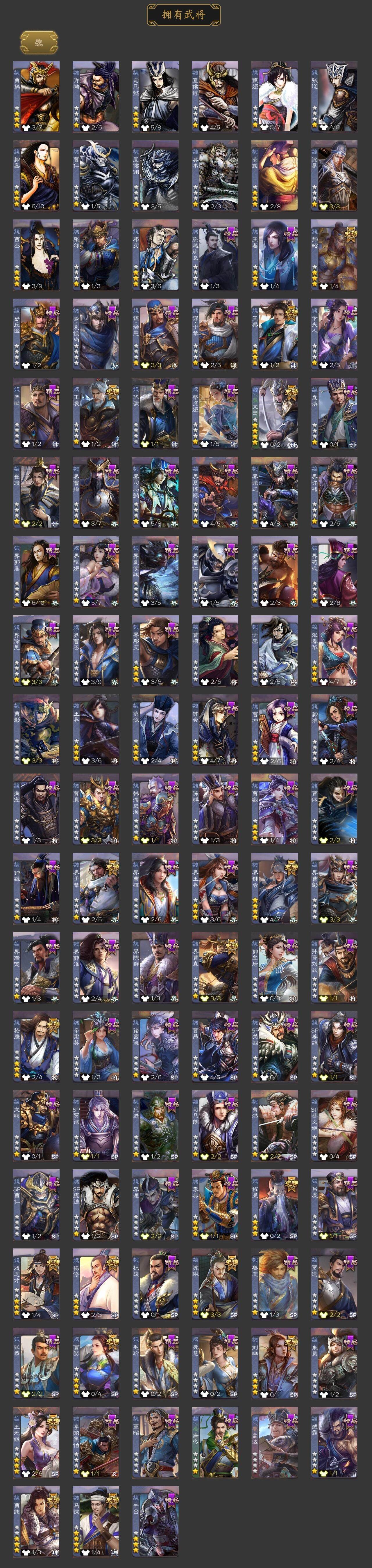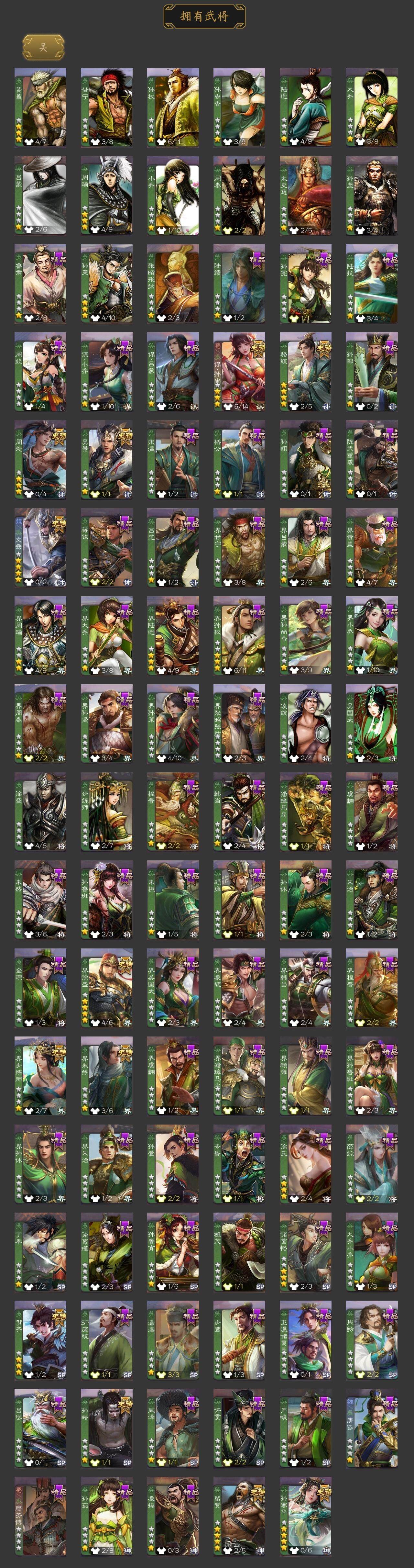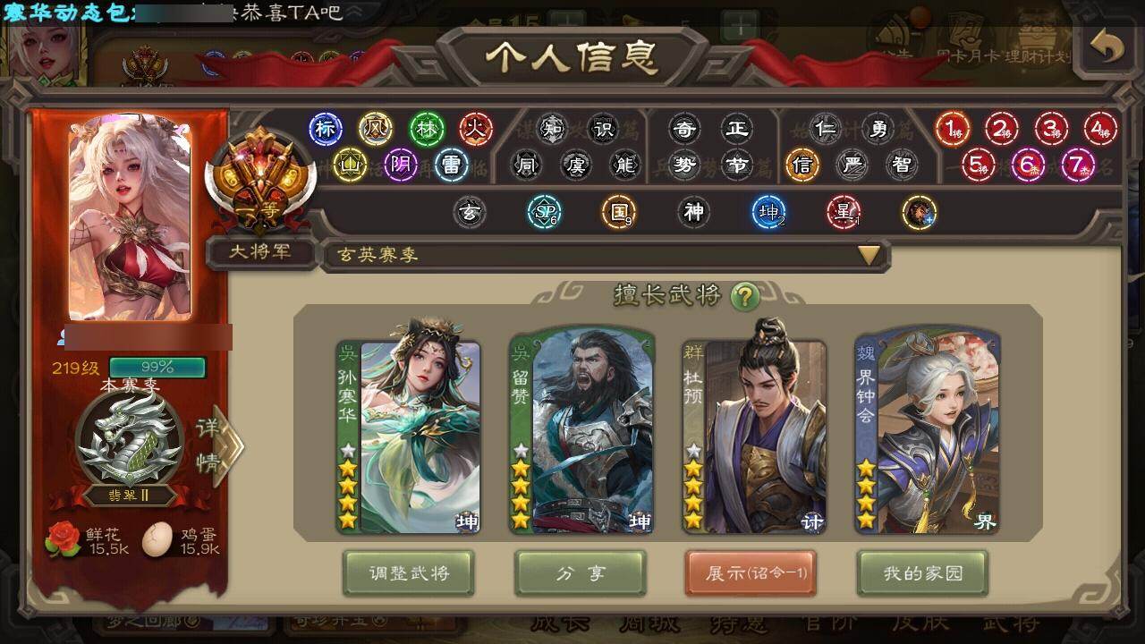 [15181759]【134】官阶:大将军;vip等级:vip15;史诗武将数量:78;动态皮肤数量:49;武将总数:449;史诗宝珠数量:0;将魂数量:485;神将:14;魏国史诗武将:38;蜀国史诗武将:19;吴国史诗武将:10;群史诗武将:23 神吕布神赵云神陆逊神刘备神甘宁神张辽神郭嘉神太史慈神孙策神荀彧神关羽神吕蒙神周瑜神诸葛亮王粲杨修文鸯王元姬王凌马钧界钟会界于禁界曹真嵇康郝昭陈琳曹婴曹纯戏志才刘晔关索马云騄谋孙尚香谋黄忠谋夏侯氏谋赵云谋马超诸葛瞻周群赵襄张星彩王平沙摩柯谯周傅佥界黄忠花鬘鲍三娘周处吴景孙皓孙寒华骆统留赞界朱然界徐盛界步练师贺齐左慈郑玄张仲景张让星黄忠星甘宁王允陶谦苏飞麹义庞德公南华老仙祢衡刘焉沮授界左慈界李儒公孙康杜预卑弥呼张绣李傕许攸神关羽-链狱鬼神神郭嘉-虎年清明动态神甘宁-万人辟易动态神赵云-战龙在野动态神赵云-神龙天降sp司马昭-鼠年冬至(动态)钟会-龙年端午(动态)曹冲-五陵英少动态司马懿-牛年立冬动态甄姬-洛水神韵动态邓艾-神兵天降动态王粲-笔翰如流动态界司马懿-牛年立冬动态界甄姬-洛水神韵动态界邓艾-神兵天降动态张春华-牛年立冬动态张春华-雪中舞刃动态曹真-虎年春节动态辛宪英-鼠年春节动态曹昂-竭战麟伤动态朱灵-以战破氐动态曹纯-长坂败备动态马钧-能工巧匠动态王元姬-鼠年冬至动态羊徽瑜-牛年中秋动态花鬘-依心缱绻动态刘备-龙骧麟振动态关羽-明良千古动态马超-牛年春节动态张飞-猪年中秋动态赵云-牛年春节动态赵云-明亮千古动态黄月英-鼠年春节动态黄月英-虎年中秋动态界刘备-龙骧麟振动态界张飞-猪年中秋动态界赵云-牛年春节动态界马超-牛年春节动态界黄月英-鼠年春节动态夏侯氏-猪年中秋动态马云騄-猪年大雪动态马云騄-牛年春节动态马云騄-明良千古动态张星彩-猪年中秋动态关索-鼠年中秋动态关索-虎年七夕动态鲍三娘-虎年七夕动态鲍三娘