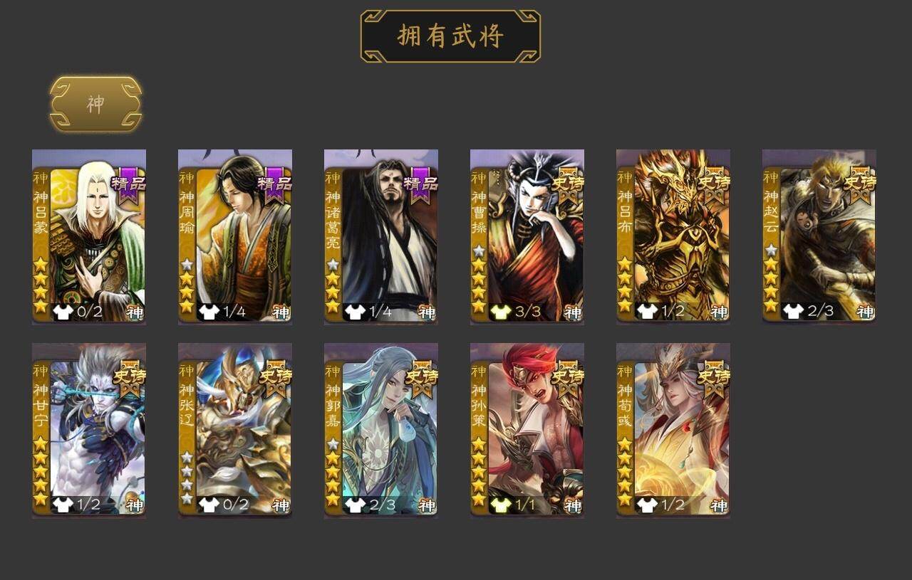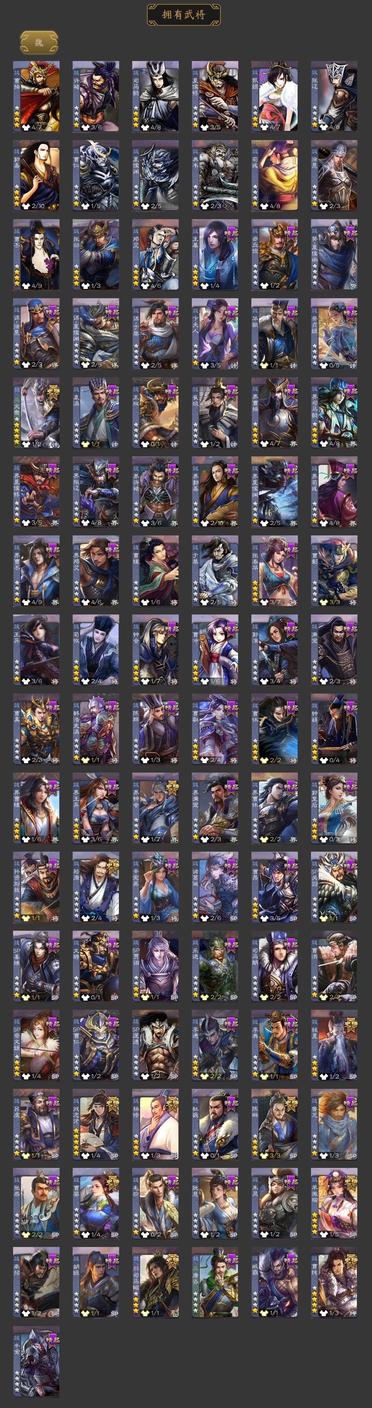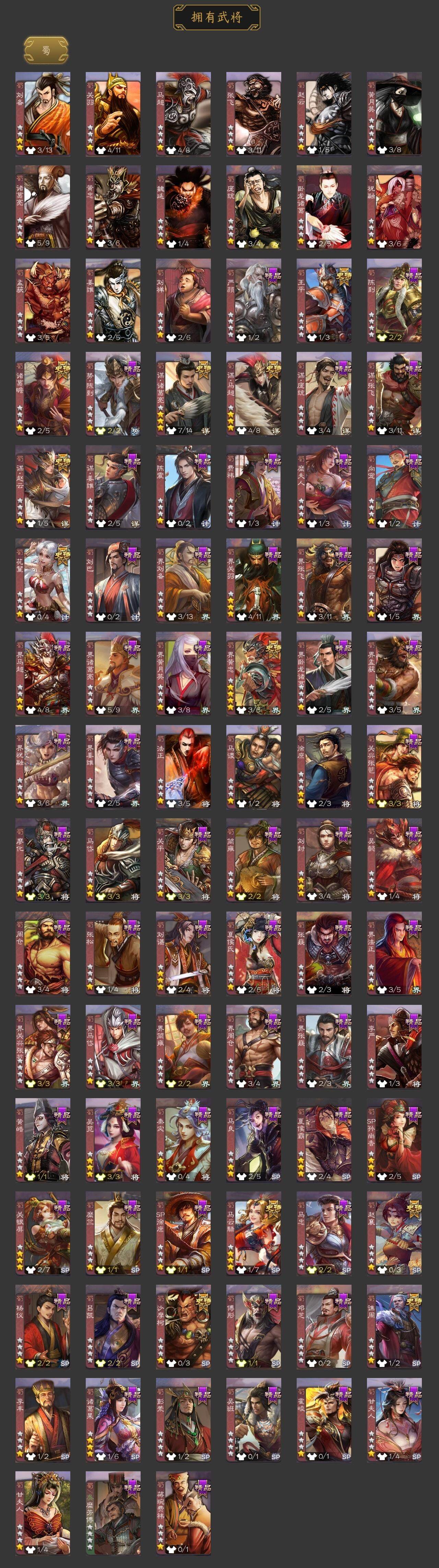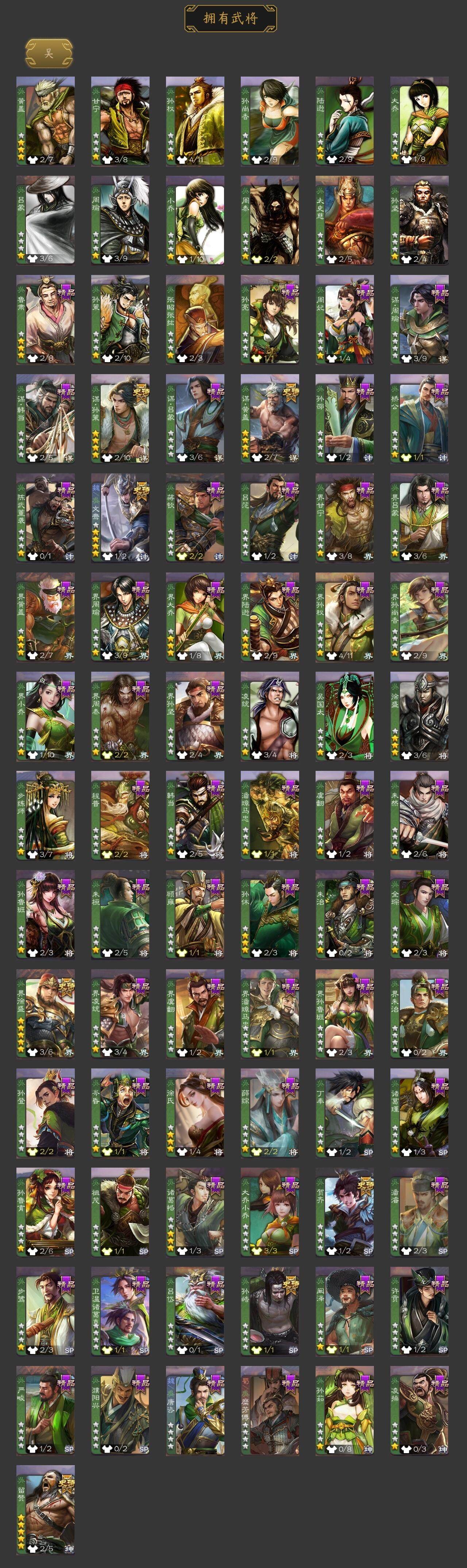[15181825]【389】官阶:大将军;vip等级:vip13;史诗武将数量:52;动态皮肤数量:45;武将总数:379;史诗宝珠数量:0;将魂数量:36;神将:11;魏国史诗武将:25;蜀国史诗武将:11;吴国史诗武将:6;群史诗武将:14 神曹操神吕布神赵云神甘宁神张辽神郭嘉神孙策神荀彧神吕蒙神周瑜神诸葛亮杨修羊徽瑜文鸯魏-司马昭界钟会嵇康陈琳曹婴曹纯戏志才谋诸葛亮马云騄谋赵云谋马超诸葛瞻赵襄王平沙摩柯谯周界黄忠花鬘谋黄盖谋孙策孙皓留赞界徐盛贺齐界沮授左慈郑玄星黄忠陶谦麹义南华老仙刘焉沮授界左慈界李儒公孙康杜预卑弥呼神郭嘉-虎年清明动态神郭嘉-倚星折月动态神孙策-霸王再世动态神荀彧-匡汉延祚动态神甘宁-万人辟易动态神诸葛亮-观星唤雨神曹操-天下归心神曹操-玄天通冥动态神曹操-四方归心动态神吕布-监兵噬魅动态神赵云-战龙在野动态神赵云-神龙天降神司马懿-鉴往知来动态星周不疑-才广志宏动态曹丕-气荡山河(动态)甄姬-明珠耀躯(动态)sp蔡文姬-兔年冬日动态邓艾-神兵天降动态王粲-笔翰如流动态界邓艾-神兵天降动态张春华-宣穆夜袭动态曹婴-兔年春节动态朱灵-以战破氐动态曹纯-虎年春节动态王元姬-鼠年冬至动态羊徽瑜-牛年中秋动态司马昭-昭威淮南(动态)诸葛亮-龙年限定动态关羽-明良千古动态马超-星夜袭曹动态张飞-据水断桥动态界张飞-据水断桥动态界马超-星夜袭曹动态卧龙诸葛-火烧博望动态太史慈-涤荡江东动态周处-义除三害动态吕蒙-剑起惊澜动态孙权-永开吴祚动态周瑜-兔年七夕动态孙策-长沙桓王动态徐盛-破军杀将动态刘赞-抗音而歌动态文鸯-势若万钧动态曹节-龙年中秋动态灵雎-霜刃绚练动态貂蝉-忧君难寐动态左慈-道法显威(动态)杜预-弼朝博虬动态麹义-扬刀立威动态李儒-鸠杀少帝动态界李儒-鸠杀少帝动态sp赵云-单骑救主动态刘焉-雄踞益州动态张琪瑛-虎年冬至动态灵雎-魂牵梦绕动态sp赵云-威名尽显