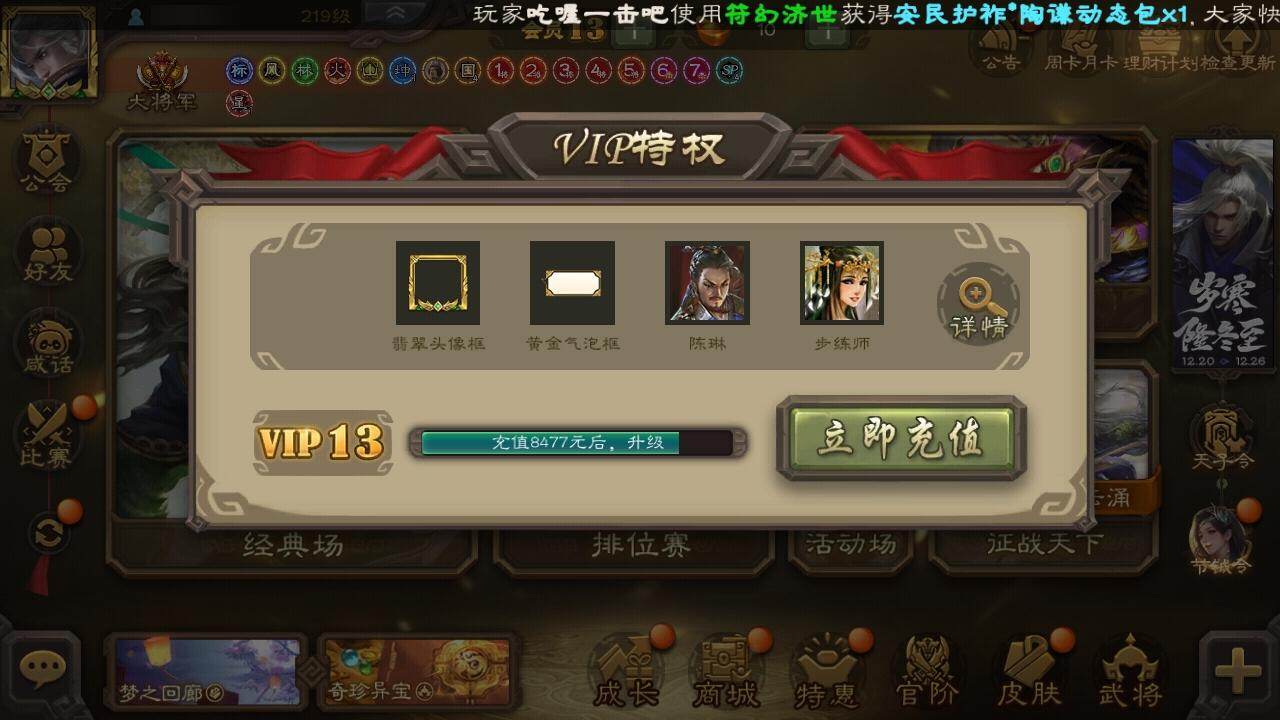 [15182038]【297】官阶:大将军;vip等级:vip13;史诗武将数量:62;动态皮肤数量:52;武将总数:425;史诗宝珠数量:0;将魂数量:160;神将:9;魏国史诗武将:28;蜀国史诗武将:16;吴国史诗武将:7;群史诗武将:20 神吕布神赵云神甘宁神郭嘉神孙策神荀彧神吕蒙神周瑜神鲁肃sp司马昭郭女王星周不疑王粲杨修文鸯界钟会界于禁嵇康郝昭陈琳曹纯谋曹丕关索谋诸葛亮马云騄谋夏侯氏谋赵云谋马超诸葛瞻周群赵襄张星彩王平沙摩柯谯周花鬘董允谋关羽孙寒华骆统留赞界徐盛界步练师贺齐谋孙权谋黄月英谋公孙瓒十常侍裴秀界沮授左慈郑玄张让星黄忠王允陶谦苏飞麹义刘焉沮授界左慈界李儒鲍信李傕阎象神鲁肃-九州为局神郭嘉-虎年清明动态神郭嘉-倚星折月动态神孙策-霸王再世动态神荀彧-匡汉延祚动态神甘宁-万人辟易动态神陆逊-绽焰摧枯动态神关羽-血海罗刹动态神曹操-天下归心神吕布-监兵噬魅动态神赵云-战龙在野动态神赵云-神龙天降sp司马昭-鼠年冬至(动态)曹植-龙年中秋动态钟会-潜蛟觊天动态曹丕-气荡山河(动态)星周不疑-龙年清明动态甄姬-明珠耀躯(动态)曹叡-睥睨天下动态sp蔡文姬-兔年冬日动态甄姬-牛年清明动态界甄姬-牛年清明动态曹昂-竭战麟伤动态戏志才-举棋若定动态曹纯-虎年春节动态王元姬-鼠年冬至动态刘备-龙御天下动态诸葛亮-龙年限定动态卧龙诸葛-龙跃凤鸣动态关羽-以身证道(动态)马超-虎年冬至动态黄月英-明良千古动态诸葛瞻-绵竹之殇动态界黄月英-明良千古动态夏侯氏-猪年中秋动态马云騄-猪年大雪动态关索-虎年七夕动态小乔-兔年七夕动态太史慈-涤荡江东动态周处-义除三害动态孙权-兔年中秋动态孙权-永开吴祚动态孙策-虎踞江东动态孙寒华-威灵尽显动态周瑜-免年清明动态孙权-牛年七夕动态界孙权-牛年七夕动态徐盛-破军杀将动态文鸯-势若万钧动态貂蝉-舞惑群心动态袁绍-声震寰宇动态左慈-道法显威(动态)
