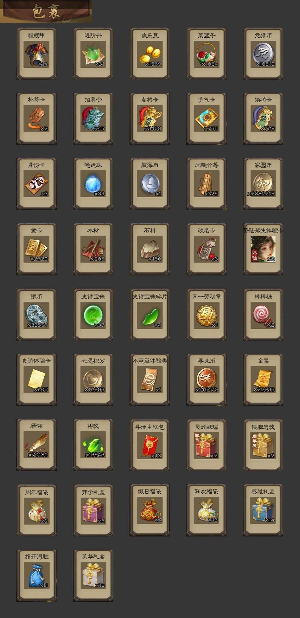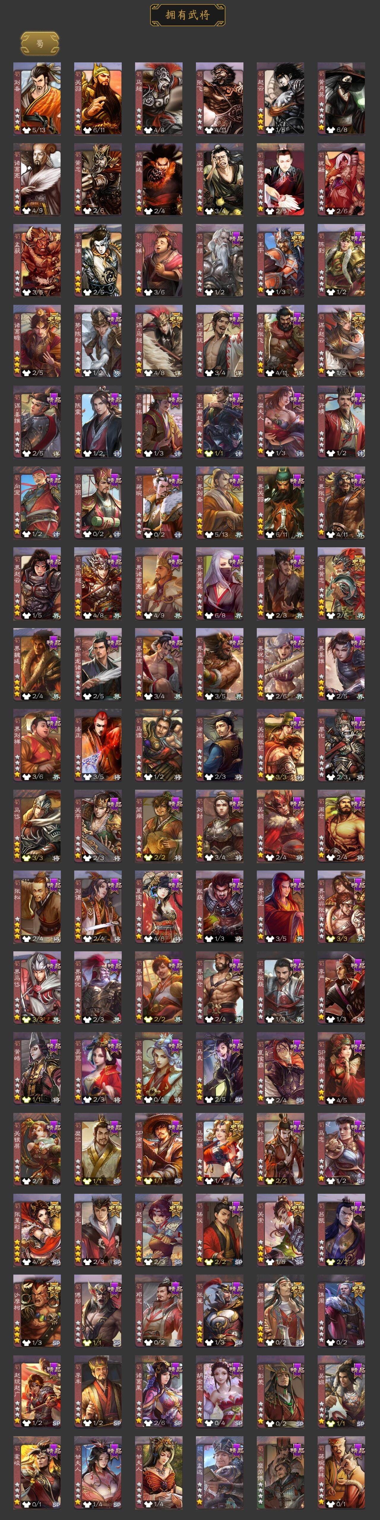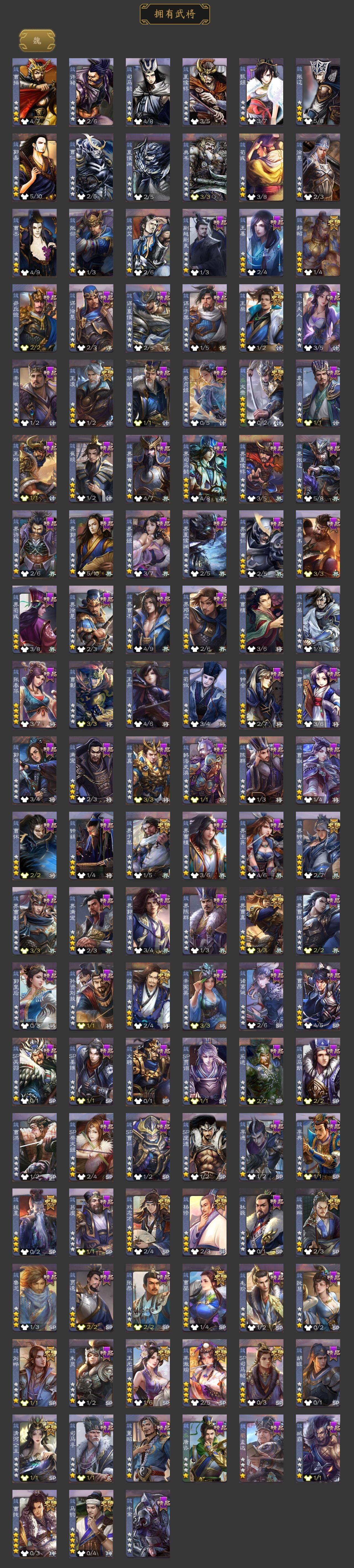 [15182093]【815】官阶:大将军;vip等级:vip12;史诗武将数量:80;动态皮肤数量:67;武将总数:463;史诗宝珠数量:37;将魂数量:13943;神将:17;魏国史诗武将:50;蜀国史诗武将:13;吴国史诗武将:9;群史诗武将:25 神曹操神吕布神赵云神司马懿神陆逊神刘备神甘宁神张辽神郭嘉神太史慈神孙策神荀彧神关羽神吕蒙神周瑜神诸葛亮神鲁肃sp司马昭王粲杨修羊徽瑜文鸯王元姬王凌马钧界钟会界于禁界曹真嵇康郝昭陈琳曹婴曹纯戏志才刘晔清河公主关索马云騄谋赵云谋马超诸葛瞻周群赵襄张星彩王平沙摩柯谯周界黄忠董允周处吴景孙皓骆统留赞界朱然界徐盛界步练师贺齐裴秀左慈郑玄张让张琪瑛徐荣星黄忠王允陶谦苏飞审配麹义庞德公祢衡刘焉沮授界左慈界李儒公孙康杜预卑弥呼张绣李傕许攸势于吉神郭嘉-虎年清明动态神荀彧-虎年清明动态神甘宁-战破无间神甘宁-万人辟易动态神诸葛亮-风舞魔鸟动态神吕蒙-兼资文武动态神周瑜-陵光引灵动态神周瑜-焰腾麒麟动态神诸葛亮-观星唤雨神诸葛亮-孟章诛邪动态神司马懿-徐图大略神曹操-天下归心神曹操-玄天通冥动态神吕布-监兵噬魅动态神赵云-战龙在野动态神司马懿-鉴往知来动态sp蔡文姬-兔年冬日动态司马懿-鹰视狼顾动态张辽-登峰陷阵动态郭嘉-十胜十败动态曹丕-猪年端午动态邓艾-神兵天降动态王基-独秉固志动态郝昭-死守陈仓动态王粲-笔翰如流动态界司马懿-鹰视狼顾动态界张辽-登峰陷阵动态界郭嘉-十胜十败动态界曹丕-猪年端午动态界邓艾-神兵天降动态张春华-牛年立冬动态张春华-宣穆夜袭动态王异-轻燕掠影动态曹真-虎年春节动态钟繇-稳定关右动态界王异-轻燕掠影动态辛宪英-鼠年春节动态戏志才-举棋若定动态曹婴-锋芒毕露动态羊徽瑜-牛年中秋动态清河公主-魅影萦心动态卧龙诸葛-龙跃凤鸣动态刘备-猪年圣诞动态刘备-明良千古动态关羽-啸风从龙动态马超-牛年春节动态马超-西凉
