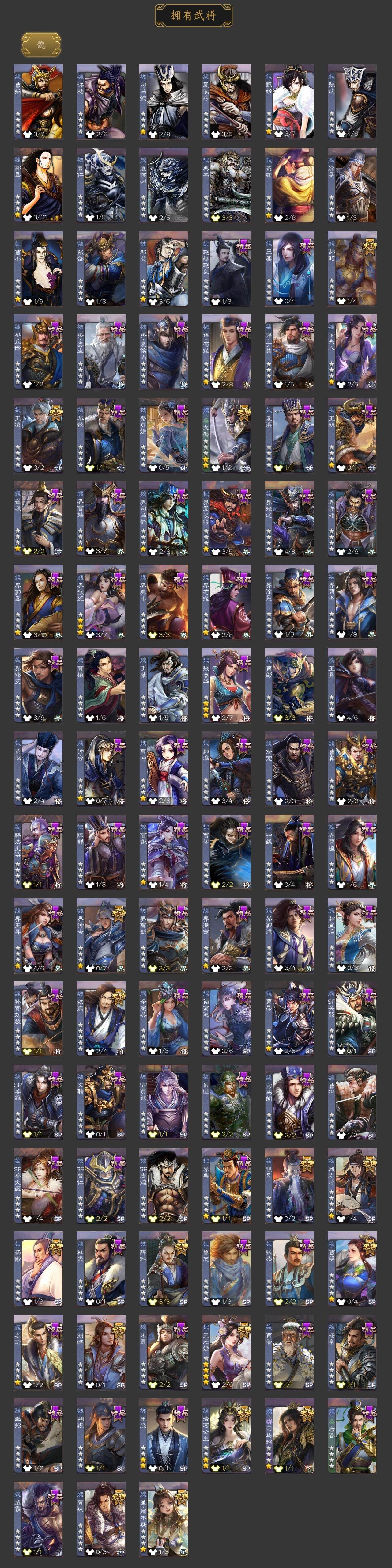 [15182101]【390】官阶:大将军;vip等级:vip11;史诗武将数量:57;动态皮肤数量:46;武将总数:402;史诗宝珠数量:0;将魂数量:1289;神将:11;魏国史诗武将:19;蜀国史诗武将:13;吴国史诗武将:5;群史诗武将:19 神吕布神赵云神司马懿神甘宁神郭嘉神太史慈神荀彧神关羽神吕蒙神周瑜神诸葛亮星周不疑杨修文鸯王元姬王凌魏-司马昭界钟会嵇康郝昭陈琳曹婴曹纯戏志才刘晔清河公主谋诸葛亮马云騄谋孙尚香谋赵云谋马超诸葛瞻赵襄张星彩王平谯周花鬘谋关羽孙寒华留赞界朱然界徐盛贺齐谋黄月英谋荀彧谋貂蝉左慈郑玄张让杨彪星黄忠陶谦麹义刘焉沮授界李儒卑弥呼鲍信谋张角友徐庶星董卓sp甄姬神太史慈-勇撼日月动态神荀彧-匡汉延祚动态神张辽-散敌擒孙神赵云-鳞振九霄神甘宁-万人辟易动态神赵云-战龙在野动态神赵云-神龙天降神司马懿-鉴往知来动态王元姬-婆娑起舞(动态)星周不疑-才广志宏动态甄姬-明珠耀躯(动态)邓艾-神兵天降动态界邓艾-神兵天降动态张春华-雪中舞刃动态朱灵-以战破氐动态司马昭-昭威淮南(动态)星徐晃-斧引霹雳动态王异-倾天泻雨动态清河公主-魅影萦心动态黄月英-木牛流马动态黄月英-明良千古动态魏延-麒麟生角动态界黄月英-木牛流马动态界黄月英-明良千古动态界魏延-麒麟生角动态sp孙尚香-明良千古动态马云騄-明良千古动态张星彩-猪年中秋动态张星彩-临军对阵动态诸葛果-蛇年限定动态孙茹-龙年七夕动态周处-义除三害动态吕蒙-剑起惊澜动态孙寒华-莲华熠熠动态孙寒华-威灵尽显动态孙尚香-星流霆击动态小乔-采莲江南动态界孙尚香-星流霆击动态界小乔-采莲江南动态徐盛-破军杀将动态刘赞-抗音而歌动态刘赞-灵魂歌王动态孙寒华-蛇年限定动态文鸯-势若万钧动态蔡夫人-计上心来动态貂蝉-忧君难寐动态貂蝉-舞惑群心动态卑弥呼-呼风唤雨动态麹义-扬刀立威动态貂蝉-绝世倾城动态蔡文姬-泪捻琵琶动态界貂蝉-绝
