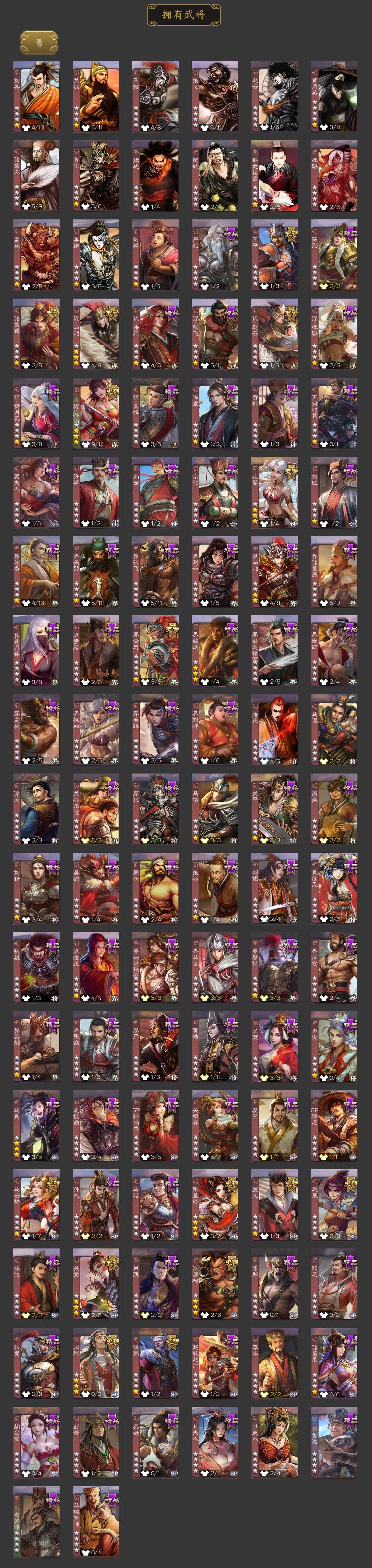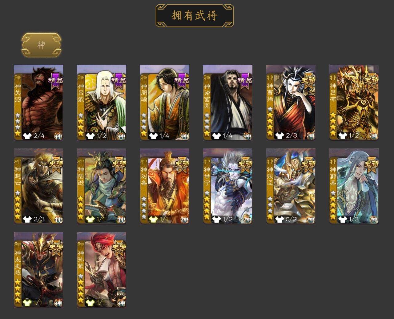[15182140]【173】官阶:大将军;vip等级:vip13;史诗武将数量:77;动态皮肤数量:74;武将总数:459;史诗宝珠数量:0;将魂数量:2541;神将:14;魏国史诗武将:39;蜀国史诗武将:16;吴国史诗武将:8;群史诗武将:24 神曹操神吕布神赵云神陆逊神刘备神甘宁神张辽神郭嘉神太史慈神孙策神关羽神吕蒙神周瑜神诸葛亮sp司马昭曹髦星周不疑张昌蒲王粲谋曹操杨修文鸯王元姬王凌王朗界钟会界于禁界曹真嵇康郝昭陈琳曹婴曹纯戏志才刘晔谋曹丕关索马云騄谋孙尚香谋赵云谋马超诸葛瞻周群赵襄张星彩王平沙摩柯谯周界黄忠花鬘董允吴景孙寒华骆统留赞界朱然界徐盛界步练师贺齐谋黄月英裴秀界沮授左慈郑玄张让杨彪星黄忠王允苏飞麹义南华老仙刘焉沮授界左慈界李儒公孙康杜预卑弥呼谋张角张绣李傕阎象许攸神郭嘉-虎年清明动态神太史慈-勇撼日月动态神孙策-霸王再世动态神荀彧-虎年清明动态神刘备-龙兴海内神甘宁-万人辟易动态神陆逊-绽焰摧枯动态神关羽-佑子伐吴神关羽-血海罗刹动态神吕蒙-兼资文武动态神诸葛亮-孟章诛邪动态神曹操-天下归心神曹操-玄天通冥动态神吕布-冠绝天下动态神赵云-战龙在野动态神赵云-神龙天降星周不疑-才广志宏动态钟会-龙年端午(动态)曹丕-气荡山河(动态)星周不疑-龙年清明动态甄姬-明珠耀躯(动态)曹丕-龙年中秋动态sp蔡文姬-兔年冬日动态荀彧-驱虎吞狼动态王粲-笔翰如流动态钟会-谋谟之勋动态界钟会-谋谟之勋动态戏志才-举棋若定动态曹婴-兔年春节动态曹婴-锋芒毕露动态朱灵-以战破氐动态曹纯-虎年春节动态曹纯-长坂败备动态王元姬-鼠年冬至动态羊徽瑜-牛年中秋动态司马师-牛年中秋动态花鬘-依心缱绻动态刘备-龙御天下动态诸葛亮-龙年限定动态卧龙诸葛-龙跃凤鸣动态关索-依心缱绻动态关羽-明良千古动态马超-虎年冬至动态黄月英-虎年中秋动态诸葛瞻-绵竹之殇动态夏侯氏-猪年中秋动态sp孙尚香-明良