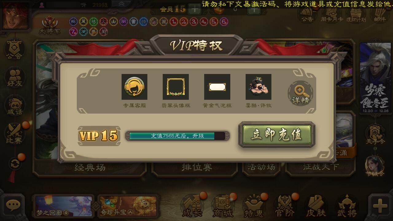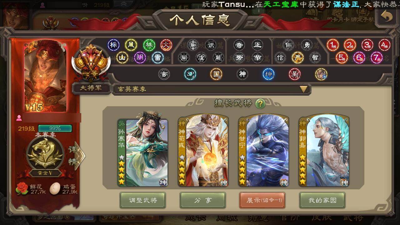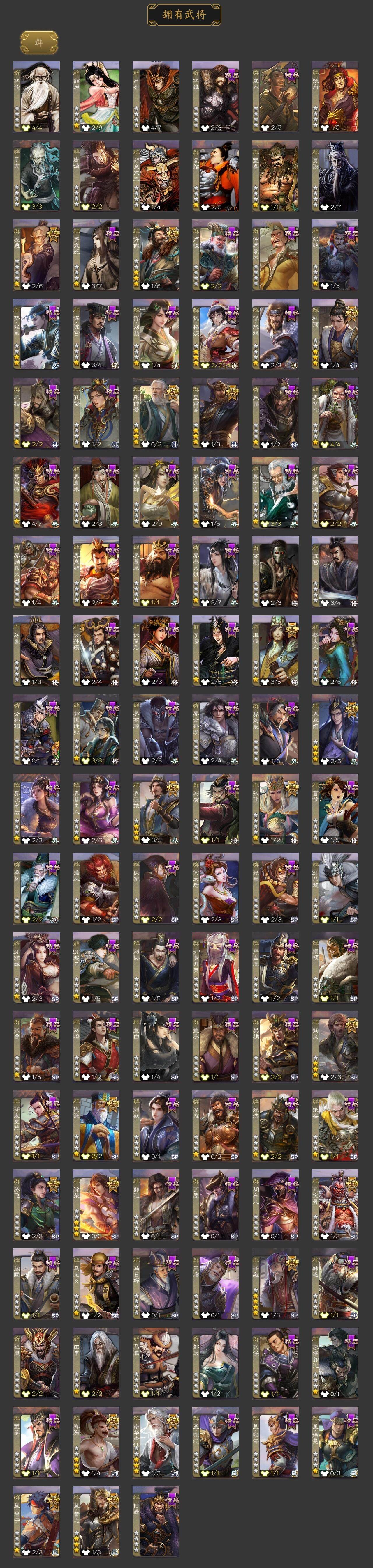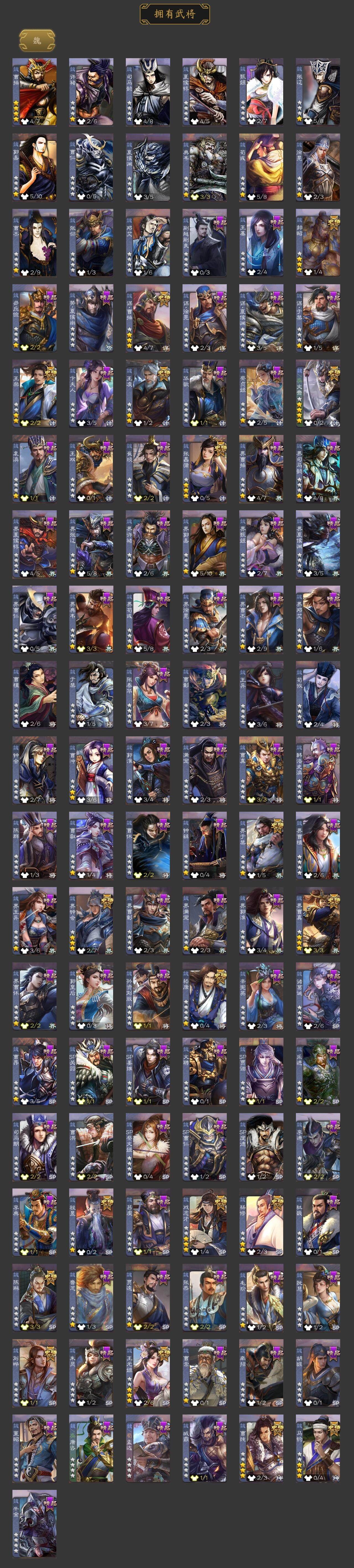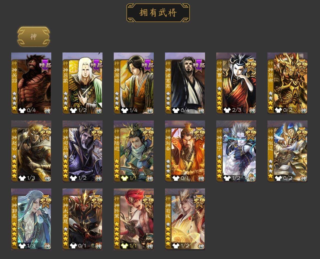 [15182209]【922】官阶:大将军;vip等级:vip15;史诗武将数量:74;动态皮肤数量:44;武将总数:454;史诗宝珠数量:0;将魂数量:616;神将:16;魏国史诗武将:31;蜀国史诗武将:15;吴国史诗武将:11;群史诗武将:20 神曹操神吕布神赵云神司马懿神陆逊神刘备神甘宁神张辽神郭嘉神太史慈神孙策神荀彧神关羽神吕蒙神周瑜神诸葛亮张昌蒲王粲谋曹操杨修文鸯王元姬王凌马钧界钟会界于禁界曹真嵇康郝昭陈琳曹纯戏志才刘晔关索马云騄谋孙尚香谋黄忠谋夏侯氏谋赵云谋马超诸葛瞻赵襄张星彩王平沙摩柯傅佥花鬘谋黄盖谋孙策周处吴景孙寒华骆统留赞界朱然界徐盛界步练师贺齐界沮授皇甫嵩左慈张仲景张让杨彪徐荣星黄忠星甘宁陶谦苏飞麹义南华老仙祢衡沮授界李儒杜预张绣李傕许攸神郭嘉-虎年清明动态神孙策-霸王再世动态神荀彧-虎年清明动态神甘宁-万人辟易动态神陆逊-绽焰摧枯动态神吕蒙-兼资文武动态神司马懿-徐图大略神曹操-天下归心神曹操-玄天通冥动态神赵云-战龙在野动态星周不疑-龙年清明动态司马懿-牛年立冬动态荀彧-驱虎吞狼动态王粲-笔翰如流动态界司马懿-牛年立冬动态张春华-牛年立冬动态张春华-雪中舞刃动态钟会-谋谟之勋动态曹真-虎年春节动态界钟会-谋谟之勋动态辛宪英-鼠年春节动态曹婴-兔年春节动态朱灵-以战破氐动态曹纯-虎年春节动态王元姬-鼠年冬至动态羊徽瑜-牛年中秋动态诸葛亮-龙年限定动态卧龙诸葛-龙跃凤鸣动态关索-依心缱绻动态关羽-明良千古动态马超-牛年春节动态马超-西凉雄狮动态马超-明良千古动态张飞-明良千古动态黄月英-虎年中秋动态诸葛亮-虎年中秋动态诸葛亮-明良千古动态黄忠-明良千古动态诸葛瞻-绵竹之殇动态界马超-牛年春节动态界马超-西凉雄狮动态界诸葛亮-明良千古动态关银屏-虎年端午动态关银屏-兔年春节动态赵襄-猪年春节动态关索-虎年七夕动态李丰-太仓聚粟动态诸葛果-虎年