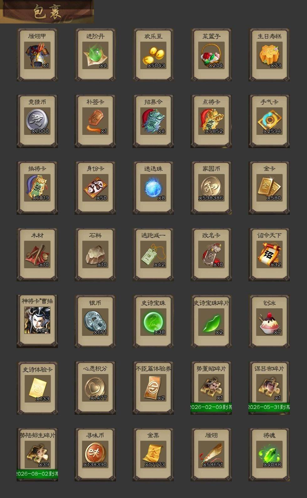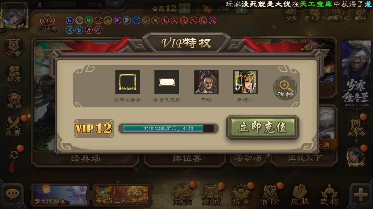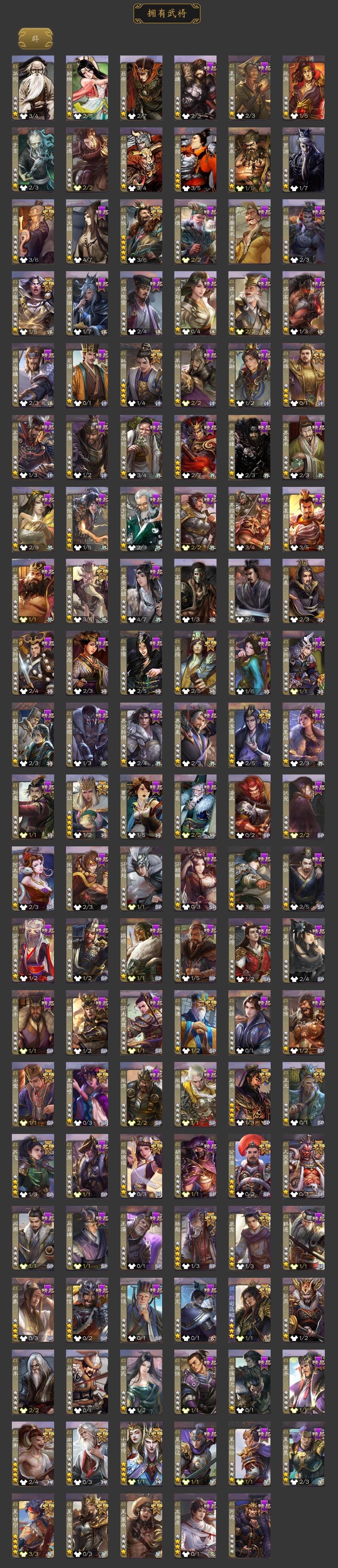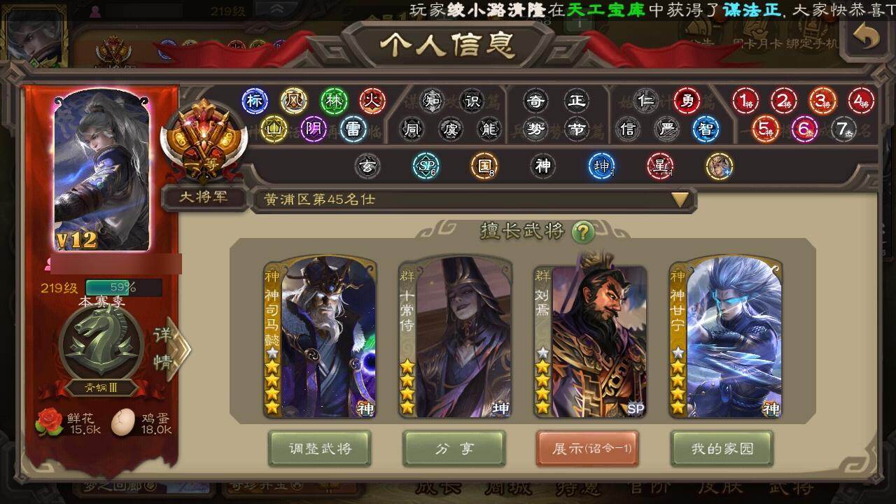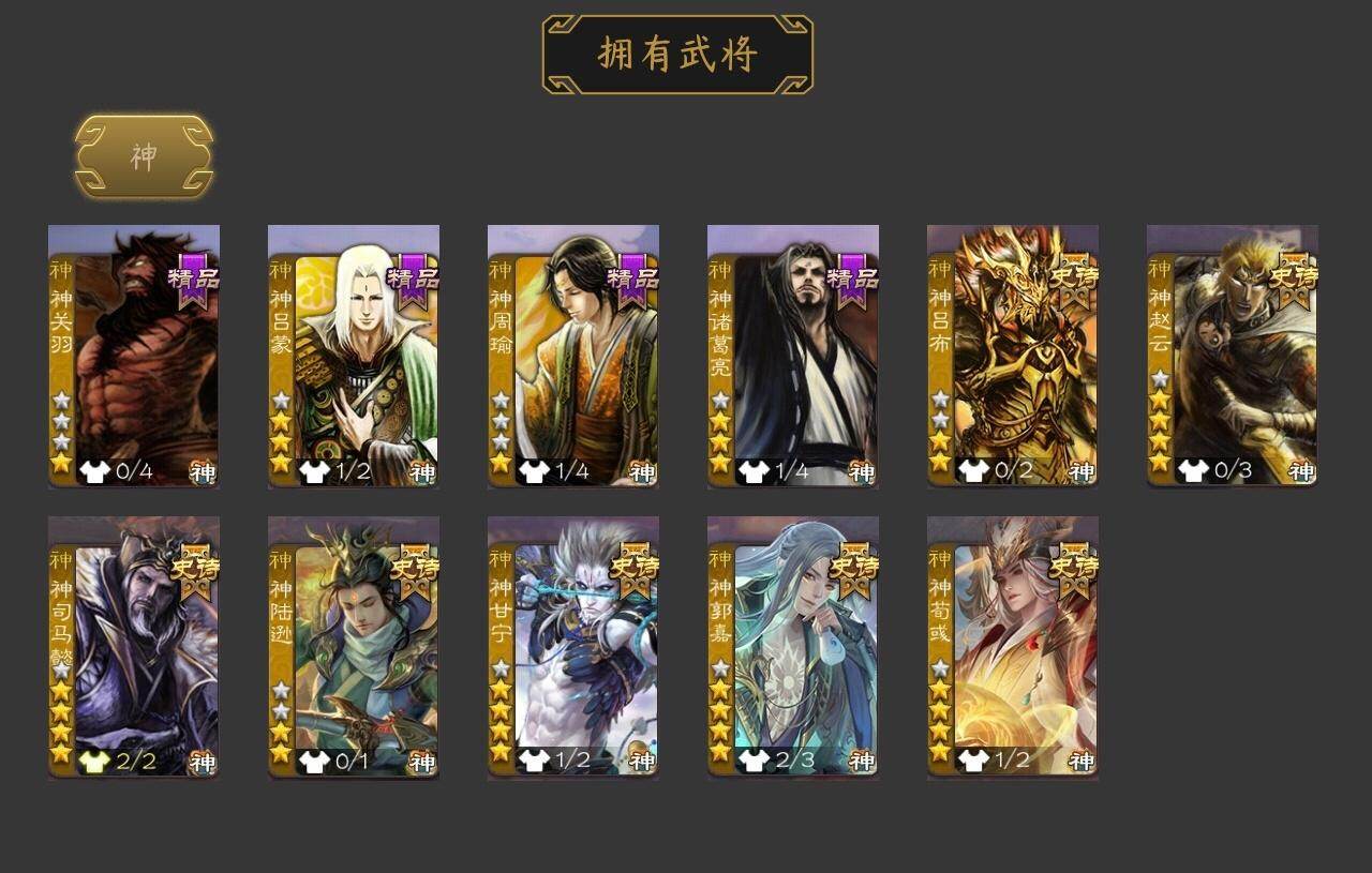 [15182238]【243】官阶:大将军;vip等级:vip12;史诗武将数量:76;动态皮肤数量:47;武将总数:463;史诗宝珠数量:38;将魂数量:4088;神将:11;魏国史诗武将:26;蜀国史诗武将:13;吴国史诗武将:11;群史诗武将:31 神吕布神赵云神司马懿神陆逊神甘宁神郭嘉神荀彧神关羽神吕蒙神周瑜神诸葛亮星周不疑王粲谋曹操杨修文鸯王元姬魏-司马昭马钧界钟会界曹真嵇康郝昭陈琳曹婴曹纯戏志才谋曹丕清河公主关索谋诸葛亮马云騄谋赵云谋马超诸葛瞻赵襄张星彩王平沙摩柯谯周界黄忠花鬘谋黄盖谋孙策周处孙皓骆统留赞界朱然界徐盛界步练师贺齐势太史慈谋郭嘉十常侍裴秀左慈张让张琪瑛杨彪星黄忠星甘宁王允陶谦苏飞南华老仙祢衡刘璋刘焉沮授界左慈界李儒公孙康杜预卑弥呼鲍信谋张角张绣李傕阎象许攸陈珪友徐庶星董卓神郭嘉-虎年清明动态神太史慈-勇撼日月动态神孙策-霸王再世动态神荀彧-虎年清明动态神吕蒙-心生万象神郭嘉-半醉山河神甘宁-万人辟易动态神诸葛亮-风舞魔鸟动态神司马懿-徐图大略神司马懿-鉴往知来动态星周不疑-才广志宏动态张昌蒲-龙年端午(动态)钟会-潜蛟觊天动态星周不疑-龙年清明动态甄姬-明珠耀躯(动态)sp蔡文姬-兔年冬日动态邓艾-神兵天降动态界邓艾-神兵天降动态戏志才-举棋若定动态曹婴-锋芒毕露动态王元姬-鼠年冬至动态司马昭-昭威淮南(动态)星徐晃-斧引霹雳动态清河公主-魅影萦心动态刘备-龙御天下动态刘备-明良千古动态界刘备-明良千古动态关索-虎年七夕动态卧龙诸葛-火烧博望动态小乔-兔年七夕动态周处-义除三害动态吕蒙-剑起惊澜动态陆逊-龙年七夕动态黄盖-以身证道动态孙权-兔年中秋动态孙权-永开吴祚动态徐盛-破军杀将动态孙茹-烟水悠悠动态刘赞-灵魂歌王动态文鸯-势若万钧动态袁绍-声震寰宇动态杜预-龙吟破竹动态许攸-盛气凌人动态刘焉-雄踞益州动态祢衡-击鼓骂曹动态星甘宁-肝胆相照动态