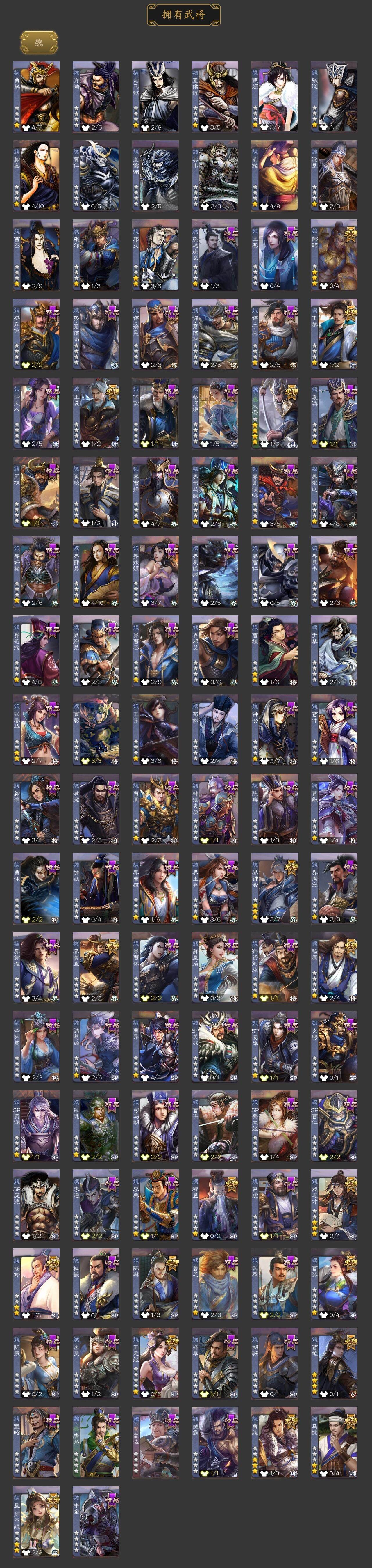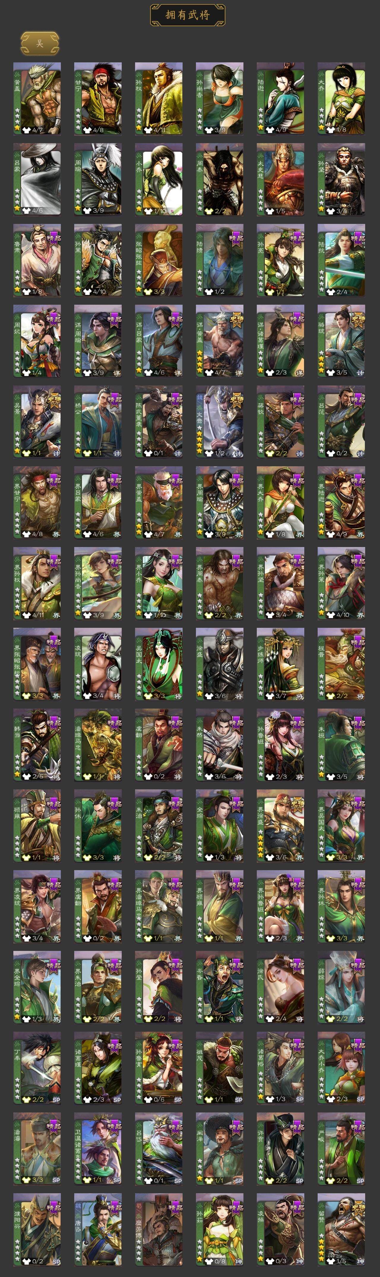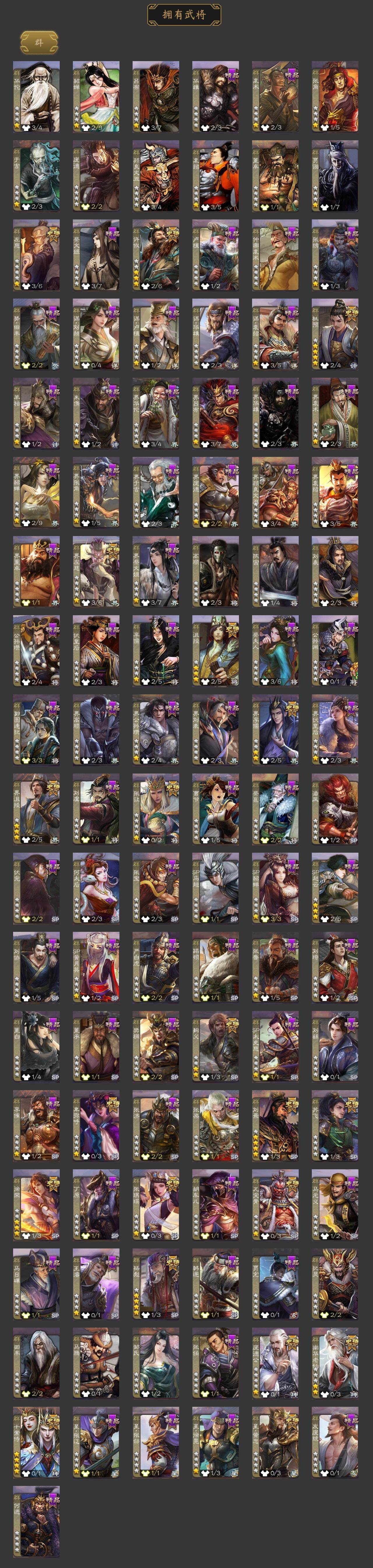 [15182566]【258】官阶:大将军;vip等级:vip12;史诗武将数量:65;动态皮肤数量:57;武将总数:421;史诗宝珠数量:0;将魂数量:270;神将:12;魏国史诗武将:29;蜀国史诗武将:14;吴国史诗武将:5;群史诗武将:21 神曹操神吕布神赵云神陆逊神甘宁神张辽神郭嘉神孙策神荀彧神吕蒙神周瑜神诸葛亮曹髦星周不疑王粲杨修文鸯王元姬王凌马钧界钟会界曹真嵇康郝昭陈琳曹婴曹纯戏志才关索谋诸葛亮谋黄忠谋夏侯氏谋赵云谋马超诸葛瞻张星彩王平沙摩柯谯周花鬘董允谋关羽谋黄盖吴景骆统留赞界徐盛十常侍界沮授左慈张让张琪瑛杨彪徐荣星黄忠苏飞麹义庞德公南华老仙刘焉沮授界左慈界李儒杜预卑弥呼张绣李傕许攸神郭嘉-虎年清明动态神太史慈-勇撼日月动态神孙策-霸王再世动态神荀彧-虎年清明动态神甘宁-万人辟易动态神陆逊-绽焰摧枯动态神诸葛亮-孟章诛邪动态神曹操-玄天通冥动态神赵云-战龙在野动态星周不疑-才广志宏动态钟会-龙年端午(动态)曹丕-气荡山河(动态)星周不疑-龙年清明动态甄姬-明珠耀躯(动态)sp蔡文姬-兔年冬日动态荀彧-驱虎吞狼动态邓艾-神兵天降动态界邓艾-神兵天降动态钟会-谋谟之勋动态界钟会-谋谟之勋动态曹昂-竭战麟伤动态戏志才-举棋若定动态朱灵-以战破氐动态曹纯-虎年春节动态清河公主-魅影萦心动态花鬘-依心缱绻动态刘备-龙御天下动态诸葛亮-龙年限定动态卧龙诸葛-龙跃凤鸣动态关羽-以身证道(动态)黄忠-烈箭贯云动态)关索-依心缱绻动态关羽-明良千古动态黄忠-明良千古动态夏侯氏-猪年中秋动态sp孙尚香-猪年圣诞动态张星彩-虎年端午动态关索-虎年七夕动态李丰-太仓聚粟动态孙策-兔年中秋动态周处-义除三害动态吕蒙-剑起惊澜动态黄盖-以身证道动态孙权-永开吴祚动态周瑜-兔年七夕动态孙策-虎踞江东动态孙权-牛年七夕动态孙尚香-星流霆击动态界孙权-牛年七夕动态界孙尚香-星流霆击动态徐盛-