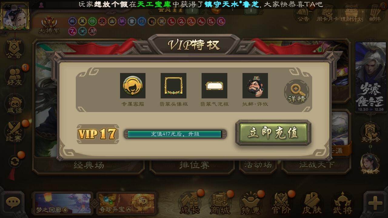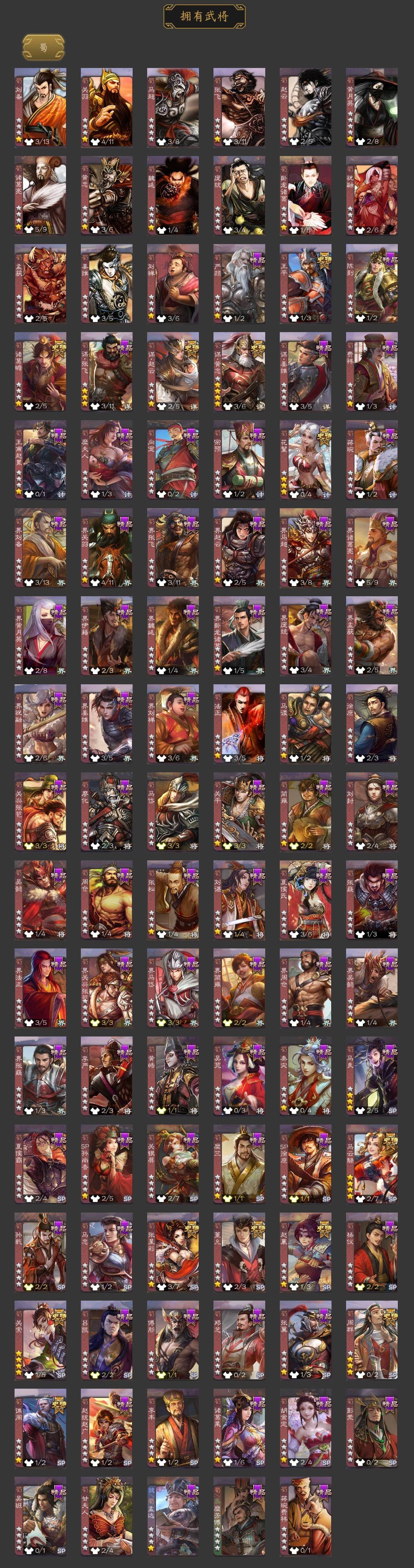 [15182685]【310】官阶:大将军;vip等级:vip17;史诗武将数量:73;动态皮肤数量:32;武将总数:444;史诗宝珠数量:0;将魂数量:134;神将:17;魏国史诗武将:22;蜀国史诗武将:12;吴国史诗武将:10;群史诗武将:24 神曹操神吕布神赵云神司马懿神陆逊神刘备神甘宁神张辽神郭嘉神太史慈神孙策神荀彧神关羽神吕蒙神周瑜神诸葛亮神鲁肃张昌蒲杨修文鸯王元姬王凌马钧界钟会界曹真嵇康郝昭陈琳曹婴曹纯戏志才关索马云騄谋黄忠谋赵云诸葛瞻周群赵襄张星彩王平谯周花鬘董允吴景孙皓孙寒华骆统留赞界朱然界徐盛界步练师贺齐势太史慈左慈张仲景张让张琪瑛杨彪徐荣星黄忠星甘宁司马徽麹义庞德公南华老仙祢衡刘璋刘焉灵雎沮授界李儒公孙康杜预卑弥呼张绣李傕许攸神关羽-链狱鬼神神郭嘉-虎年清明动态神荀彧-虎年清明动态神甘宁-万人辟易动态神陆逊-绽焰摧枯动态神曹操-玄天通冥动态神赵云-战龙在野动态钟繇-安民护祚(动态)许褚-虎啸生风动态司马懿-牛年立冬动态邓艾-神兵天降动态王粲-笔翰如流动态界司马懿-牛年立冬动态界许褚-虎啸生风动态界邓艾-神兵天降动态戏志才-举棋若定动态曹婴-锋芒毕露动态羊徽瑜-牛年中秋动态司马师-牛年中秋动态关羽-明良千古动态张飞-明良千古动态赵云-明亮千古动态诸葛亮-虎年中秋动态诸葛亮-明良千古动态界诸葛亮-明良千古动态马云騄-明良千古动态张星彩-虎年端午动态关索-虎年七夕动态鲍三娘-虎年七夕动态胡金定-明良千古动态孙策-兔年清明动态陆逊-龙年七夕动态孙权-牛年七夕动态孙权-冠绝天下动态大乔-猪年七夕动态孙策-猪年七夕动态界大乔-猪年七夕动态界孙权-牛年七夕动态界孙策-猪年七夕动态徐盛-破军杀将动态步练师-牛年七夕动态朱然-剑舞枫飞动态界步练师-牛年七夕动态刘协-困龙犹斗动态貂蝉-鼠年七夕动态貂蝉-绝世倾城动态吕布-鼠年七夕动态袁绍-一往无前动态界吕布