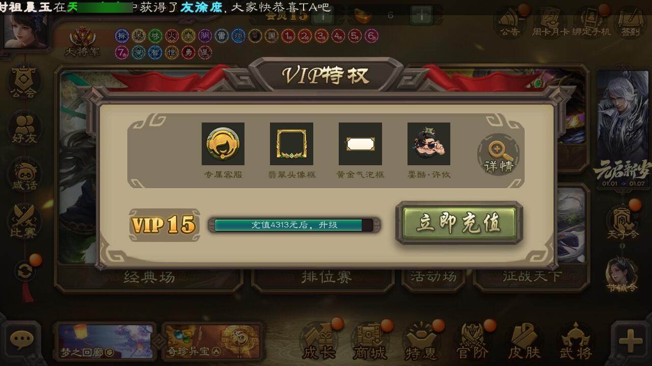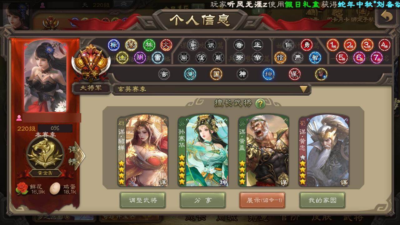 [15183048]【786】官阶:大将军;vip等级:vip15;史诗武将数量:94;动态皮肤数量:68;武将总数:485;史诗宝珠数量:0;将魂数量:171;神将:13;魏国史诗武将:33;蜀国史诗武将:17;吴国史诗武将:14;群史诗武将:31 神曹操神吕布神赵云神司马懿神陆逊神刘备神甘宁神张辽神郭嘉神太史慈神孙策神荀彧神诸葛亮星周不疑王粲谋曹操杨修羊徽瑜王元姬王凌王朗司马师马钧界钟会界于禁界曹真嵇康郝昭陈琳曹婴曹纯戏志才刘晔程昱关索马云騄谋黄忠谋夏侯氏谋赵云谋马超诸葛瞻周群赵襄张星彩王平沙摩柯谯周界黄忠花鬘董允谋关羽谋黄盖周处吴景孙皓孙寒华骆统留赞界朱然界徐盛界步练师贺齐势陆郁生文鸯十常侍谋貂蝉裴秀界沮授皇甫嵩左慈张仲景张让张琪瑛杨彪徐荣星黄忠星甘宁王允陶谦苏飞司马徽麹义庞德公南华老仙祢衡刘焉沮授界左慈界李儒公孙康杜预卑弥呼许攸兀突骨士燮神吕蒙神周瑜神关羽势夏侯尚sp关羽sp曹仁sp蔡文姬乐进曹昂诸葛诞朱灵文聘sp姜维张春华钟会曹冲郭淮满宠界王异界曹操界司马懿界夏侯惇界张辽界许褚界郭嘉李典曹真韩浩史涣陈群曹叡曹休钟繇司马朗王基李通郭皇后孙资刘放辛宪英界甄姬吕虔鲁芝蒯越蒯良界典韦界荀彧界徐晃杜畿界曹丕毌丘俭界邓艾张恭贾逵界曹植界曹彰界满宠界郭淮卞夫人辛毗界陈群华歆蔡贞姬袁涣王双崔琰毛玠杨阜阮慧曹嵩谋徐晃谋于禁界曹休牵招胡班谋夏侯渊牛金界夏侯渊界曹仁臧霸唐咨董昭sp孙尚香关银屏夏侯霸马良关兴张苞廖化界马岱关平简雍刘封界法正界关兴张苞界刘备界关羽界张飞界赵云界马超sp徐庶吴懿周仓张松刘谌夏侯氏糜竺马忠孙乾李严黄皓吴苋秦宓界黄月英界诸葛亮赵统赵广严颜界伊籍界卧龙诸葛界庞统界孟获界祝融陈到界姜维界刘禅胡金定吕凯张翼杨仪界廖化邓芝傅肜界简雍陈震费祎糜夫人王甫赵累界周仓许靖向宠宗预蒋琬刘巴彭羕谋法正谋庞统界张嶷谋姜维谋张