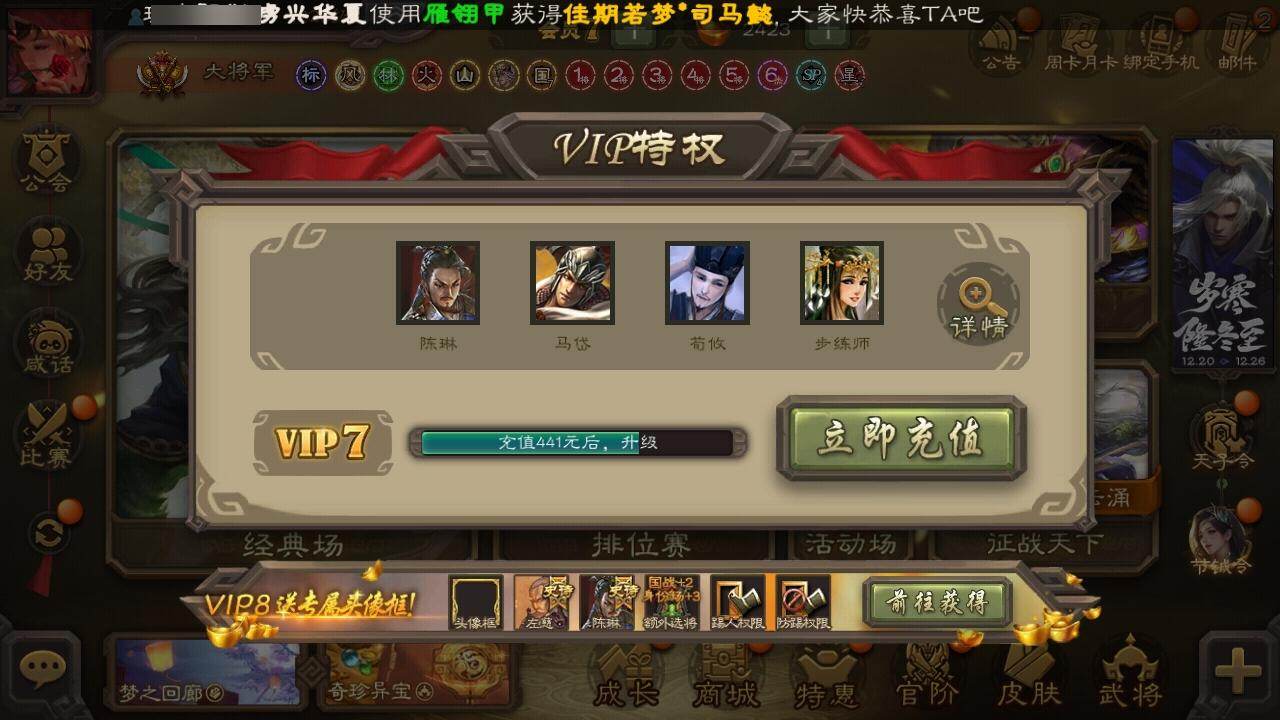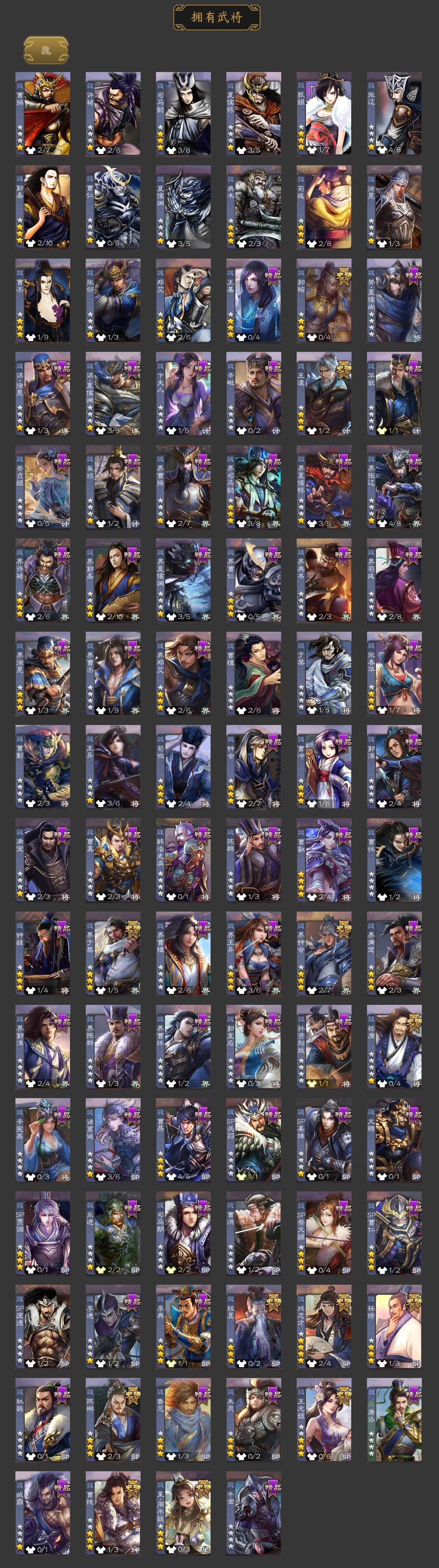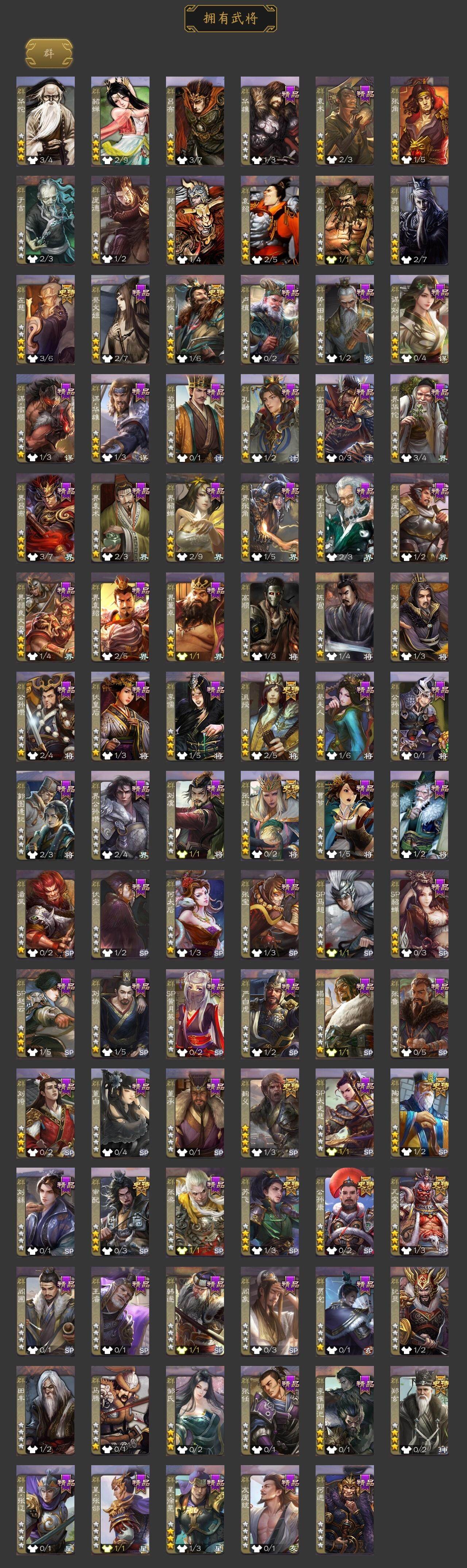 [15240623]【365】官阶:大将军;vip等级:vip7;史诗武将数量:42;动态皮肤数量:18;武将总数:344;史诗宝珠数量:0;将魂数量:4523;神将:5;魏国史诗武将:8;蜀国史诗武将:9;吴国史诗武将:6;群史诗武将:11 神赵云神张辽神太史慈神荀彧神吕蒙星周不疑杨修王元姬王凌界钟会界于禁嵇康郝昭陈琳曹纯戏志才马云騄谋马超诸葛瞻周群张星彩王平沙摩柯界黄忠董允周处吴景骆统界徐盛贺齐势陆郁生左慈郑玄张让陶谦苏飞审配麹义沮授公孙康阎象许攸神荀彧-虎年清明动态神诸葛亮-观星唤雨邓艾-神兵天降动态界邓艾-神兵天降动态曹真-虎年春节动态戏志才-举棋若定动态曹纯-虎年春节动态刘备-龙御天下动态马超-牛年春节动态黄月英-鼠年春节动态界马超-牛年春节动态界黄月英-鼠年春节动态张星彩-猪年中秋动态赵襄-猪年春节动态鲍三娘-虎年七夕动态鲍三娘-柳娇桃艳动态孙策-虎踞江东动态周瑜-免年清明动态徐盛-破军杀将动态麹义-扬刀立威动态左慈-役使鬼神动态卑弥呼-鬼渊蝶引动态