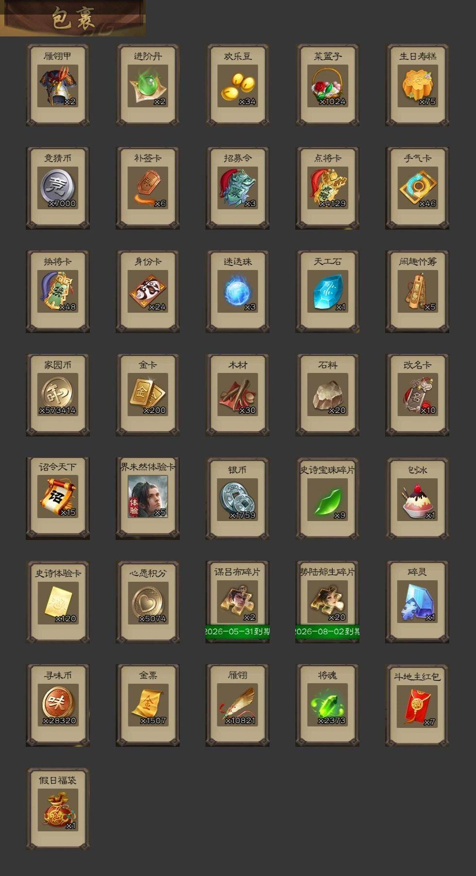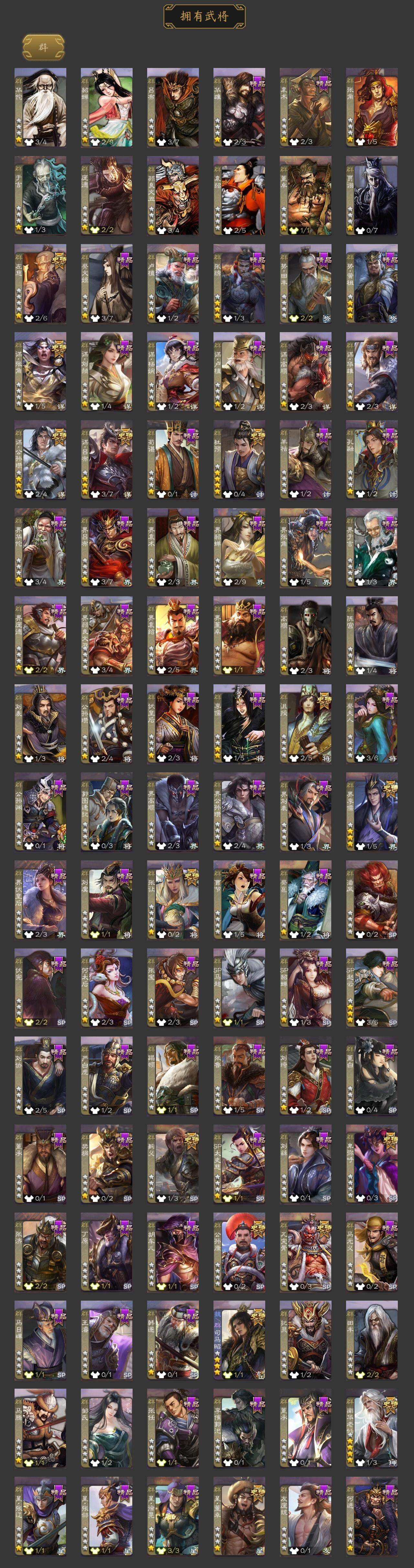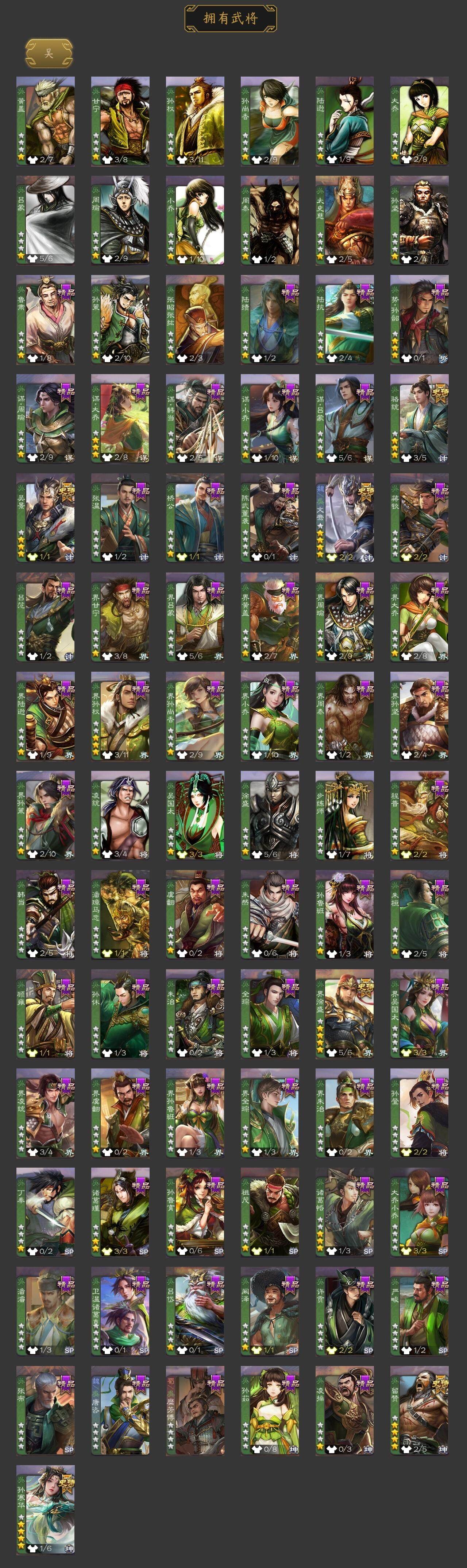 [15240792]【43】官阶:大将军;vip等级:vip9;史诗武将数量:41;动态皮肤数量:31;武将总数:371;史诗宝珠数量:0;将魂数量:2373;神将:6;魏国史诗武将:20;蜀国史诗武将:7;吴国史诗武将:5;群史诗武将:14 神吕布神赵云神陆逊神太史慈神吕蒙神诸葛亮星周不疑杨修文鸯王元姬魏-司马昭界钟会郝昭曹婴曹纯戏志才关索谋诸葛亮谋赵云周群赵襄沙摩柯花鬘吴景孙寒华骆统留赞界徐盛谋公孙瓒左慈张让麹义南华老仙沮授界李儒公孙康杜预卑弥呼谋张角张绣谋吕布星董卓神鲁肃-九州为局神周瑜-波澜不惊神诸葛亮-风舞魔鸟动态星周不疑-才广志宏动态钟会-龙年端午(动态)曹丕-气荡山河(动态)甄姬-明珠耀躯(动态)曹昂-竭战麟伤动态戏志才-举棋若定动态王元姬-鼠年冬至动态司马昭-昭威淮南(动态)星徐晃-斧引霹雳动态清河公主-魅影萦心动态刘备-龙御天下动态诸葛亮-龙年限定动态张飞-明良千古动态周处-义除三害动态吕蒙-剑起惊澜动态孙权-永开吴祚动态孙策-虎踞江东动态文鸯-破宇开天动态徐盛-破军杀将动态刘赞-灵魂歌王动态孙寒华-蛇年限定动态文鸯-势若万钧动态南华老仙-冠绝天下动态麹义-扬刀立威动态吕布-虓虎之勇动态界吕布-虓虎之勇动态刘焉-雄踞益州动态sp赵云-威名尽显动态左慈-蛇年限定动态
