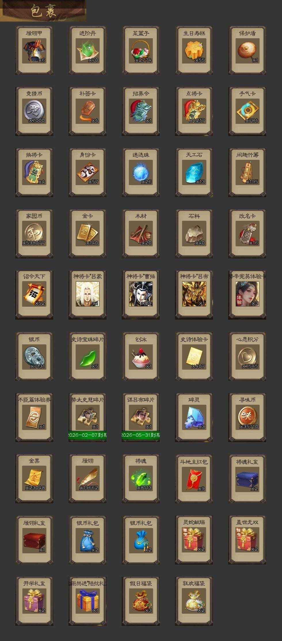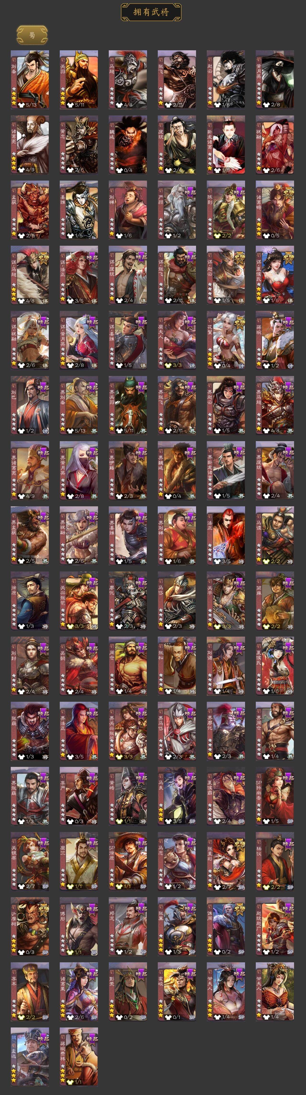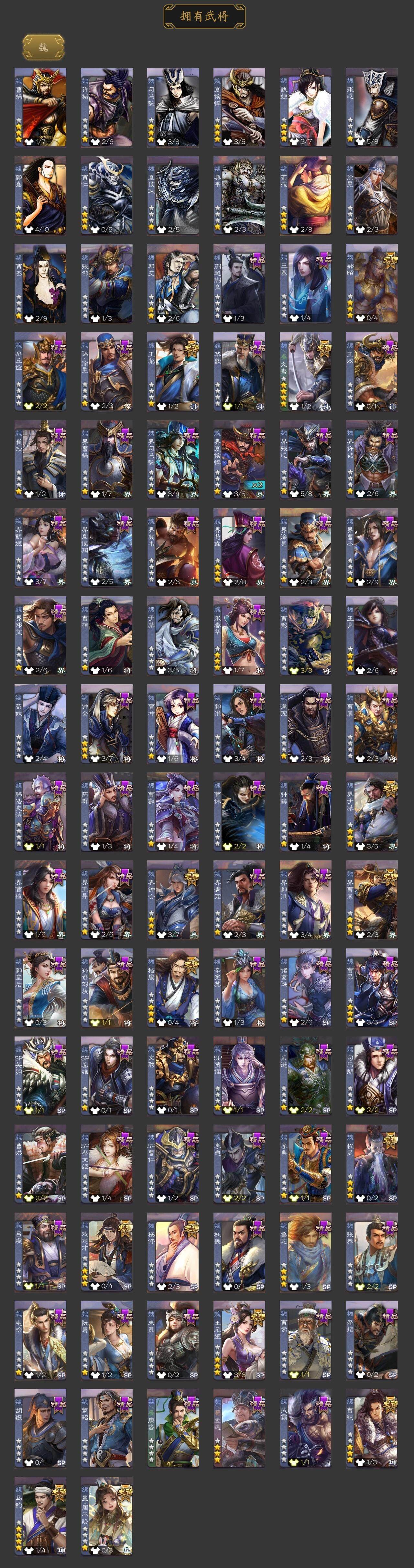 [15240835]【486】官阶:大将军;vip等级:vip10;史诗武将数量:46;动态皮肤数量:32;武将总数:377;史诗宝珠数量:0;将魂数量:8113;神将:8;魏国史诗武将:22;蜀国史诗武将:8;吴国史诗武将:4;群史诗武将:16 神吕布神赵云神陆逊神刘备神甘宁神张辽神吕蒙神周瑜星周不疑王粲杨修文鸯王元姬马钧界钟会界于禁界曹真嵇康郝昭曹纯戏志才谋夏侯氏谋赵云谋马超诸葛瞻张星彩沙摩柯谯周花鬘周处骆统留赞界徐盛谋黄月英左慈张让星黄忠王允麹义南华老仙沮授界左慈界李儒杜预鲍信李傕阎象许攸友诸葛亮神郭嘉-虎年清明动态神荀彧-虎年清明动态神甘宁-万人辟易动态神吕布-冠绝天下动态神赵云-战龙在野动态曹丕-气荡山河(动态)甄姬-明珠耀躯(动态)sp蔡文姬-兔年冬日动态荀彧-驱虎吞狼动态邓艾-神兵天降动态界邓艾-神兵天降动态于禁-威严毅重动态钟会-谋谟之勋动态界于禁-威严毅重动态界钟会-谋谟之勋动态曹纯-虎年春节动态王元姬-鼠年冬至动态刘备-龙御天下动态诸葛亮-龙年限定动态关羽-明良千古动态马超-虎年冬至动态马超-明良千古动态夏侯氏-猪年中秋动态关银屏-兔年春节动态关索-虎年七夕动态鲍三娘-虎年七夕动态李丰-太仓聚粟动态诸葛果-蛇年限定动态周处-义除三害动态吕蒙-剑起惊澜动态孙权-永开吴祚动态孙策-虎踞江东动态孙寒华-莲华熠熠动态孙权-牛年七夕动态界孙权-牛年七夕动态文鸯-势若万钧动态灵雎-霜刃绚练动态麹义-扬刀立威动态杜预-龙吟破竹动态南华老仙-野鹤闲云动态陶谦-安民护祚动态