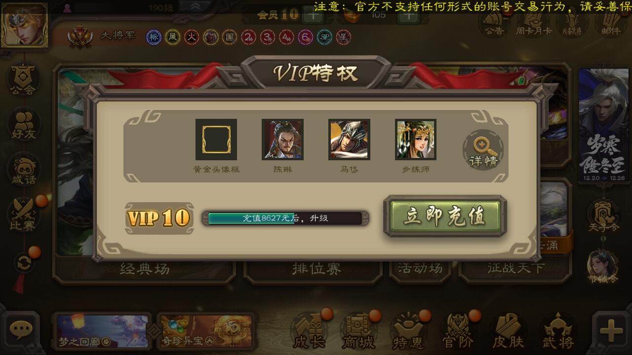 [15240906]【890】官阶:大将军;vip等级:vip10;史诗武将数量:36;动态皮肤数量:28;武将总数:323;史诗宝珠数量:1;将魂数量:6070;神将:5;魏国史诗武将:14;蜀国史诗武将:9;吴国史诗武将:4;群史诗武将:9 神吕布神赵云神郭嘉神吕蒙神周瑜星周不疑杨修魏-司马昭界钟会界于禁界曹真曹婴曹纯戏志才谋赵云谋马超诸葛瞻赵襄王平沙摩柯谯周花鬘谋关羽吴景骆统界朱然界徐盛左慈张让麹义南华老仙沮授界左慈公孙康许攸星董卓神郭嘉-虎年清明动态神太史慈-勇撼日月动态神荀彧-虎年清明动态神吕布-冠绝天下动态神赵云-战龙在野动态星周不疑-才广志宏动态钟繇-安民护祚(动态)曹丕-气荡山河(动态)钟会-谋谟之勋动态界钟会-谋谟之勋动态曹婴-兔年春节动态司马昭-昭威淮南(动态)刘备-龙御天下动态费祎-安民护祚(动态)关羽-明良千古动态甘夫人-为君担忧动态诸葛果-蛇年限定动态孙策-兔年中秋动态周处-义除三害动态陆逊-龙年七夕动态孙权-永开吴祚动态孙寒华-莲华熠熠动态黄盖-鏖战赤壁动态孙尚香-兔年春节动态界黄盖-鏖战赤壁动态徐盛-破军杀将动态步练师-牛年七夕动态陆逊-蛇年清明动态灵雎-霜刃绚练动态袁绍-声震寰宇动态南华老仙-冠绝天下动态貂蝉-鼠年七夕动态左慈-役使鬼神动态界貂蝉-鼠年七夕动态左慈-蛇年限定动态