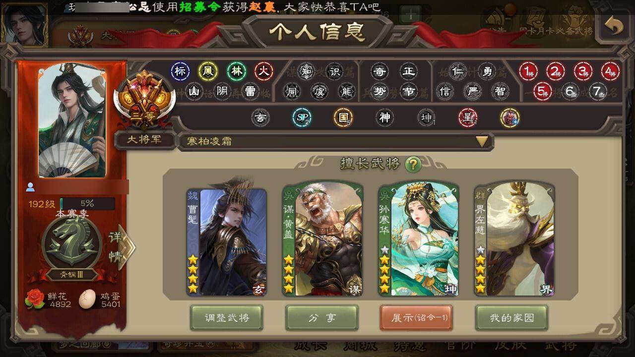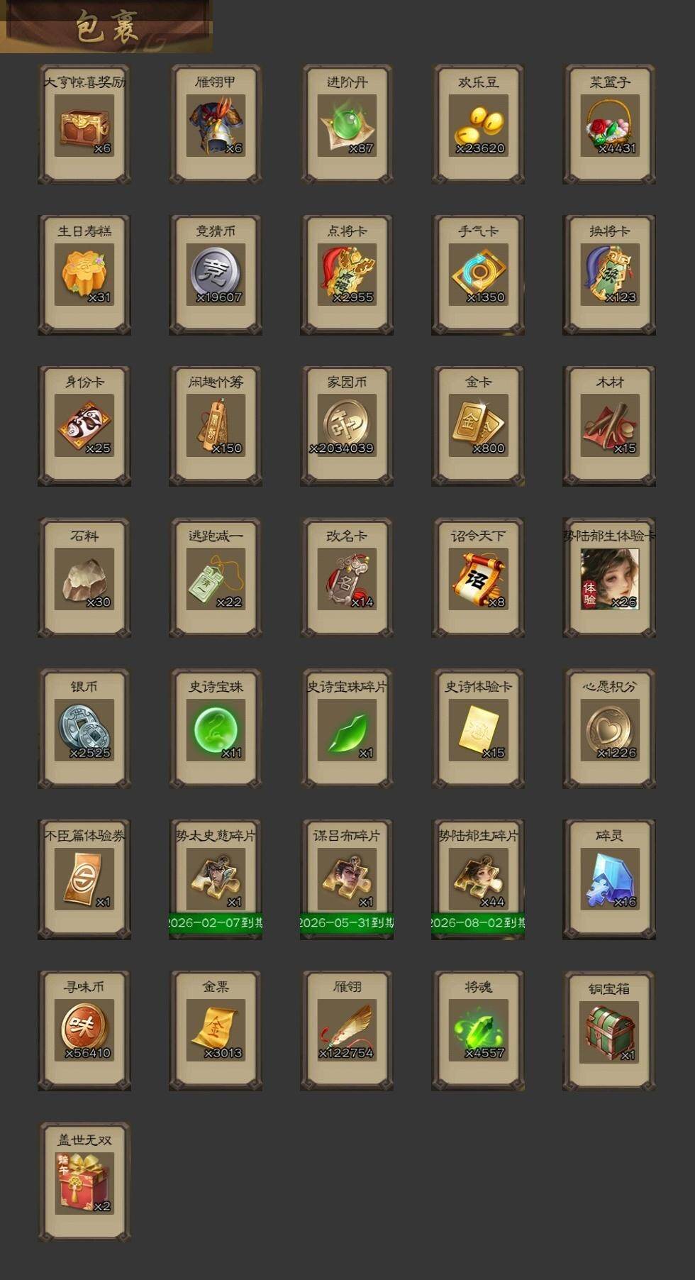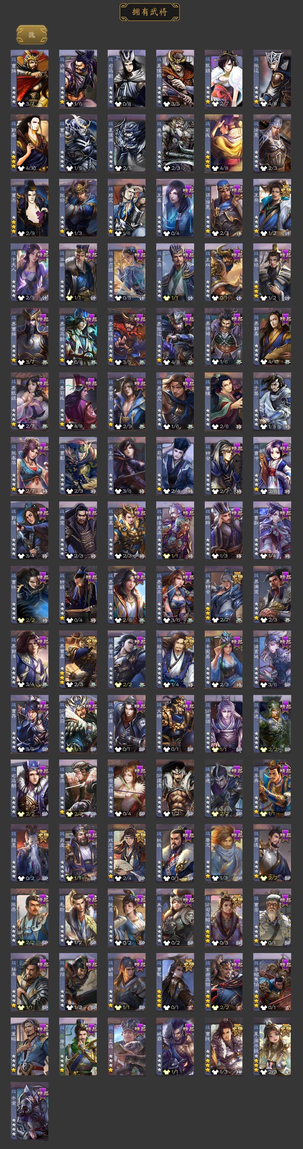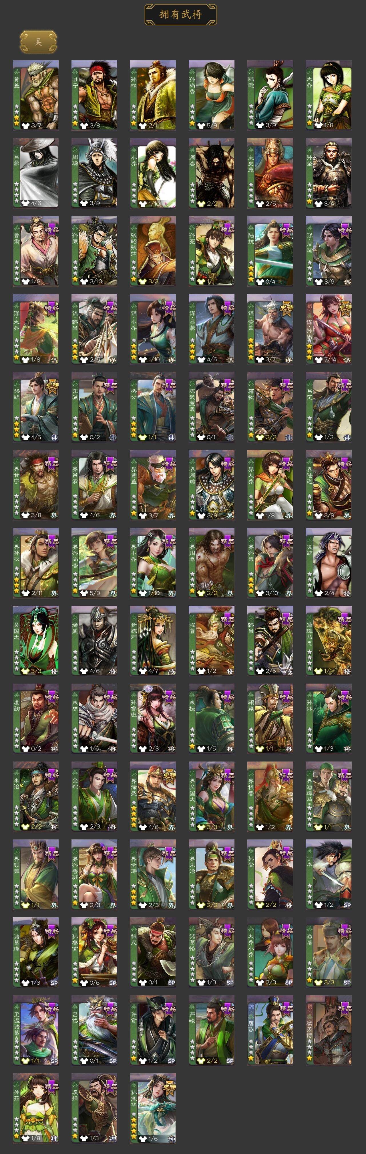 [15241033]【367】官阶:大将军;vip等级:vip9;史诗武将数量:41;动态皮肤数量:36;武将总数:357;史诗宝珠数量:11;将魂数量:4557;神将:4;魏国史诗武将:22;蜀国史诗武将:12;吴国史诗武将:4;群史诗武将:16 神吕布神赵云神张辽神吕蒙sp司马昭曹髦星周不疑王粲界钟会界曹真嵇康曹纯戏志才马云騄谋孙尚香谋赵云谋马超诸葛瞻周群张星彩沙摩柯谯周界黄忠花鬘谋黄盖孙寒华骆统界徐盛裴秀左慈郑玄星黄忠麹义南华老仙沮授界左慈界李儒公孙康鲍信谋张角张绣李傕阎象星董卓神吕蒙-兼资文武动态星周不疑-才广志宏动态曹丕-气荡山河(动态)星周不疑-龙年清明动态甄姬-明珠耀躯(动态)荀彧-驱虎吞狼动态张春华-雪中舞刃动态钟会-谋谟之勋动态界钟会-谋谟之勋动态曹婴-锋芒毕露动态曹纯-虎年春节动态星徐晃-斧引霹雳动态刘备-龙御天下动态诸葛亮-龙年限定动态马超-虎年冬至动态诸葛瞻-绵竹之殇动态夏侯氏-明良千古动态sp孙尚香-明良千古动态李丰-太仓聚粟动态卧龙诸葛-火烧博望动态孙策-兔年中秋动态周处-义除三害动态吕蒙-剑起惊澜动态陆逊-龙年七夕动态黄盖-兔年端午动态孙权-永开吴祚动态孙策-虎踞江东动态孙寒华-莲华熠熠动态黄盖-鏖战赤壁动态孙尚香-兔年春节动态界黄盖-鏖战赤壁动态鲁肃-蛇年端午动态陆逊-蛇年清明动态袁绍-声震寰宇动态麹义-扬刀立威动态左慈-役使鬼神动态谋刘赪-明良千古动态