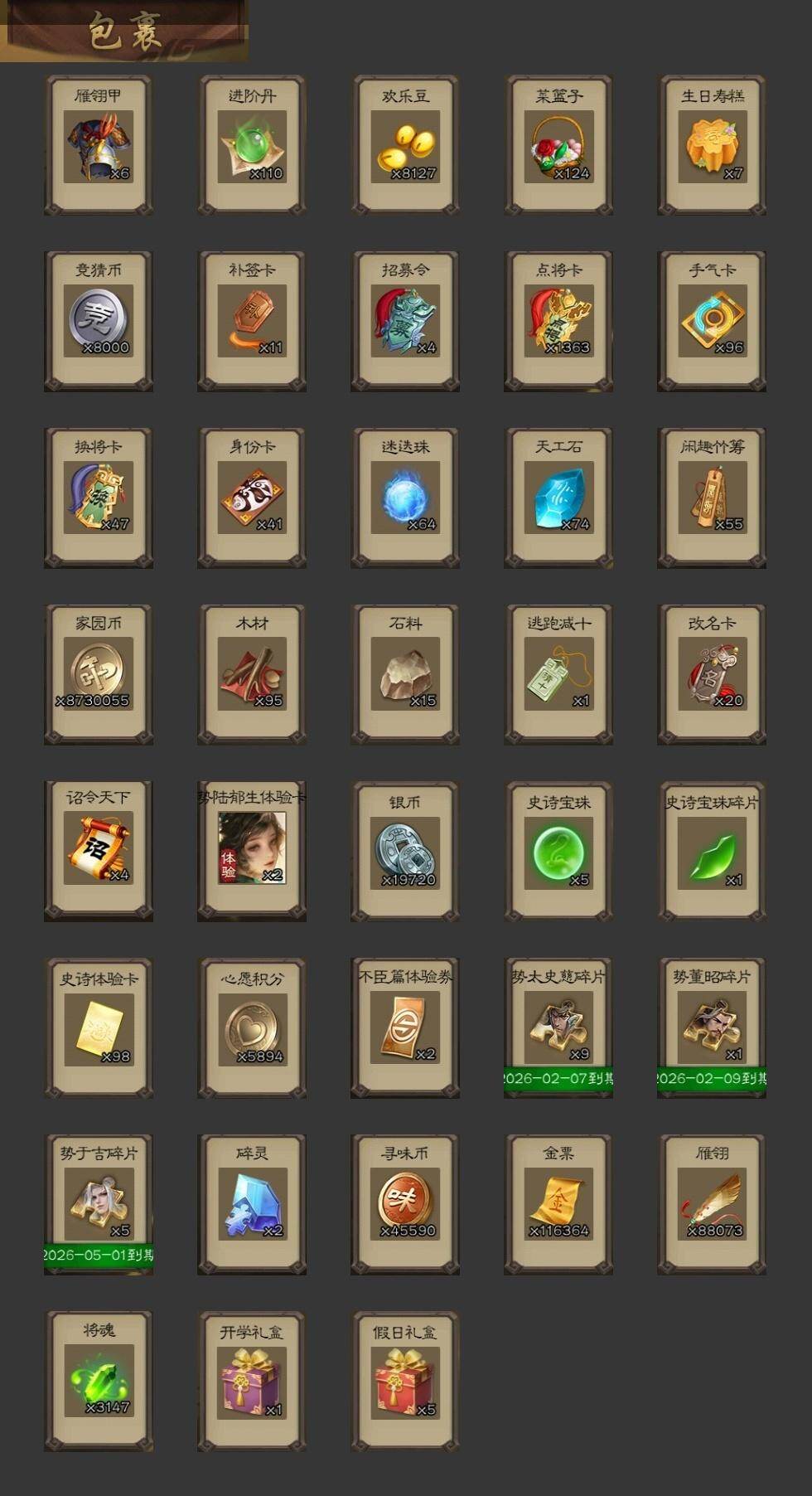 [15241642]【539】官阶:大将军;vip等级:vip8;史诗武将数量:40;动态皮肤数量:26;武将总数:347;史诗宝珠数量:5;将魂数量:3147;神将:3;魏国史诗武将:15;蜀国史诗武将:9;吴国史诗武将:3;群史诗武将:18 神吕布神赵云神陆逊星周不疑魏-司马昭马钧界钟会界于禁界曹真曹纯戏志才谋曹丕蒋干清河公主谋赵云谋马超诸葛瞻王平沙摩柯谯周界黄忠花鬘董允界徐盛界步练师贺齐谋黄月英谋荀彧谋公孙瓒左慈张让星黄忠麹义刘焉界李儒公孙康杜预鲍信谋张角张绣李傕阎象许攸星董卓神吕蒙-心生万象神赵云-神龙天降星周不疑-才广志宏动态曹丕-气荡山河(动态)sp蔡文姬-兔年冬日动态朱灵-以战破氐动态曹纯-虎年春节动态司马昭-昭威淮南(动态)星徐晃-斧引霹雳动态清河公主-魅影萦心动态卧龙诸葛-龙跃凤鸣动态马超-虎年冬至动态李丰-太仓聚粟动态卧龙诸葛-火烧博望动态周处-义除三害动态孙权-永开吴祚动态孙策-虎踞江东动态孙权-牛年七夕动态界孙权-牛年七夕动态徐盛-破军杀将动态袁绍-声震寰宇动态麹义-扬刀立威动态吕布-鼠年七夕动态界吕布-鼠年七夕动态李儒-鸠杀少帝动态界李儒-鸠杀少帝动态刘焉-雄踞益州动态阎象-知天难易动态左慈-蛇年限定动态