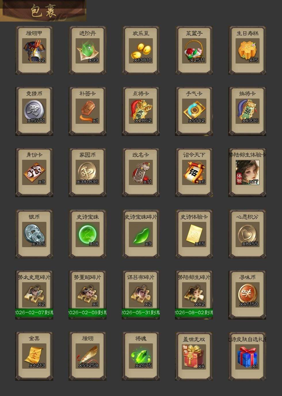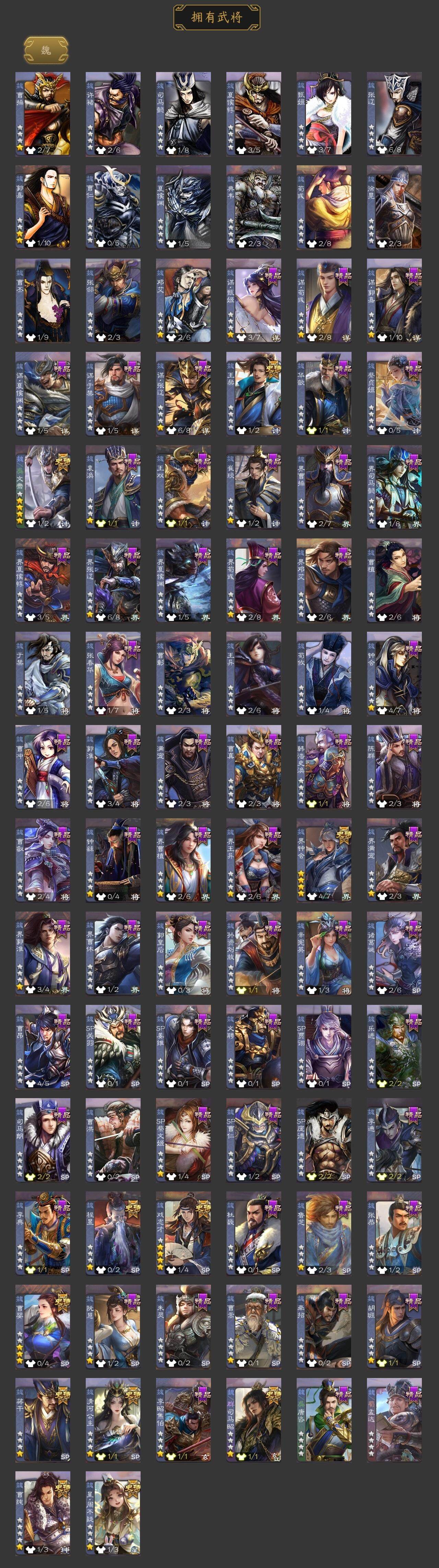 [15241896]【253】官阶:大将军;vip等级:vip10;史诗武将数量:37;动态皮肤数量:36;武将总数:333;史诗宝珠数量:18;将魂数量:2675;神将:6;魏国史诗武将:20;蜀国史诗武将:4;吴国史诗武将:2;群史诗武将:18 神吕布神赵云神陆逊神张辽神太史慈神孙策星周不疑王粲文鸯魏-司马昭界钟会曹婴曹纯戏志才蒋干清河公主谋赵云谋马超沙摩柯谯周孙寒华界徐盛谋郭嘉谋黄月英谋荀彧裴秀左慈张让星黄忠审配麹义沮授界左慈界李儒卑弥呼谋张角阎象许攸友徐庶星董卓神太史慈-勇撼日月动态神孙策-霸王再世动态神赵云-鳞振九霄星周不疑-才广志宏动态张昌蒲-龙年端午(动态)钟会-龙年端午(动态)钟会-潜蛟觊天动态曹昂-竭战麟伤动态曹纯-长坂败备动态司马昭-昭威淮南(动态)张辽-龙生九子(动态)星徐晃-斧引霹雳动态清河公主-魅影萦心动态诸葛亮-龙年限定动态张飞-明良千古动态卧龙诸葛-火烧博望动态孙茹-龙年七夕动态吕蒙-剑起惊澜动态陆逊-龙年七夕动态孙寒华-莲华熠熠动态孙权-牛年七夕动态孙尚香-星流霆击动态界孙权-牛年七夕动态界孙尚香-星流霆击动态徐盛-破军杀将动态孙策-傲凌绝顶动态孙寒华-蛇年限定动态文鸯-势若万钧动态貂蝉-舞惑群心动态左慈-道法显威(动态)麹义-扬刀立威动态sp赵云-威名尽显动态皇甫嵩-奋钺振旅动态阎象-知天难易动态蔡文姬-以身证道(动态)左慈-蛇年限定动态