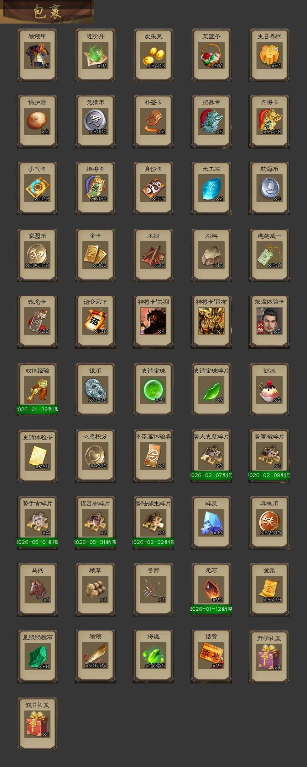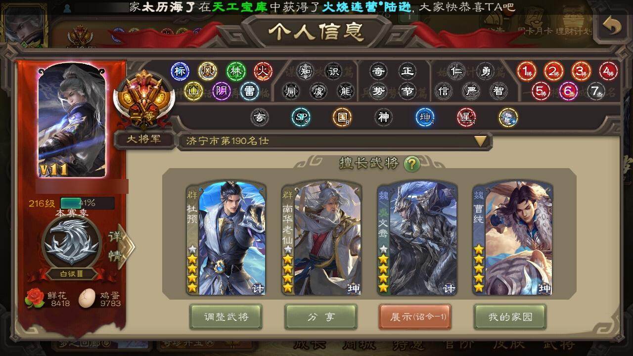 [15242158]【1028】官阶:大将军;vip等级:vip11;史诗武将数量:56;动态皮肤数量:35;武将总数:412;史诗宝珠数量:31;将魂数量:14346;神将:7;魏国史诗武将:27;蜀国史诗武将:8;吴国史诗武将:9;群史诗武将:20 神吕布神赵云神陆逊神刘备神甘宁神张辽神诸葛亮王粲谋曹操杨修王元姬马钧界钟会界于禁界曹真郝昭陈琳曹婴曹纯戏志才刘晔程昱谋夏侯氏谋赵云诸葛瞻张星彩王平沙摩柯界黄忠花鬘周处孙寒华骆统留赞界朱然界徐盛界步练师文鸯左慈张让张琪瑛星甘宁苏飞麹义南华老仙祢衡沮授界左慈界李儒公孙康杜预卑弥呼谋张角许攸星董卓兀突骨司马昭神吕蒙神周瑜sp关羽sp曹仁sp蔡文姬乐进曹昂诸葛诞朱灵文聘sp姜维张春华钟会曹冲郭淮满宠界王异界曹操界司马懿界夏侯惇界张辽界许褚界郭嘉李典曹真韩浩史涣陈群曹叡曹休钟繇司马朗王基李通郭皇后孙资刘放辛宪英界甄姬吕虔鲁芝蒯越蒯良界典韦界荀彧界徐晃杜畿界曹丕毌丘俭界邓艾张恭界曹植界曹彰界满宠界郭淮卞夫人界陈群蔡贞姬袁涣毛玠阮慧谋于禁胡班李昭焦伯司马伷谋郭嘉谋夏侯渊牛金界夏侯渊界曹仁臧霸董昭势陈到sp孙尚香关银屏夏侯霸马良关兴张苞廖化界马岱关平简雍刘封界法正界关兴张苞界刘备界关羽界张飞界赵云界马超sp徐庶吴懿周仓张松刘谌夏侯氏糜竺马忠孙乾李严黄皓吴苋秦宓界黄月英界诸葛亮赵统赵广严颜界伊籍界卧龙诸葛界庞统界孟获界祝融陈到界姜维界刘禅吕凯张翼杨仪界廖化邓芝界简雍陈震费祎糜夫人界周仓许靖向宠彭羕谋庞统界张嶷谋张飞诸葛果界魏延蒋琬费祎糜芳傅士仁甘夫人鲁肃孙茹凌操大乔小乔诸葛恪诸葛瑾孙鲁育程普韩当潘璋马忠虞翻朱然界周泰界甘宁界吕蒙界黄盖界周瑜界大乔界陆逊孙鲁班朱桓顾雍孙休朱治全琮步骘阚泽孙登岑昏徐氏薛综界孙权界孙尚香潘濬sp庞统陆绩孙亮严畯界孙坚吕岱周鲂周妃陆抗界孙策界张昭张纮许贡卫温诸葛直