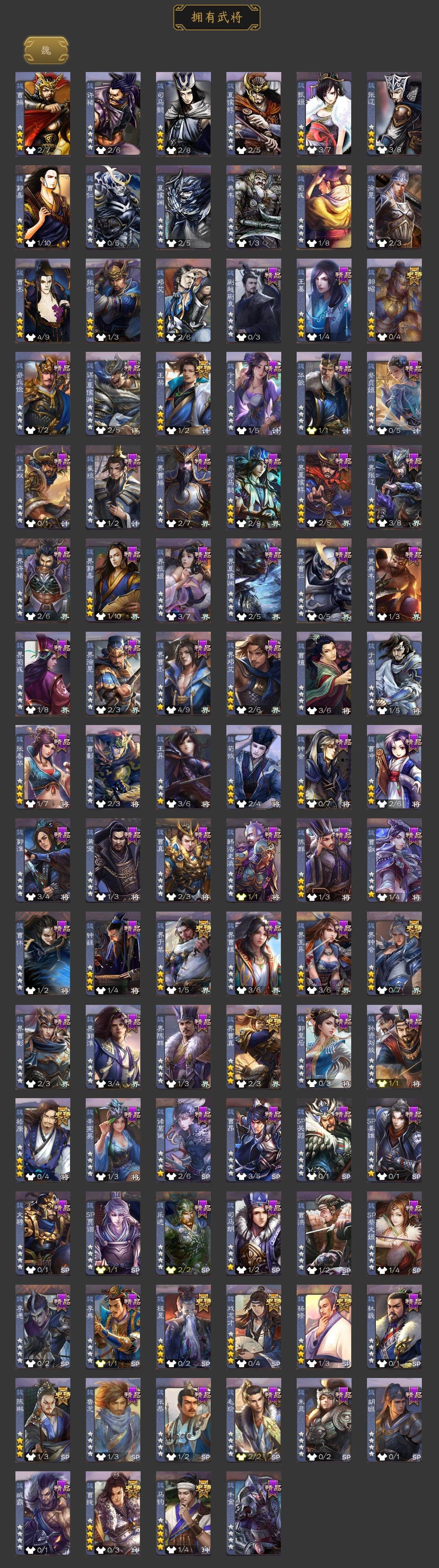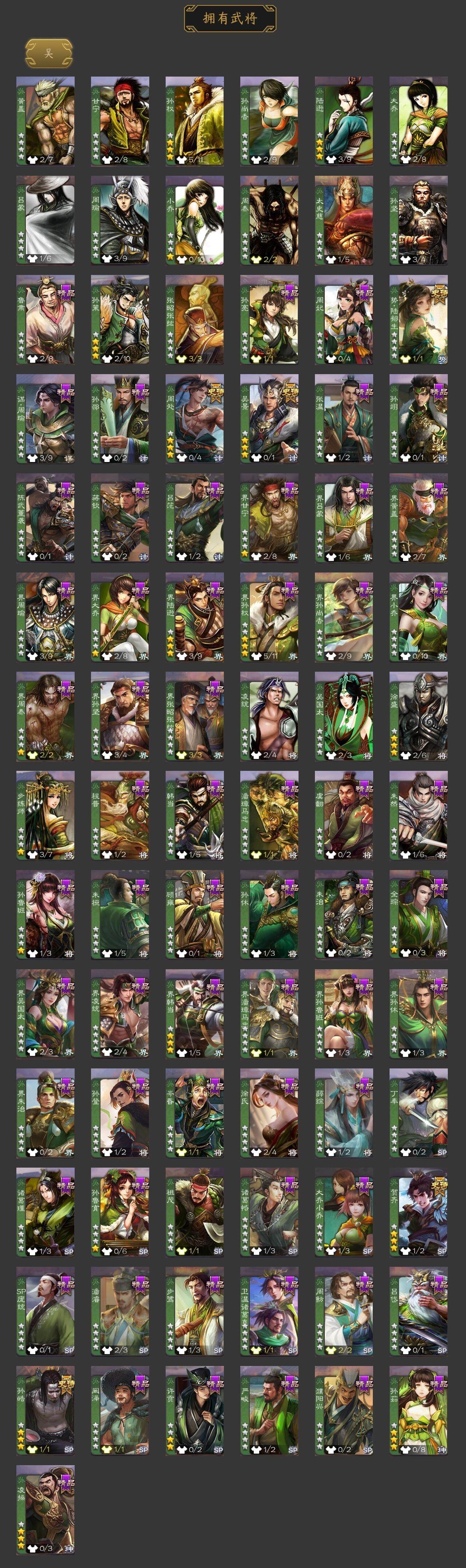 [15242196]【291】官阶:大将军;vip等级:vip10;史诗武将数量:46;动态皮肤数量:26;武将总数:371;史诗宝珠数量:0;将魂数量:524;神将:8;魏国史诗武将:20;蜀国史诗武将:10;吴国史诗武将:5;群史诗武将:12 神赵云神陆逊神刘备神张辽神荀彧神关羽神吕蒙神周瑜王粲杨修马钧界钟会界于禁界曹真嵇康郝昭陈琳曹纯戏志才马云騄谋马超周群赵襄张星彩王平沙摩柯谯周界黄忠董允周处吴景孙皓贺齐势陆郁生左慈张让陶谦苏飞司马徽麹义庞德公祢衡刘焉沮授公孙康卑弥呼神郭嘉-虎年清明动态神荀彧-虎年清明动态神周瑜-陵光引灵动态神曹操-玄天通冥动态神吕布-监兵噬魅动态鲍三娘-情定缘起星周不疑-龙年清明动态曹丕-龙年中秋动态sp蔡文姬-兔年冬日动态曹丕-猪年端午动态邓艾-神兵天降动态界曹丕-猪年端午动态界邓艾-神兵天降动态王异-轻燕掠影动态钟繇-稳定关右动态界王异-轻燕掠影动态诸葛亮-龙年限定动态费祎-安民护祚(动态)马超-牛年春节动态黄月英-鼠年春节动态界马超-牛年春节动态界黄月英-鼠年春节动态夏侯氏-明良千古动态赵襄-猪年春节动态周瑜-免年清明动态孙权-猪年端午动态孙权-牛年七夕动态陆逊-猪年圣诞动态大乔-猪年七夕动态孙策-猪年七夕动态界大乔-猪年七夕动态界陆逊-猪年圣诞动态界孙权-猪年端午动态界孙权-牛年七夕动态步练师-牛年七夕动态貂蝉-鼠年七夕动态貂蝉-绝世倾城动态吕布-鼠年七夕动态界吕布-鼠年七夕动态界貂蝉-鼠年七夕动态界貂蝉-绝世倾城动态sp赵云-单骑救主动态刘焉-雄踞益州动态兀突骨-鼠年春节动态sp赵云-威名尽显动态