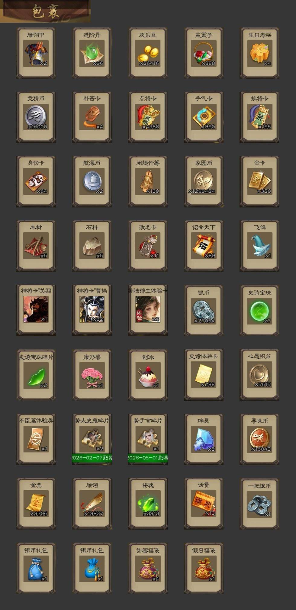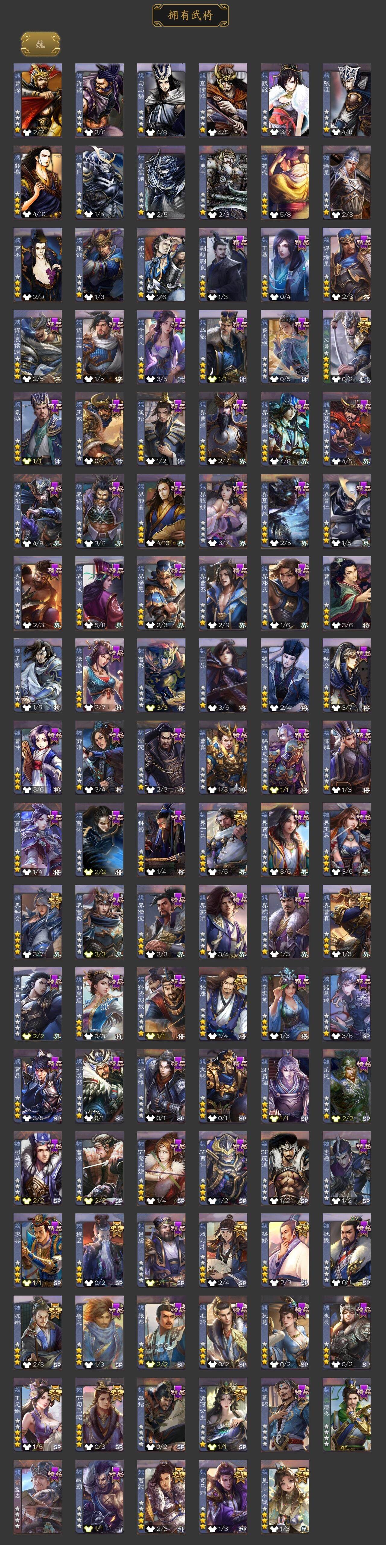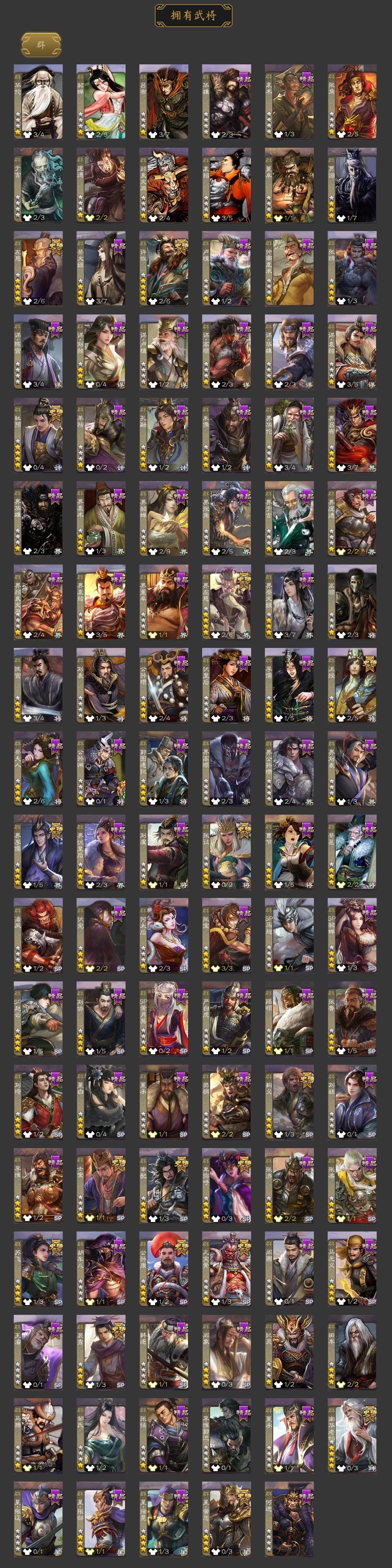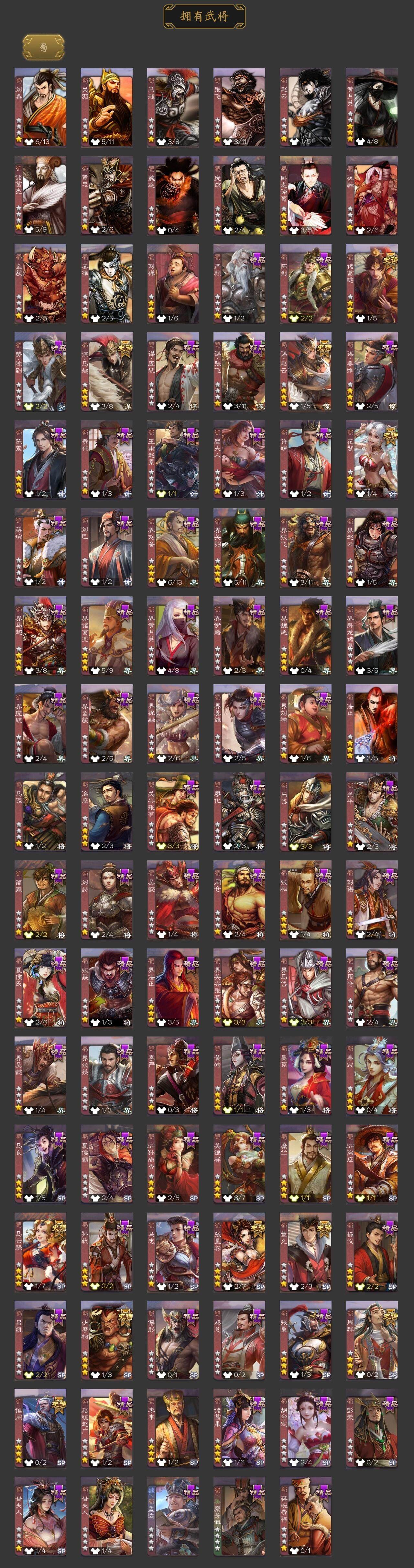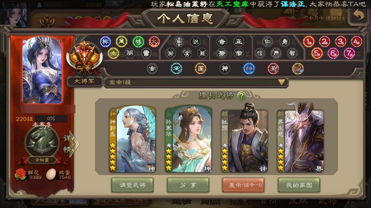 [15242348]【329】官阶:大将军;vip等级:vip10;史诗武将数量:54;动态皮肤数量:46;武将总数:418;史诗宝珠数量:7;将魂数量:3913;神将:8;魏国史诗武将:32;蜀国史诗武将:10;吴国史诗武将:7;群史诗武将:18 神吕布神赵云神陆逊神张辽神郭嘉神吕蒙神周瑜神诸葛亮sp司马昭星周不疑杨修文鸯王元姬司马师界钟会界于禁界曹真嵇康陈琳曹纯戏志才清河公主马云騄谋赵云谋马超诸葛瞻周群张星彩沙摩柯谯周花鬘董允孙寒华骆统留赞界朱然界徐盛界步练师贺齐裴秀左慈张让星黄忠苏飞审配麹义南华老仙沮授界左慈界李儒公孙康杜预卑弥呼张绣李傕阎象许攸神郭嘉-虎年清明动态神诸葛亮-观星唤雨神曹操-天下归心神吕布-冠绝天下动态神赵云-战龙在野动态张昌蒲-龙年端午(动态)钟会-潜蛟觊天动态星周不疑-龙年清明动态sp蔡文姬-兔年冬日动态许褚-兔年端午动态荀彧-驱虎吞狼动态张春华-雪中舞刃动态钟会-谋谟之勋动态界曹植-鼠年端午动态界钟会-谋谟之勋动态戏志才-举棋若定动态曹纯-虎年春节动态曹纯-长坂败备动态王元姬-鼠年冬至动态羊徽瑜-牛年中秋动态清河公主-魅影萦心动态花鬘-依心缱绻动态刘备-龙御天下动态卧龙诸葛-龙跃凤鸣动态关索-依心缱绻动态刘备-明良千古动态关羽-明良千古动态马超-牛年春节动态黄月英-木牛流马动态诸葛亮-明良千古动态界刘备-明良千古动态界马超-牛年春节动态界诸葛亮-明良千古动态界黄月英-木牛流马动态关银屏-兔年春节动态关索-虎年七夕动态胡金定-明良千古动态诸葛果-蛇年限定动态周处-义除三害动态黄盖-兔年端午动态孙权-永开吴祚动态周瑜-兔年七夕动态孙策-虎踞江东动态孙权-吴王六剑动态孙尚香-星流霆击动态界孙权-吴王六剑动态界孙尚香-星流霆击动态徐盛-破军杀将动态孙茹-烟水悠悠动态孙寒华-蛇年限定动态灵雎-霜刃绚练动态袁绍-声震寰宇动态吕布-傲睨万物动态张角-黄天当立