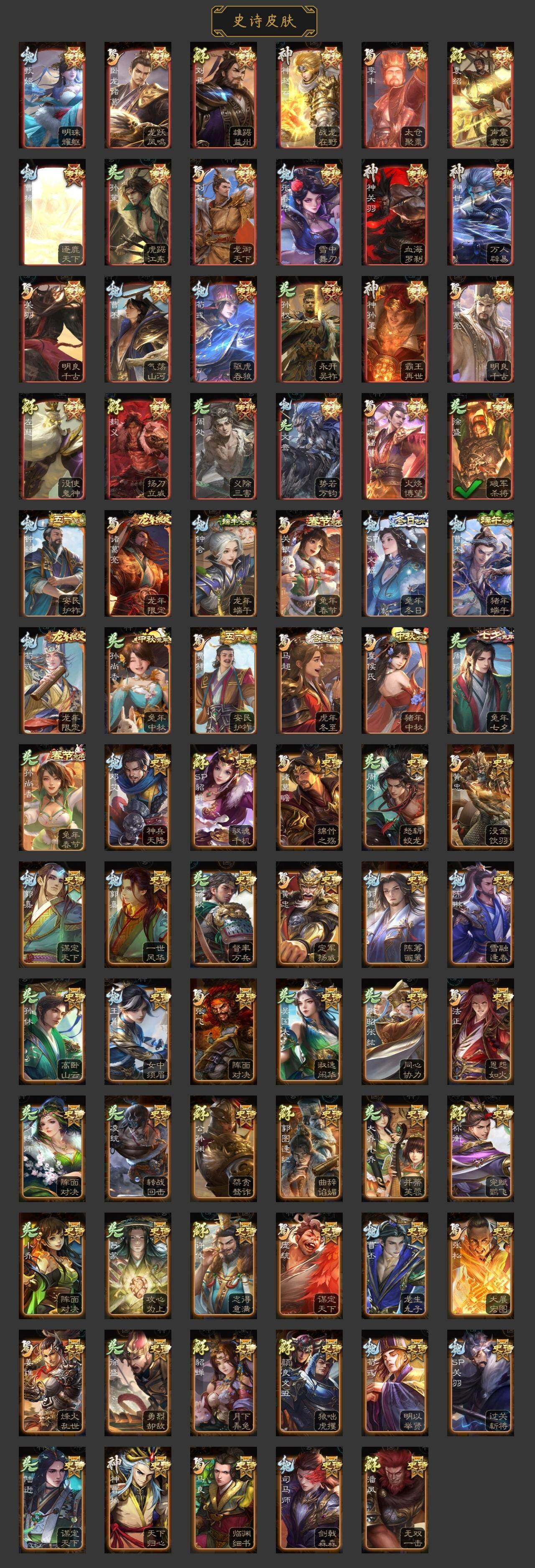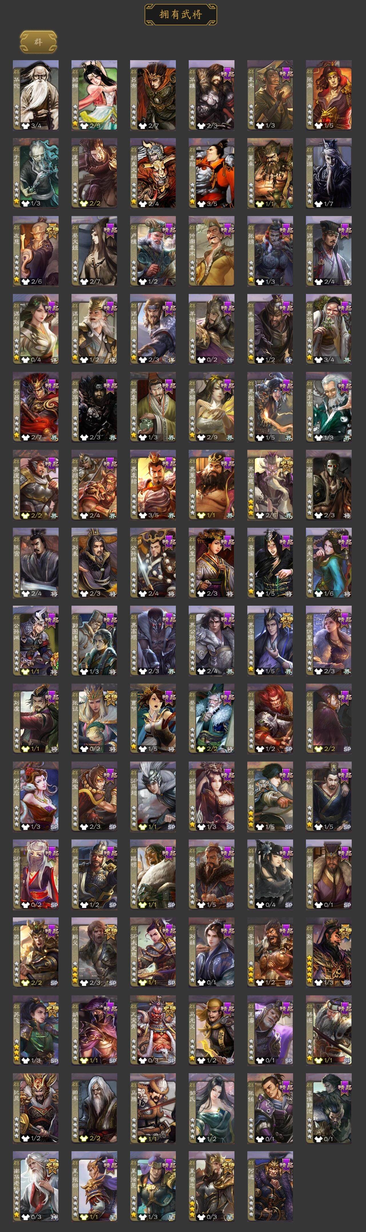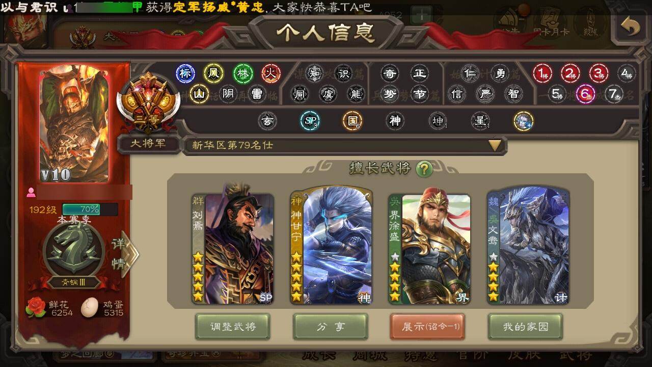 [15242406]【482】官阶:大将军;vip等级:vip10;史诗武将数量:36;动态皮肤数量:33;武将总数:354;史诗宝珠数量:0;将魂数量:767;神将:6;魏国史诗武将:20;蜀国史诗武将:10;吴国史诗武将:3;群史诗武将:11 神吕布神赵云神甘宁神孙策神华佗神周瑜星周不疑文鸯嵇康曹纯戏志才刘晔谋曹丕谋诸葛亮谋夏侯氏谋马超诸葛瞻周群张星彩沙摩柯傅佥花鬘董允周处界徐盛贺齐左慈张让星黄忠苏飞麹义南华老仙刘焉界左慈界李儒张绣李傕神孙策-霸王再世动态神甘宁-万人辟易动态神关羽-血海罗刹动态神曹操-天下归心神赵云-战龙在野动态钟会-龙年端午(动态)钟繇-安民护祚(动态)曹丕-气荡山河(动态)甄姬-明珠耀躯(动态)sp蔡文姬-兔年冬日动态荀彧-驱虎吞狼动态曹丕-猪年端午动态邓艾-神兵天降动态界曹丕-猪年端午动态界邓艾-神兵天降动态张春华-雪中舞刃动态刘备-龙御天下动态诸葛亮-龙年限定动态卧龙诸葛-龙跃凤鸣动态费祎-安民护祚(动态)关羽-明良千古动态马超-虎年冬至动态诸葛亮-明良千古动态诸葛瞻-绵竹之殇动态界诸葛亮-明良千古动态夏侯氏-猪年中秋动态关银屏-兔年春节动态李丰-太仓聚粟动态卧龙诸葛-火烧博望动态周处-义除三害动态孙权-永开吴祚动态周瑜-兔年七夕动态孙策-虎踞江东动态孙尚香-兔年春节动态徐盛-破军杀将动态文鸯-势若万钧动态袁绍-声震寰宇动态麹义-扬刀立威动态左慈-役使鬼神动态sp貂蝉-驭魂千机动态刘焉-雄踞益州动态