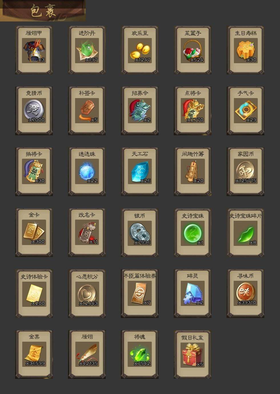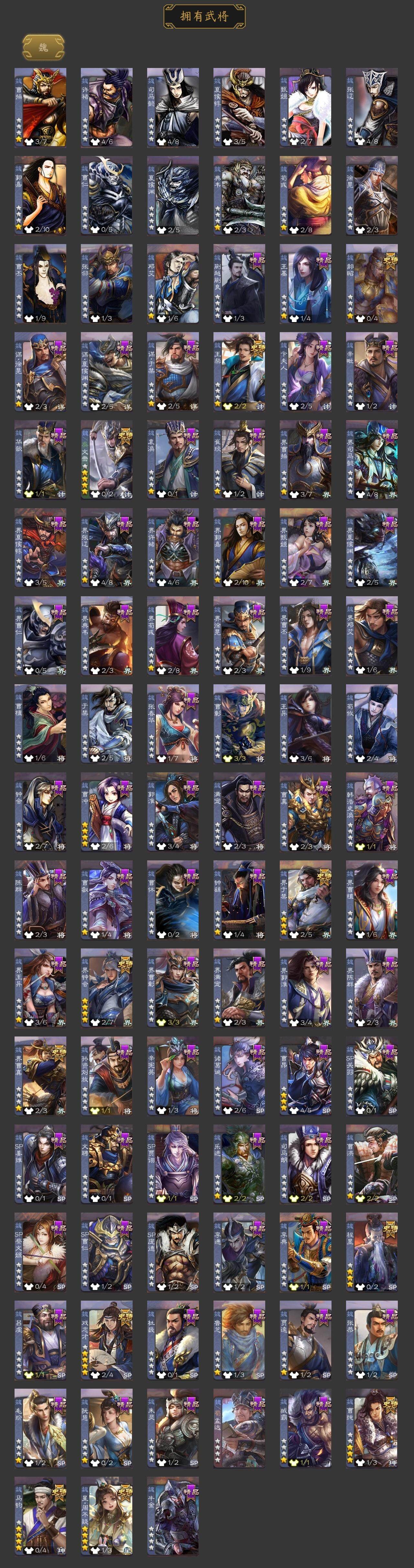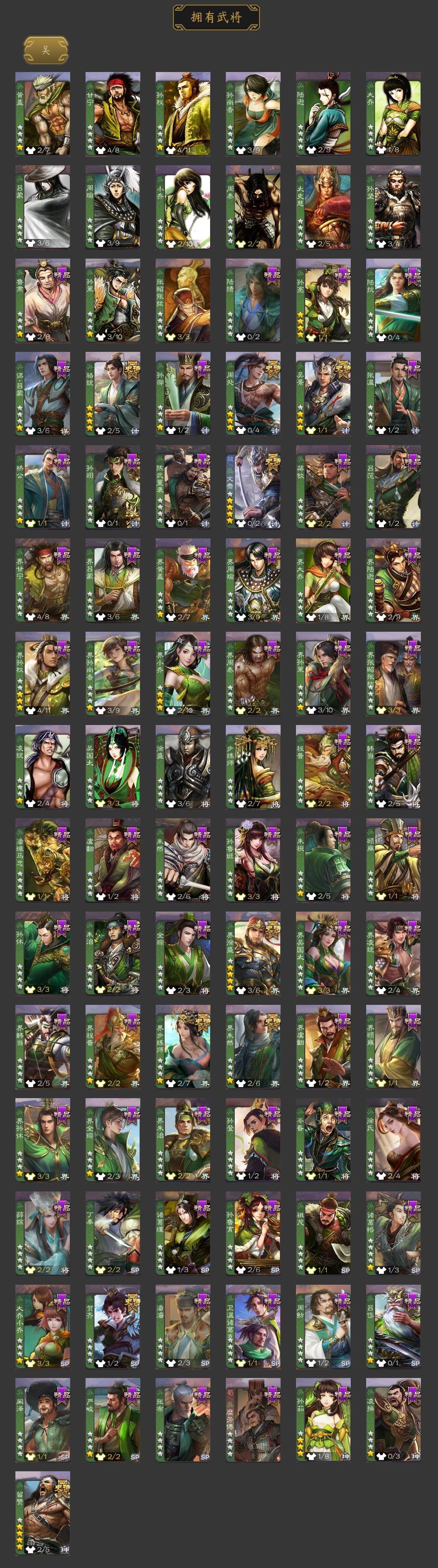 [15242421]【491】官阶:大将军;vip等级:vip11;史诗武将数量:50;动态皮肤数量:36;武将总数:394;史诗宝珠数量:1;将魂数量:7542;神将:9;魏国史诗武将:22;蜀国史诗武将:9;吴国史诗武将:8;群史诗武将:17 神赵云神甘宁神张辽神郭嘉神太史慈神孙策神吕蒙神周瑜神诸葛亮星周不疑王粲文鸯马钧界钟会界于禁界曹真郝昭曹纯戏志才马云騄谋夏侯氏谋赵云谋马超赵襄王平沙摩柯谯周界黄忠周处吴景骆统留赞界朱然界徐盛界步练师贺齐裴秀界沮授左慈张让星黄忠陶谦麹义南华老仙祢衡沮授界左慈界李儒公孙康卑弥呼张绣李傕许攸神郭嘉-虎年清明动态神太史慈-勇撼日月动态神孙策-霸王再世动态神甘宁-万人辟易动态星周不疑-才广志宏动态许褚-兔年端午动态荀彧-驱虎吞狼动态王粲-笔翰如流动态钟会-谋谟之勋动态界钟会-谋谟之勋动态戏志才-举棋若定动态曹纯-虎年春节动态羊徽瑜-牛年中秋动态司马师-牛年中秋动态星徐晃-斧引霹雳动态关羽-啸风从龙动态关羽-明良千古动态马超-牛年春节动态赵云-牛年春节动态诸葛亮-明良千古动态界关羽-啸风从龙动态界赵云-牛年春节动态界马超-牛年春节动态界诸葛亮-明良千古动态关银屏-虎年端午动态关索-虎年七夕动态鲍三娘-柳娇桃艳动态李丰-太仓聚粟动态胡金定-明良千古动态孙策-虎踞江东动态周瑜-免年清明动态孙权-牛年七夕动态小乔-猪年大雪动态界孙权-牛年七夕动态界小乔-猪年大雪动态凌统-长风破浪动态孙鲁班-牛年端午动态界凌统-长风破浪动态徐氏-琪花瑶草动态孙鲁育-猪年春节动态孙鲁育-牛年端午动态孙茹-烟水悠悠动态刘赞-灵魂歌王动态吕布-傲睨万物动态左慈-役使鬼神动态张琪瑛-虎年冬至动态祢衡-击鼓骂曹动态