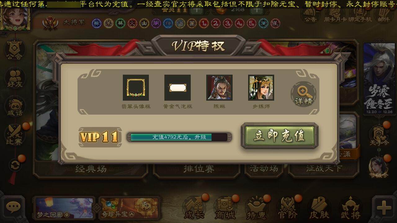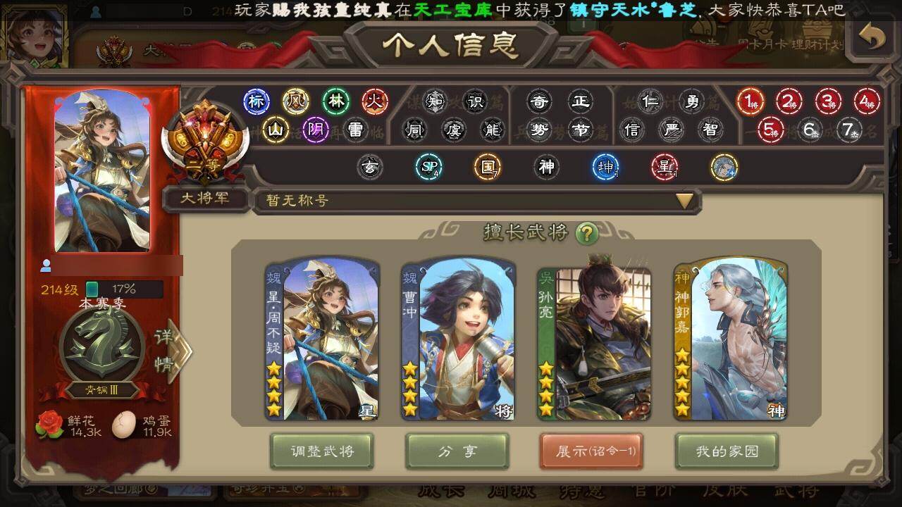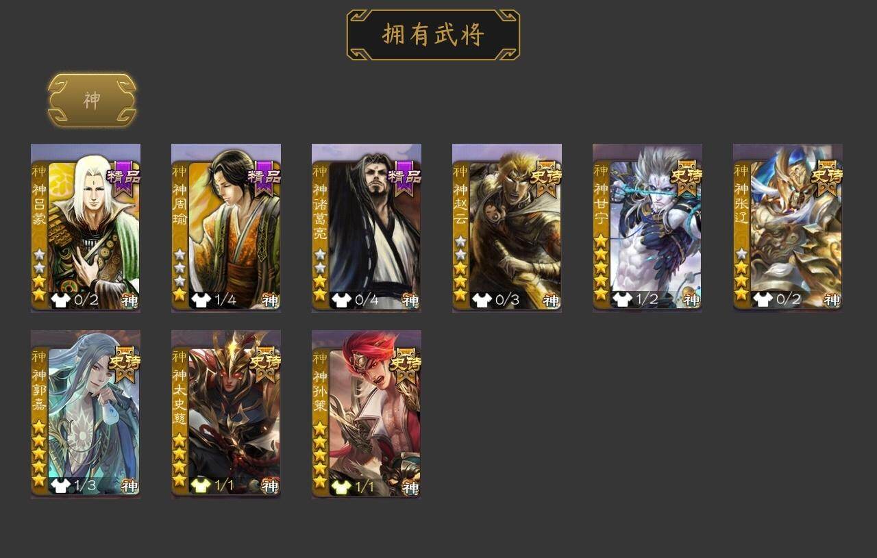 [15242421]【491】官阶:大将军;vip等级:vip11;史诗武将数量:50;动态皮肤数量:36;武将总数:394;史诗宝珠数量:1;将魂数量:7542;神将:9;魏国史诗武将:22;蜀国史诗武将:9;吴国史诗武将:8;群史诗武将:17 神赵云神甘宁神张辽神郭嘉神太史慈神孙策神吕蒙神周瑜神诸葛亮星周不疑王粲文鸯马钧界钟会界于禁界曹真郝昭曹纯戏志才马云騄谋夏侯氏谋赵云谋马超赵襄王平沙摩柯谯周界黄忠周处吴景骆统留赞界朱然界徐盛界步练师贺齐裴秀界沮授左慈张让星黄忠陶谦麹义南华老仙祢衡沮授界左慈界李儒公孙康卑弥呼张绣李傕许攸神郭嘉-虎年清明动态神太史慈-勇撼日月动态神孙策-霸王再世动态神甘宁-万人辟易动态星周不疑-才广志宏动态许褚-兔年端午动态荀彧-驱虎吞狼动态王粲-笔翰如流动态钟会-谋谟之勋动态界钟会-谋谟之勋动态戏志才-举棋若定动态曹纯-虎年春节动态羊徽瑜-牛年中秋动态司马师-牛年中秋动态星徐晃-斧引霹雳动态关羽-啸风从龙动态关羽-明良千古动态马超-牛年春节动态赵云-牛年春节动态诸葛亮-明良千古动态界关羽-啸风从龙动态界赵云-牛年春节动态界马超-牛年春节动态界诸葛亮-明良千古动态关银屏-虎年端午动态关索-虎年七夕动态鲍三娘-柳娇桃艳动态李丰-太仓聚粟动态胡金定-明良千古动态孙策-虎踞江东动态周瑜-免年清明动态孙权-牛年七夕动态小乔-猪年大雪动态界孙权-牛年七夕动态界小乔-猪年大雪动态凌统-长风破浪动态孙鲁班-牛年端午动态界凌统-长风破浪动态徐氏-琪花瑶草动态孙鲁育-猪年春节动态孙鲁育-牛年端午动态孙茹-烟水悠悠动态刘赞-灵魂歌王动态吕布-傲睨万物动态左慈-役使鬼神动态张琪瑛-虎年冬至动态祢衡-击鼓骂曹动态