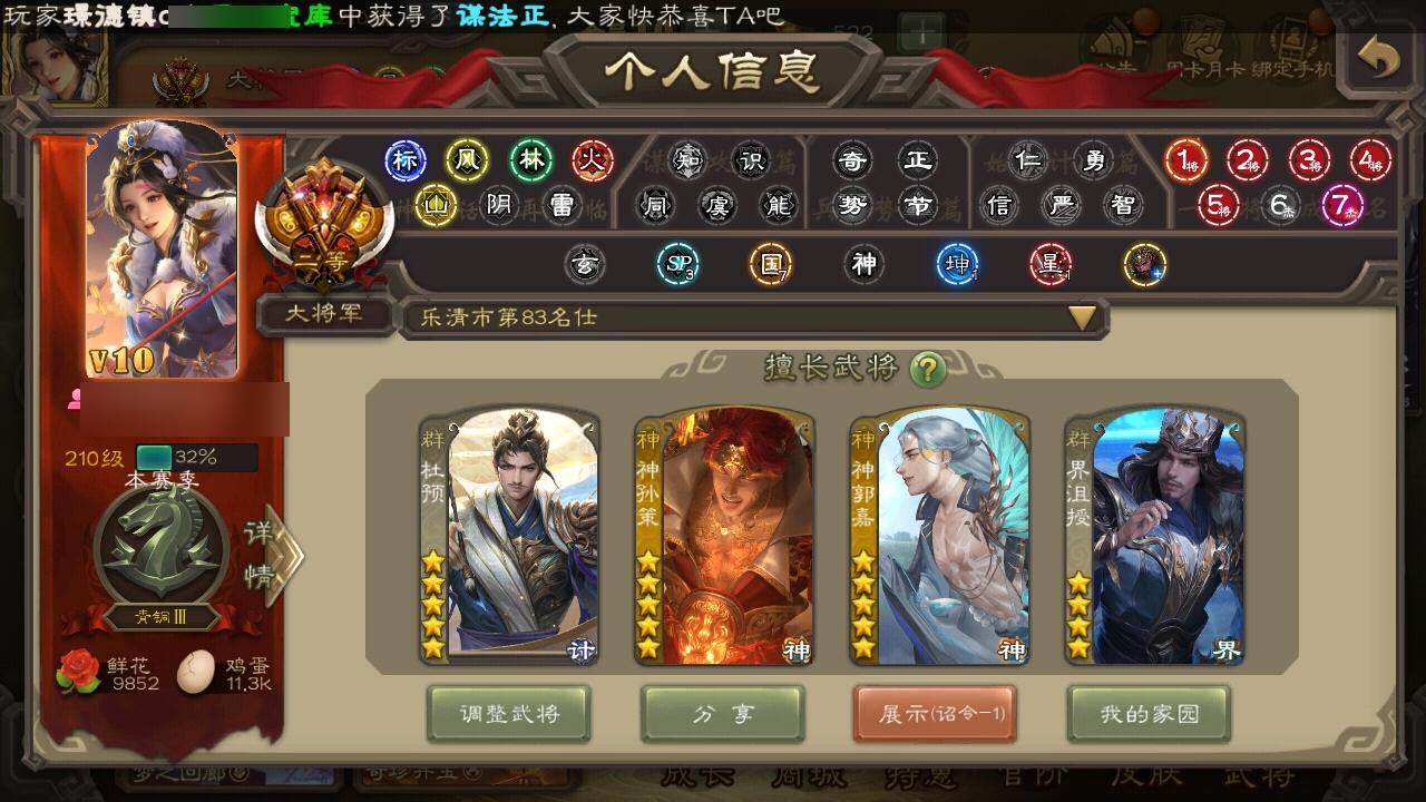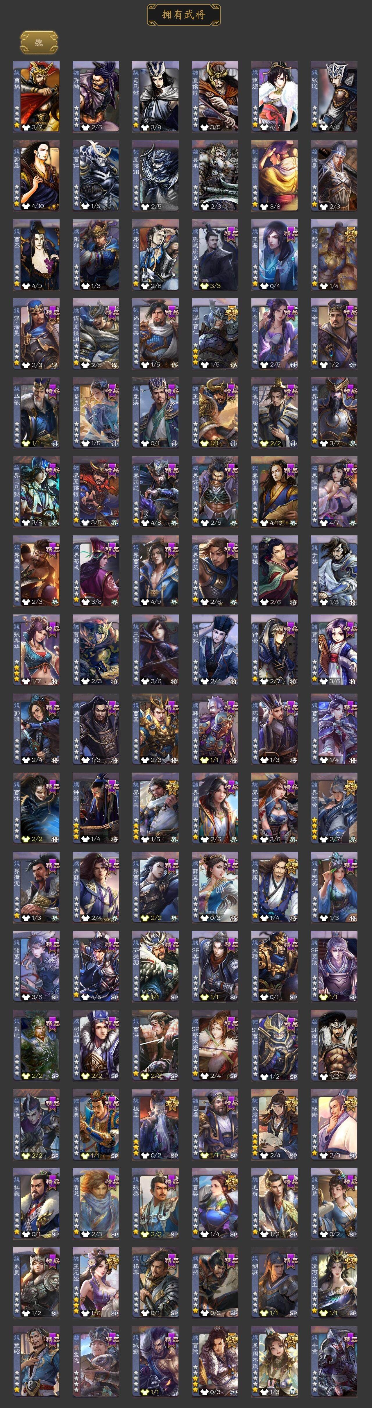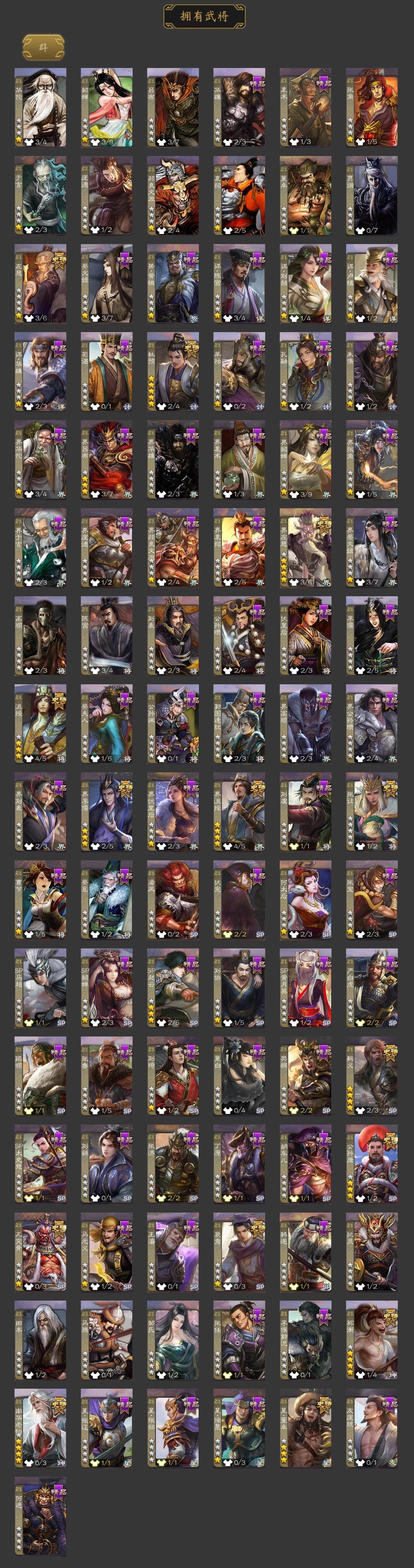 [15242440]【623】官阶:大将军;vip等级:vip10;史诗武将数量:47;动态皮肤数量:42;武将总数:376;史诗宝珠数量:13;将魂数量:1157;神将:7;魏国史诗武将:25;蜀国史诗武将:10;吴国史诗武将:6;群史诗武将:13 神赵云神张辽神郭嘉神孙策神吕蒙神周瑜神诸葛亮星周不疑谋曹仁杨修王元姬界钟会界于禁嵇康郝昭曹婴曹纯戏志才清河公主关索马云騄谋赵云谋马超赵襄张星彩沙摩柯谯周花鬘谋关羽吴景孙皓留赞界朱然界徐盛界步练师裴秀界沮授左慈张让麹义南华老仙祢衡沮授界左慈界李儒公孙康杜预星董卓神郭嘉-虎年清明动态神孙策-霸王再世动态神诸葛亮-观星唤雨神诸葛亮-剑祭通天动态神曹操-天下归心曹丕-气荡山河(动态)星周不疑-龙年清明动态甄姬-明珠耀躯(动态)sp蔡文姬-兔年冬日动态曹丕-牛年清明动态邓艾-神兵天降动态界曹丕-牛年清明动态界邓艾-神兵天降动态钟会-谋谟之勋动态界钟会-谋谟之勋动态戏志才-举棋若定动态曹婴-兔年春节动态朱灵-以战破氐动态清河公主-魅影萦心动态刘备-龙御天下动态关索-依心缱绻动态刘备-明良千古动态关羽-明良千古动态诸葛亮-明良千古动态界刘备-明良千古动态界诸葛亮-明良千古动态关银屏-兔年春节动态张星彩-猪年中秋动态鲍三娘-柳娇桃艳动态李丰-太仓聚粟动态卧龙诸葛-火烧博望动态周处-义除三害动态吕蒙-剑起惊澜动态孙权-永开吴祚动态孙策-虎踞江东动态孙寒华-莲华熠熠动态孙尚香-星流霆击动态界孙尚香-星流霆击动态徐盛-破军杀将动态徐氏-琪花瑶草动态孙鲁育-猪年春节动态刘赞-灵魂歌王动态貂蝉-舞惑群心动态杜预-弼朝博虬动态麹义-扬刀立威动态杜预-龙吟破竹动态谋刘赪-明良千古动态李儒-鸠杀少帝动态界李儒-鸠杀少帝动态sp貂蝉-驭魂千机动态张琪瑛-虎年冬至动态星甘宁-肝胆相照动态张鲁-安民护祚动态左慈-蛇年限定动态