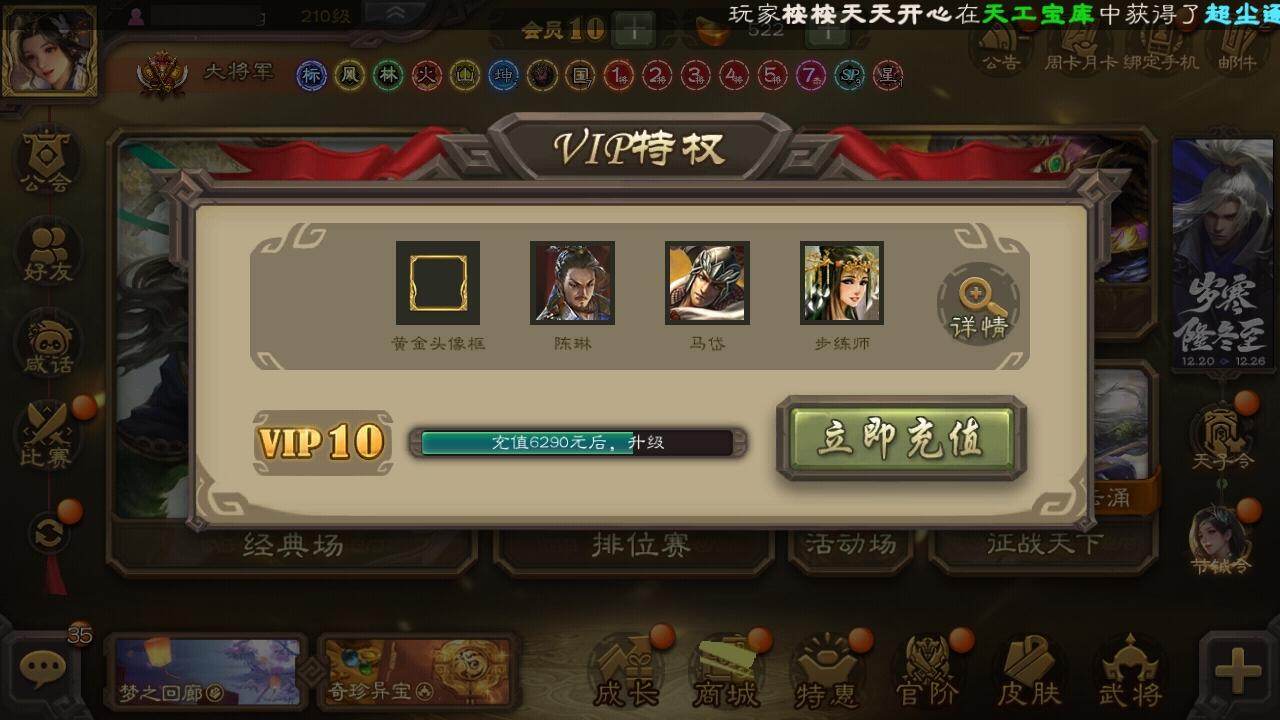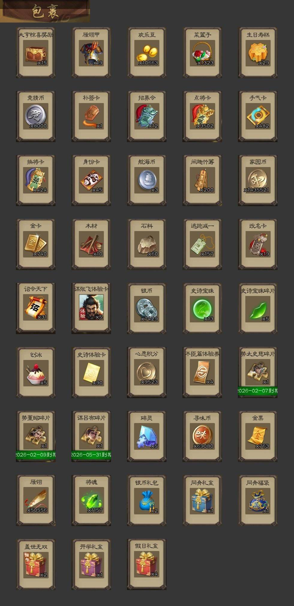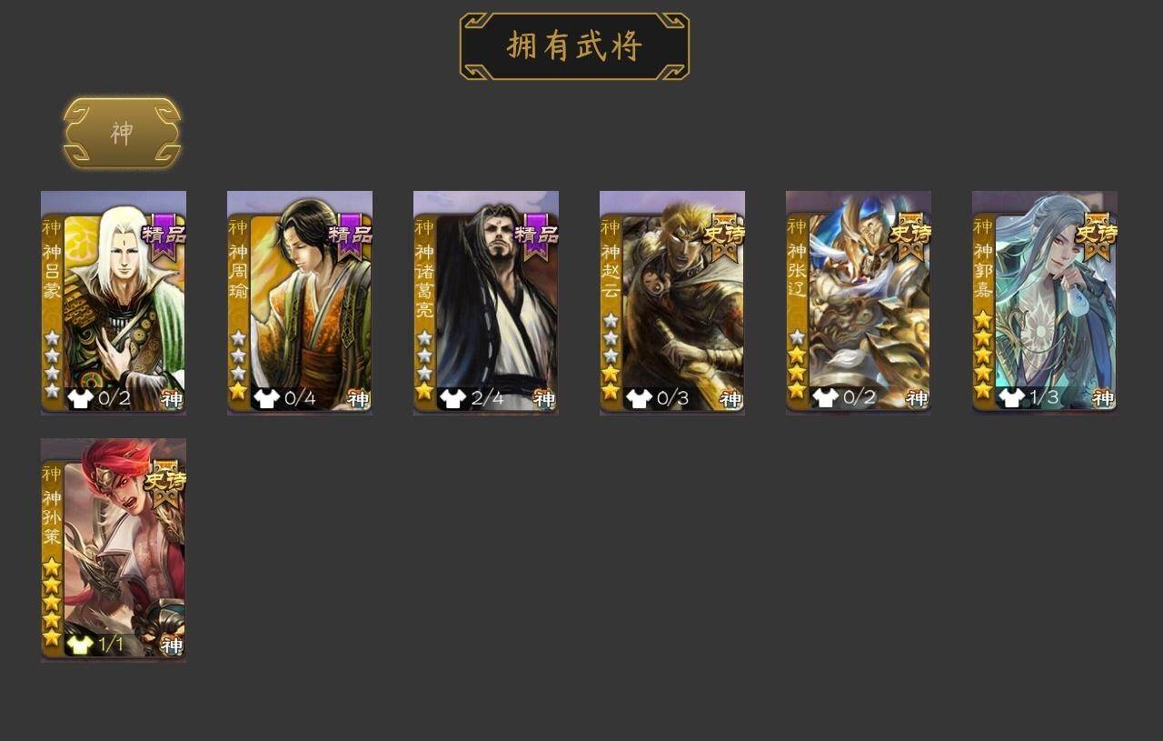[15242440]【623】官阶:大将军;vip等级:vip10;史诗武将数量:47;动态皮肤数量:42;武将总数:376;史诗宝珠数量:13;将魂数量:1157;神将:7;魏国史诗武将:25;蜀国史诗武将:10;吴国史诗武将:6;群史诗武将:13 神赵云神张辽神郭嘉神孙策神吕蒙神周瑜神诸葛亮星周不疑谋曹仁杨修王元姬界钟会界于禁嵇康郝昭曹婴曹纯戏志才清河公主关索马云騄谋赵云谋马超赵襄张星彩沙摩柯谯周花鬘谋关羽吴景孙皓留赞界朱然界徐盛界步练师裴秀界沮授左慈张让麹义南华老仙祢衡沮授界左慈界李儒公孙康杜预星董卓神郭嘉-虎年清明动态神孙策-霸王再世动态神诸葛亮-观星唤雨神诸葛亮-剑祭通天动态神曹操-天下归心曹丕-气荡山河(动态)星周不疑-龙年清明动态甄姬-明珠耀躯(动态)sp蔡文姬-兔年冬日动态曹丕-牛年清明动态邓艾-神兵天降动态界曹丕-牛年清明动态界邓艾-神兵天降动态钟会-谋谟之勋动态界钟会-谋谟之勋动态戏志才-举棋若定动态曹婴-兔年春节动态朱灵-以战破氐动态清河公主-魅影萦心动态刘备-龙御天下动态关索-依心缱绻动态刘备-明良千古动态关羽-明良千古动态诸葛亮-明良千古动态界刘备-明良千古动态界诸葛亮-明良千古动态关银屏-兔年春节动态张星彩-猪年中秋动态鲍三娘-柳娇桃艳动态李丰-太仓聚粟动态卧龙诸葛-火烧博望动态周处-义除三害动态吕蒙-剑起惊澜动态孙权-永开吴祚动态孙策-虎踞江东动态孙寒华-莲华熠熠动态孙尚香-星流霆击动态界孙尚香-星流霆击动态徐盛-破军杀将动态徐氏-琪花瑶草动态孙鲁育-猪年春节动态刘赞-灵魂歌王动态貂蝉-舞惑群心动态杜预-弼朝博虬动态麹义-扬刀立威动态杜预-龙吟破竹动态谋刘赪-明良千古动态李儒-鸠杀少帝动态界李儒-鸠杀少帝动态sp貂蝉-驭魂千机动态张琪瑛-虎年冬至动态星甘宁-肝胆相照动态张鲁-安民护祚动态左慈-蛇年限定动态