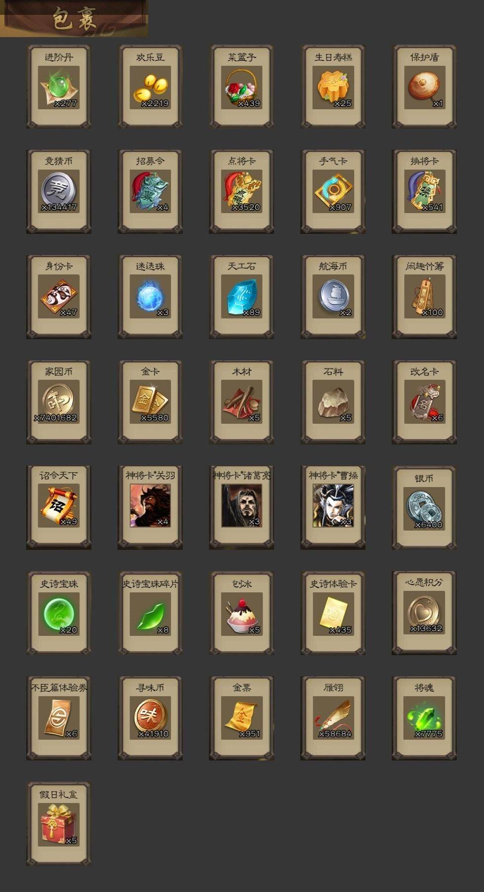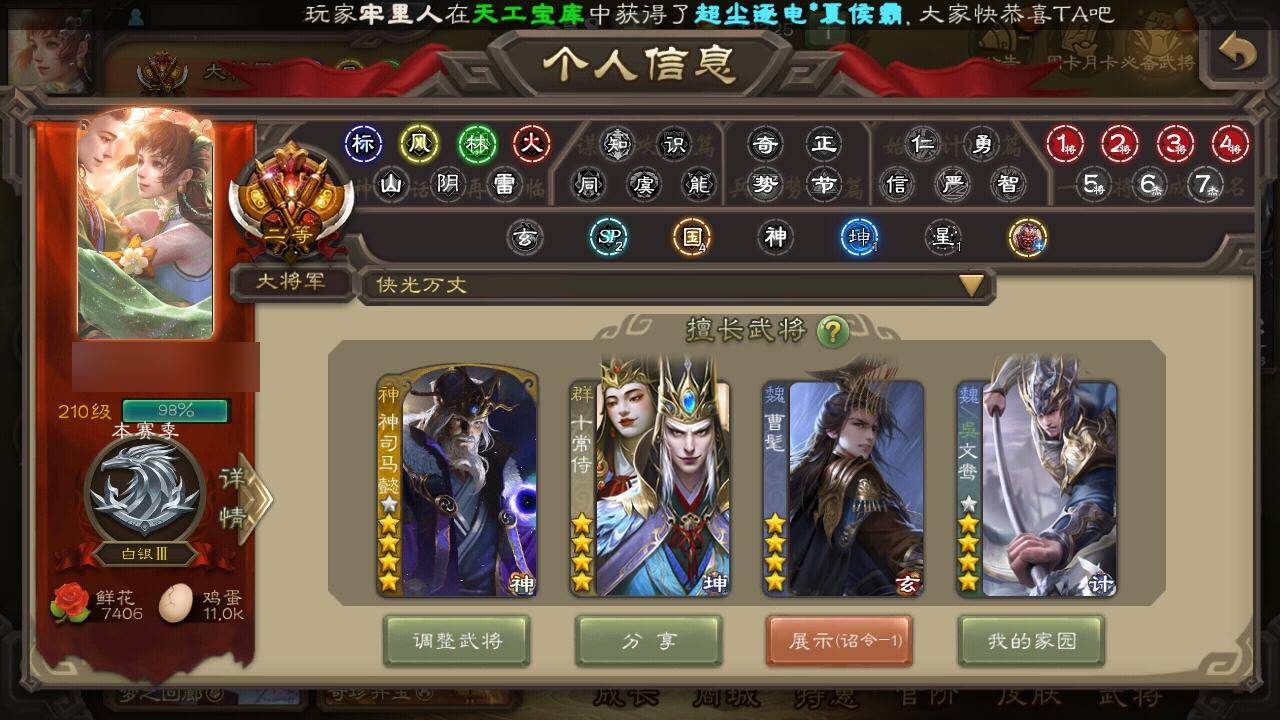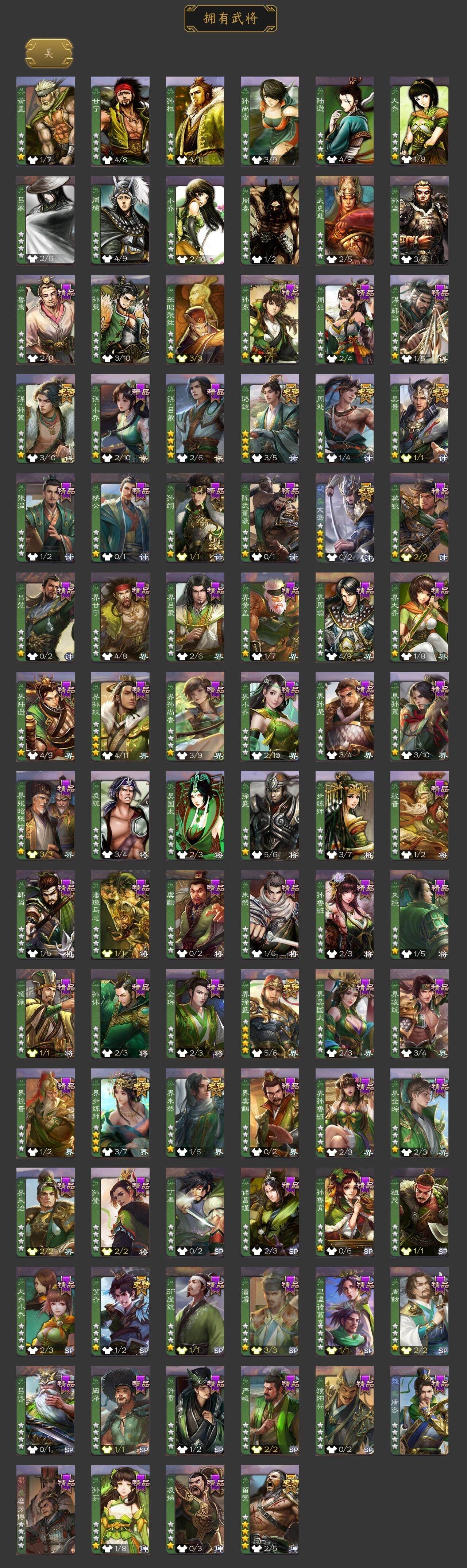 [15242591]【555】官阶:大将军;vip等级:vip8;史诗武将数量:53;动态皮肤数量:37;武将总数:388;史诗宝珠数量:20;将魂数量:7775;神将:5;魏国史诗武将:26;蜀国史诗武将:8;吴国史诗武将:9;群史诗武将:19 神吕布神司马懿神陆逊神华佗神鲁肃曹髦星周不疑王粲文鸯王元姬王凌魏-司马昭马钧界钟会界曹真曹婴曹纯戏志才蒋干谋赵云谋马超诸葛瞻沙摩柯谯周界黄忠花鬘董允谋孙策周处吴景骆统留赞界朱然界徐盛界步练师贺齐谋郭嘉十常侍裴秀张让张琪瑛星甘宁苏飞审配沮授界左慈公孙康陈登卑弥呼鲍信谋张角李傕阎象许攸星董卓神张辽-散敌擒孙神诸葛亮-观星唤雨神曹操-天下归心神司马懿-鉴往知来动态星周不疑-才广志宏动态甄姬-明珠耀躯(动态)曹丕-龙年中秋动态sp蔡文姬-兔年冬日动态司马懿-牛年立冬动态邓艾-神兵天降动态界司马懿-牛年立冬动态曹昂-竭战麟伤动态戏志才-举棋若定动态曹婴-兔年春节动态朱灵-以战破氐动态司马昭-昭威淮南(动态)张辽-龙生九子(动态)星徐晃-斧引霹雳动态花鬘-依心缱绻动态诸葛亮-龙年限定动态刘备-明良千古动态马超-牛年春节动态张飞-据水断桥动态黄月英-明良千古动态诸葛亮-明良千古动态诸葛瞻-绵竹之殇动态界刘备-明良千古动态界张飞-据水断桥动态界诸葛亮-明良千古动态界黄月英-明良千古动态诸葛果-蛇年限定动态孙茹-龙年七夕动态周处-义除三害动态陆逊-龙年七夕动态孙权-永开吴祚动态孙策-虎踞江东动态周瑜-免年清明动态孙尚香-星流霆击动态周妃-笼中箜响动态界孙尚香-星流霆击动态徐盛-破军杀将动态刘赞-灵魂歌王动态孙寒华-蛇年限定动态高顺-每战必克动态吕布-傲睨万物动态张角-黄天当立动态许攸-盛气凌人动态张宝-苍天已死动态苏飞-肝胆相照动态星甘宁-肝胆相照动态左慈-蛇年限定动态