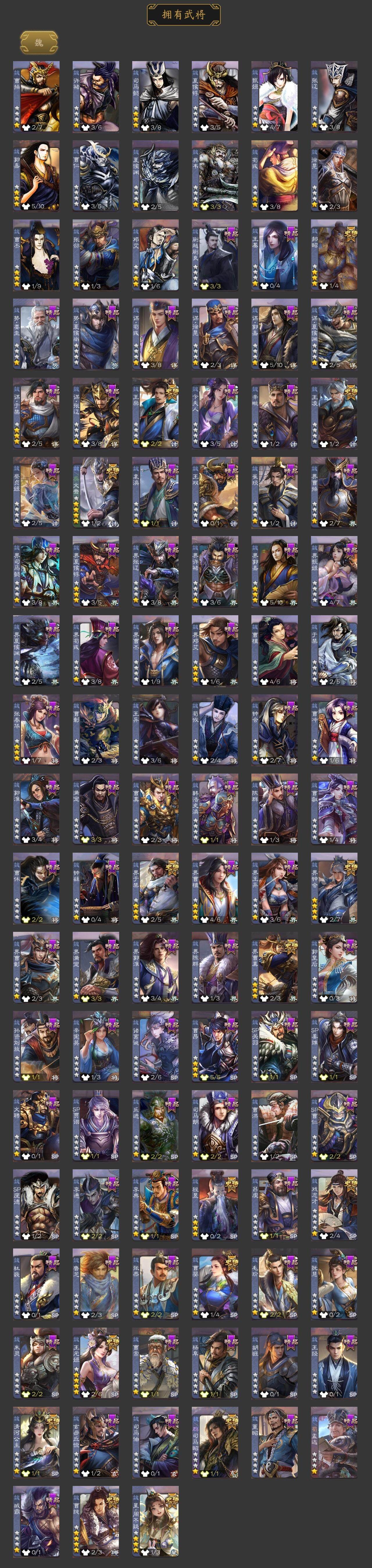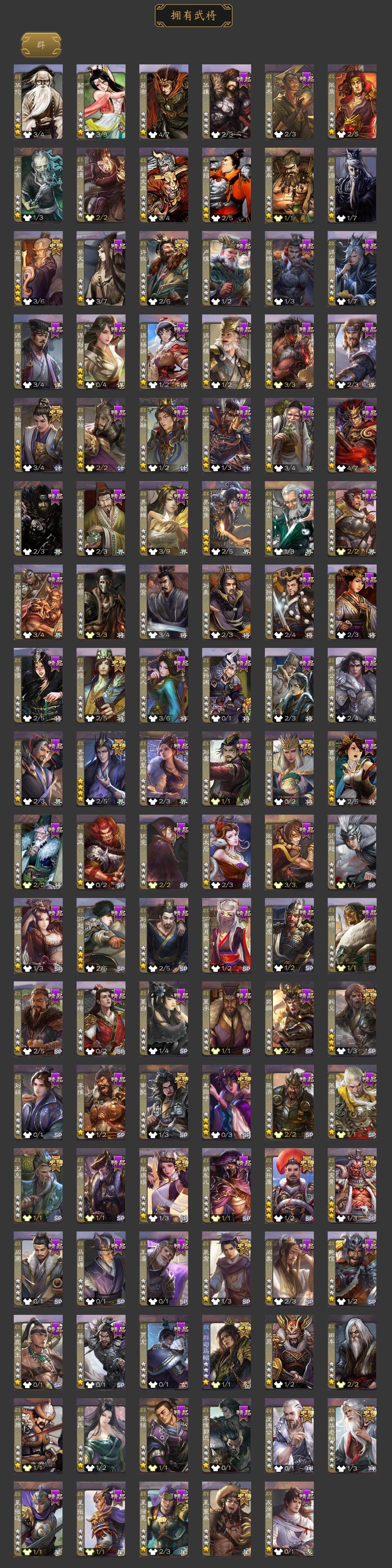 [15242670]【471】官阶:大将军;vip等级:vip10;史诗武将数量:57;动态皮肤数量:47;武将总数:408;史诗宝珠数量:24;将魂数量:2281;神将:6;魏国史诗武将:33;蜀国史诗武将:11;吴国史诗武将:10;群史诗武将:24 神吕布神赵云神陆逊神孙策神吕蒙神周瑜星周不疑王粲文鸯王元姬王凌魏-司马昭界钟会界于禁界曹真郝昭曹婴曹纯戏志才清河公主谋诸葛亮谋夏侯氏谋赵云谋马超诸葛瞻王平沙摩柯谯周界黄忠花鬘董允周处骆统留赞界朱然界徐盛界步练师贺齐谋孙权势陆郁生势太史慈谋郭嘉谋黄月英谋荀彧裴秀左慈张让张琪瑛王允审配麹义庞德公南华老仙沮授界李儒公孙康杜预卑弥呼鲍信张绣李傕阎象许攸友徐庶星董卓神鲁肃-九州为局神孙策-霸王再世动态神张辽-散敌擒孙神周瑜-波澜不惊神陆逊-绽焰摧枯动态神曹操-天下归心神赵云-神龙天降神司马懿-鉴往知来动态星周不疑-才广志宏动态曹植-龙年中秋动态sp蔡文姬-兔年冬日动态甄姬-牛年清明动态王粲-笔翰如流动态界甄姬-牛年清明动态曹昂-竭战麟伤动态戏志才-举棋若定动态曹婴-兔年春节动态朱灵-以战破氐动态曹纯-虎年春节动态曹纯-长坂败备动态王元姬-鼠年冬至动态司马昭-昭威淮南(动态)司马懿-重张区宇(动态)星徐晃-斧引霹雳动态清河公主-魅影萦心动态诸葛亮-龙年限定动态刘备-明良千古动态马超-牛年春节动态张飞-明良千古动态界刘备-明良千古动态界马超-牛年春节动态夏侯氏-明良千古动态夏侯氏-猪年中秋动态关银屏-兔年春节动态诸葛果-蛇年限定动态卧龙诸葛-火烧博望动态周处-义除三害动态吕蒙-剑起惊澜动态陆逊-龙年七夕动态孙权-吴王六剑动态陆逊-猪年圣诞动态小乔-鼠年春分动态界陆逊-猪年圣诞动态界孙权-吴王六剑动态步练师-牛年七夕动态界步练师-牛年七夕动态孙鲁育-牛年端午动态孙寒华-蛇年限定动态陆逊-蛇年清明动态骆统-落笔生花动态文鸯-势若万钧动态高顺-每战必克