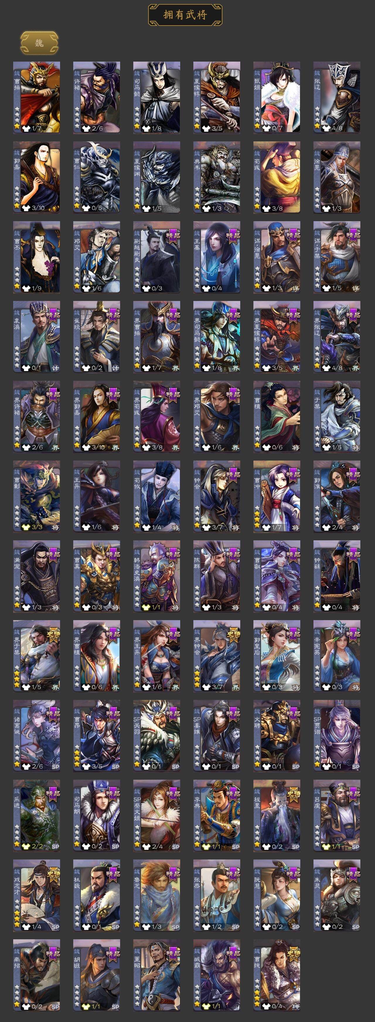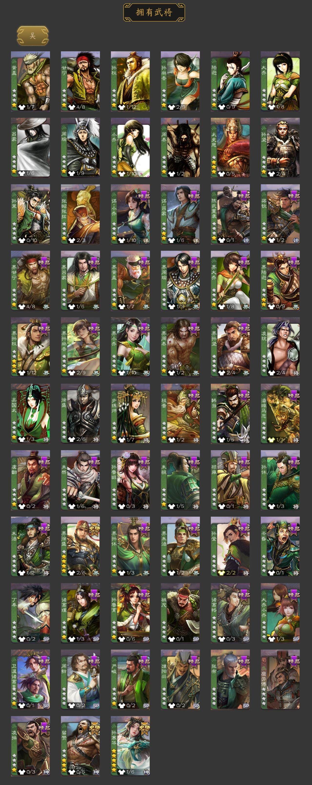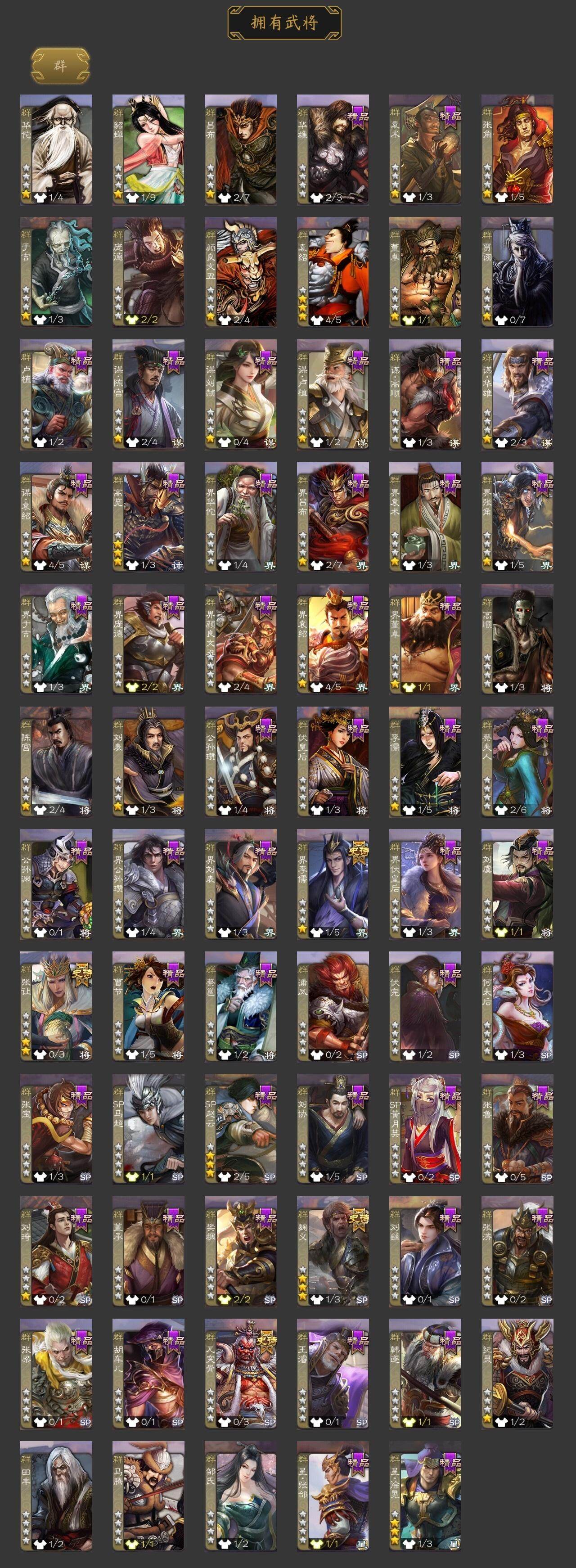 [15262866]【1039】官阶:骠骑将军;vip等级:vip8;史诗武将数量:17;动态皮肤数量:14;武将总数:281;史诗宝珠数量:0;将魂数量:947;神将:1;魏国史诗武将:10;蜀国史诗武将:4;吴国史诗武将:3;群史诗武将:4 神赵云界钟会界于禁曹纯戏志才程昱关索谋马超沙摩柯花鬘孙寒华留赞界徐盛张让麹义界李儒兀突骨神吕蒙神周瑜sp关羽sp蔡文姬乐进曹昂诸葛诞朱灵文聘sp姜维钟会曹冲郭淮满宠界王异界曹操界司马懿界夏侯惇界张辽界许褚界郭嘉李典曹真韩浩史涣陈群曹叡钟繇司马朗王基郭皇后辛宪英吕虔鲁芝蒯越蒯良界荀彧杜畿界邓艾张恭界曹植袁涣崔琰阮慧谋徐晃谋于禁牵招胡班臧霸董昭势陈到sp孙尚香关银屏夏侯霸马良关兴张苞廖化界马岱关平简雍刘封界法正界关兴张苞界刘备界关羽界赵云界马超sp徐庶吴懿周仓张松刘谌糜竺马忠李严黄皓界诸葛亮界伊籍界祝融界刘禅张翼邓芝傅肜费祎糜夫人王甫赵累界周仓宗预刘巴谋庞统界张嶷谋姜维谋张飞李遗诸葛果蒋琬费祎糜芳傅士仁甘夫人凌操大乔小乔诸葛恪诸葛瑾孙鲁育程普韩当潘璋马忠虞翻朱然界周泰界甘宁界吕蒙界黄盖界周瑜界大乔界陆逊孙鲁班朱桓顾雍孙休朱治孙登岑昏界孙权界孙尚香严畯界孙坚周鲂卫温诸葛直陈武董袭蒋钦濮阳兴谋吕蒙界孙休界朱治谋小乔张布界小乔伏完刘协界袁术sp赵云张宝伏皇后李儒界于吉界张角华雄袁术界华佗界吕布公孙瓒蔡夫人公孙渊张鲁sp黄月英刘虞曹节蔡邕张梁卢植刘琦界庞德界颜良文丑界袁绍张济樊稠界董卓刘繇董承界刘表星徐晃星张郃界公孙瓒胡车儿韩遂界伏皇后高览谋刘赪王濬谋陈宫谋卢植谋华雄谋袁绍谋高顺神诸葛亮-观星唤雨荀彧-龙年限定动态钟会-谋谟之勋动态钟会-龙年端午动态sp蔡文姬-兔年冬日动态星周不疑-才广志宏动态刘备-龙御天下动态诸葛果-虎年中秋动态花鬘-依心缱绻动态关索-依心缱绻动态孙尚香-兔年中秋动态周瑜-兔年七夕