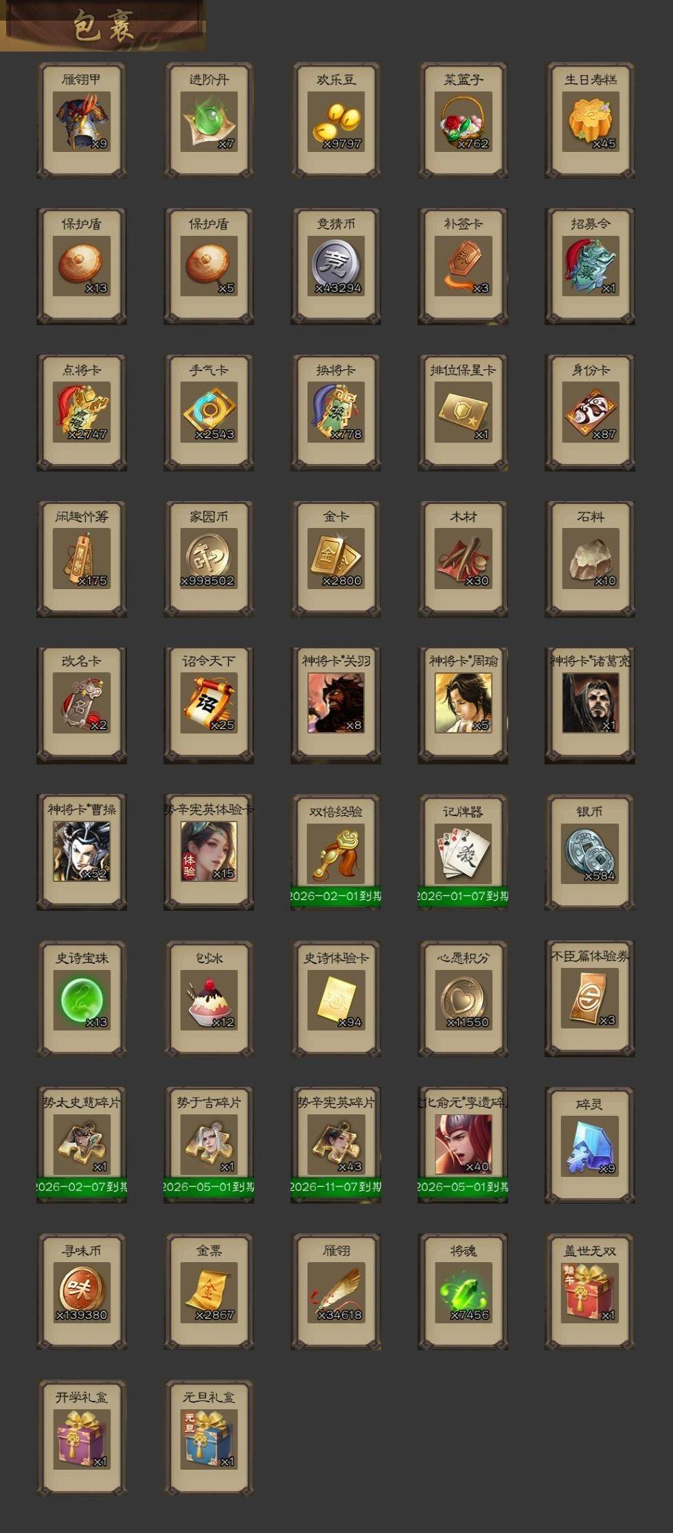 [15262998]【1038】官阶:大将军;vip等级:vip11;史诗武将数量:62;动态皮肤数量:59;武将总数:428;史诗宝珠数量:13;将魂数量:7456;神将:6;魏国史诗武将:28;蜀国史诗武将:10;吴国史诗武将:15;群史诗武将:20 神吕布神赵云神陆逊神甘宁神张辽神太史慈sp司马昭星周不疑杨修司马师界钟会界于禁郝昭曹婴曹纯戏志才刘晔清河公主程昱谋诸葛亮谋夏侯氏谋赵云谋马超王平沙摩柯界黄忠花鬘董允谋关羽谋陆逊谋黄盖周处吴景孙寒华骆统留赞界朱然界徐盛界步练师贺齐势陆郁生势太史慈文鸯左慈郑玄张让张琪瑛星甘宁苏飞审配麹义南华老仙沮授界左慈界李儒公孙康卑弥呼谋张角许攸星董卓兀突骨司马昭神吕蒙神周瑜势夏侯尚sp关羽sp曹仁sp蔡文姬乐进曹昂诸葛诞朱灵文聘sp姜维张春华钟会曹冲郭淮满宠界王异界曹操界司马懿界夏侯惇界张辽界许褚界郭嘉李典曹真韩浩史涣陈群曹叡曹休钟繇司马朗王基李通郭皇后孙资刘放辛宪英界甄姬吕虔鲁芝界典韦界荀彧界徐晃杜畿界曹丕毌丘俭界邓艾张恭界曹植界曹彰界满宠界郭淮卞夫人辛毗界陈群华歆蔡贞姬袁涣王双崔琰毛玠杨阜谋徐晃谋于禁谋荀彧牵招胡班李昭焦伯司马孚司马伷谋张辽谋郭嘉谋夏侯渊牛金界夏侯渊臧霸唐咨董昭sp孙尚香关银屏夏侯霸马良关兴张苞廖化界马岱关平简雍刘封界法正界关兴张苞界刘备界关羽界张飞界赵云界马超sp徐庶吴懿周仓张松刘谌夏侯氏糜竺马忠孙乾李严黄皓界黄月英界诸葛亮赵统赵广严颜界伊籍界卧龙诸葛界庞统界孟获界祝融陈到界姜维界刘禅吕凯张翼杨仪界廖化邓芝傅肜陈震费祎糜夫人界周仓许靖向宠宗预界吴懿彭羕谋庞统界张嶷谋姜维谋张飞李遗诸葛果蒋琬费祎糜芳傅士仁甘夫人势陈祗鲁肃孙茹凌操大乔小乔诸葛恪诸葛瑾孙鲁育程普韩当潘璋马忠虞翻朱然界周泰界甘宁界吕蒙界黄盖界周瑜界大乔界陆逊孙鲁班朱桓顾雍孙休朱治全琮步骘阚泽孙登岑昏界孙权界