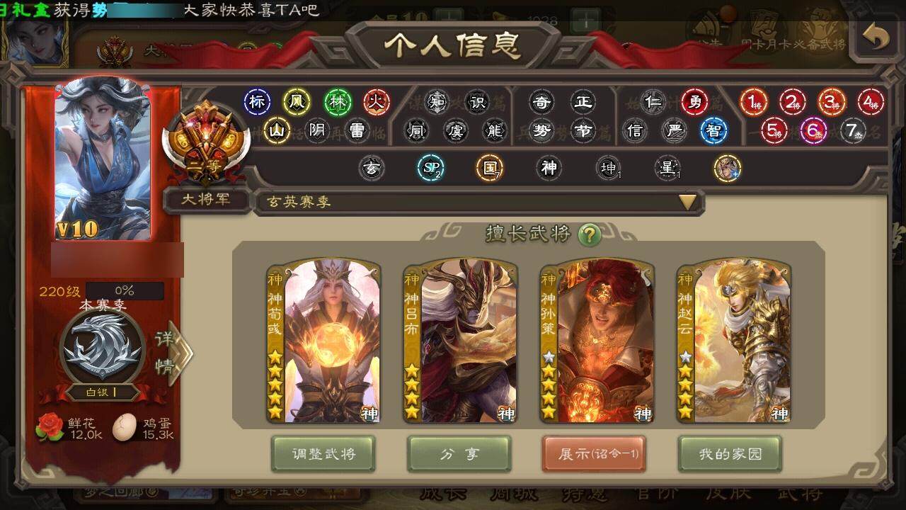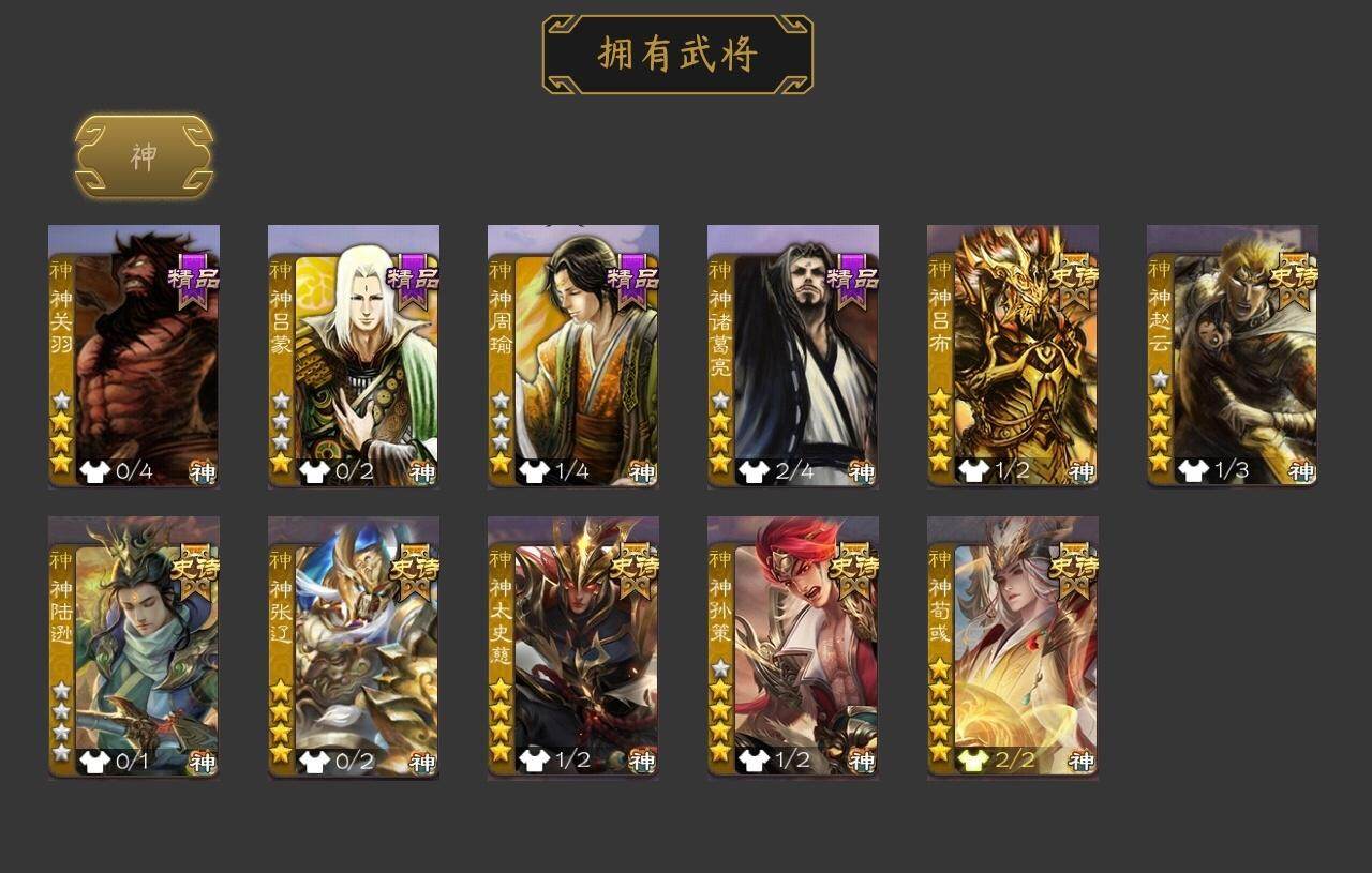 [15263270]【1049】官阶:大将军;vip等级:vip10;史诗武将数量:50;动态皮肤数量:64;武将总数:405;史诗宝珠数量:34;将魂数量:3028;神将:8;魏国史诗武将:45;蜀国史诗武将:9;吴国史诗武将:8;群史诗武将:16 神吕布神赵云神陆逊神张辽神太史慈神孙策神荀彧神诸葛亮星周不疑王粲王元姬界钟会界于禁界曹真曹纯戏志才刘晔清河公主程昱谋赵云谋马超诸葛瞻赵襄张星彩沙摩柯界黄忠花鬘董允周处骆统界朱然界徐盛界步练师势陆郁生文鸯左慈张让星黄忠星甘宁苏飞麹义南华老仙刘焉沮授界李儒公孙康杜预谋张角许攸势于吉兀突骨神吕蒙神周瑜神关羽势夏侯尚sp关羽sp蔡文姬乐进曹昂诸葛诞朱灵文聘sp姜维张春华钟会曹冲郭淮满宠界王异界曹操界司马懿界夏侯惇界张辽界许褚界郭嘉李典曹真韩浩史涣陈群曹叡曹休钟繇司马朗郭皇后孙资刘放吕虔鲁芝界典韦界荀彧界徐晃杜畿界曹丕张恭界曹植界曹彰界满宠界郭淮卞夫人辛毗界陈群华歆蔡贞姬袁涣王双崔琰毛玠谋徐晃谋于禁界曹休牵招谋夏侯渊牛金界夏侯渊臧霸唐咨董昭势陈到sp孙尚香关银屏夏侯霸马良关兴张苞廖化界马岱关平简雍刘封界法正界关兴张苞界刘备界关羽界张飞界赵云界马超sp徐庶吴懿周仓张松刘谌夏侯氏糜竺马忠李严黄皓界黄月英界诸葛亮界伊籍界卧龙诸葛界庞统界孟获界祝融吕凯张翼杨仪界廖化邓芝傅肜界简雍陈震费祎糜夫人界周仓许靖向宠宗预蒋琬彭羕谋法正谋庞统谋黄月英谋孟获谋张飞吴班霍峻诸葛果界魏延蒋琬费祎糜芳傅士仁甘夫人势孙韶鲁肃孙茹凌操大乔小乔诸葛恪诸葛瑾孙鲁育程普韩当潘璋马忠虞翻朱然界甘宁界吕蒙界黄盖界周瑜界大乔界陆逊孙鲁班朱桓顾雍孙休朱治全琮阚泽孙登岑昏界孙权界孙尚香潘濬孙亮严畯界孙坚吕岱周鲂周妃陆抗界张昭张纮许贡卫温诸葛直界吴国太界凌统界韩当界虞翻界潘璋马忠孙邵桥公张温陈武董袭孙翊蒋钦吕范界顾雍界孙鲁班濮阳兴谋韩