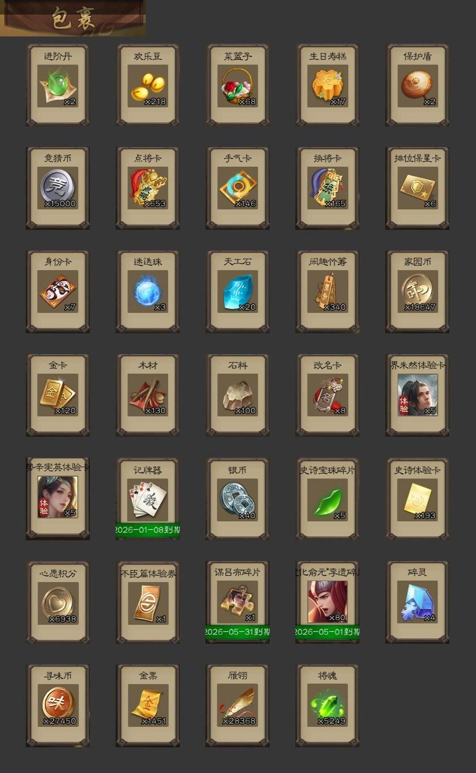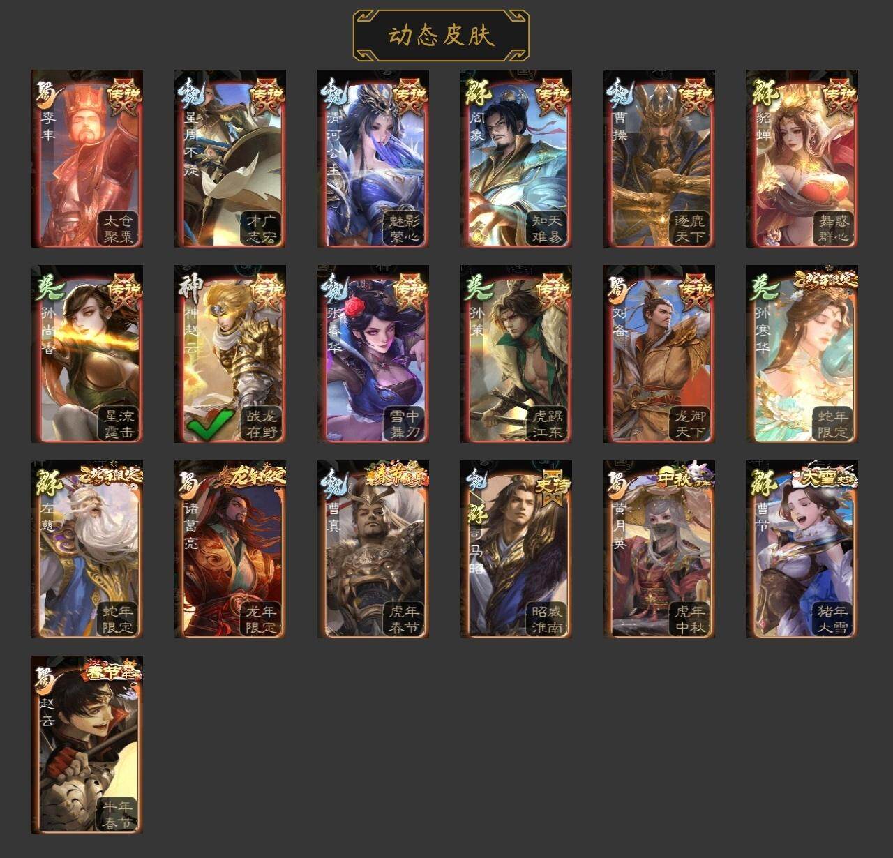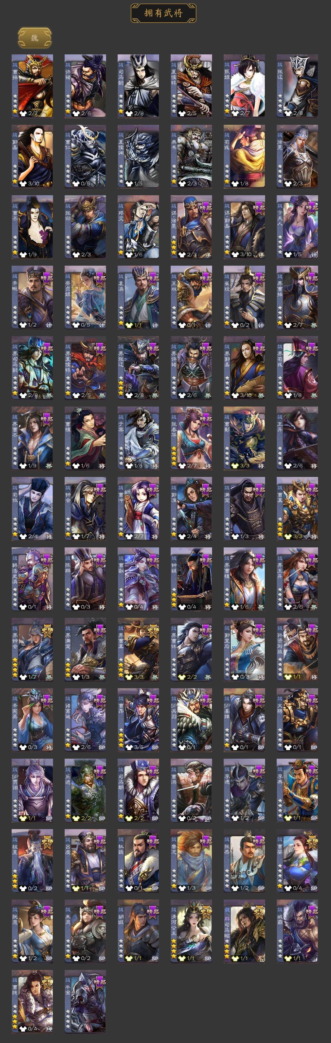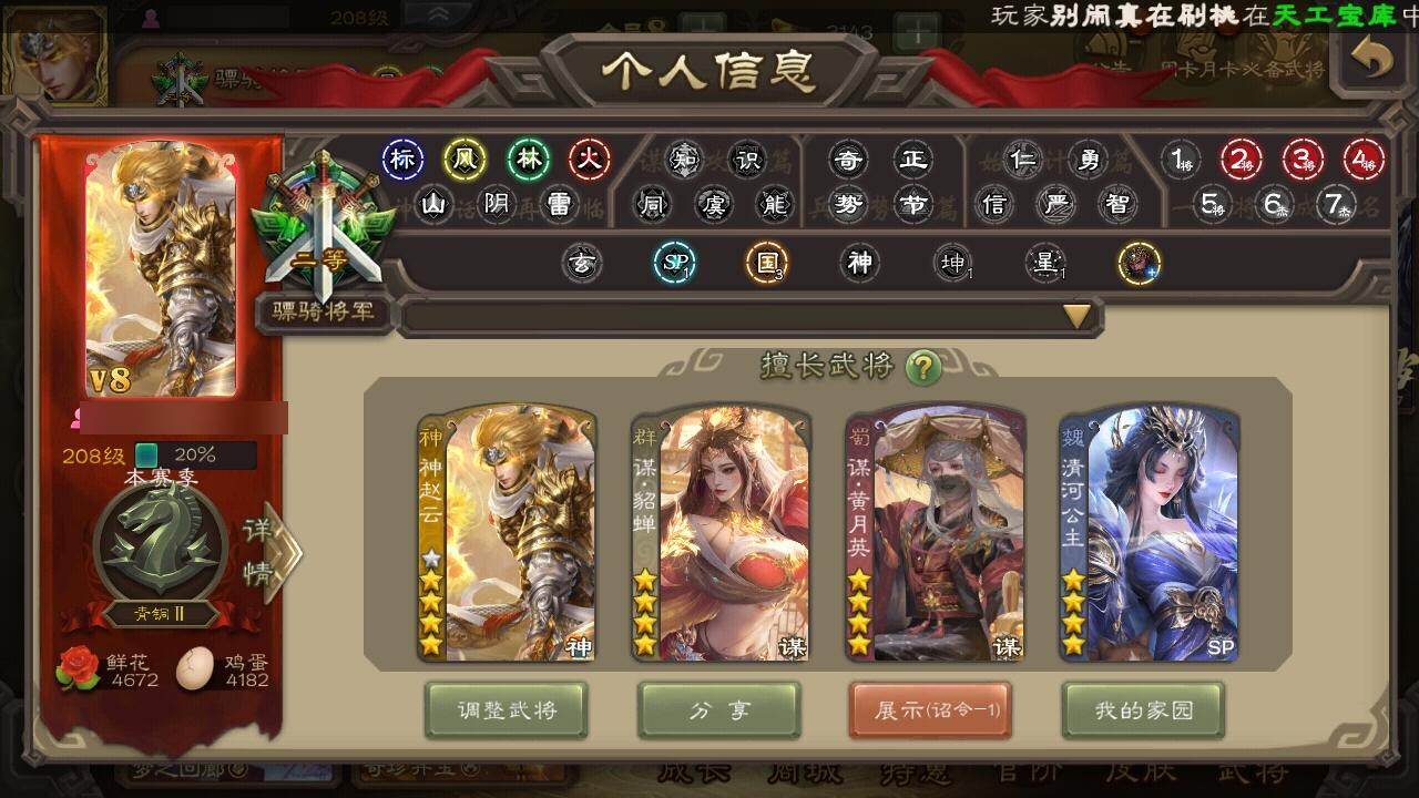 [15298253]【1056】官阶:骠骑将军;vip等级:vip8;史诗武将数量:26;动态皮肤数量:18;武将总数:300;史诗宝珠数量:0;将魂数量:5249;神将:2;魏国史诗武将:10;蜀国史诗武将:7;吴国史诗武将:2;群史诗武将:10 神吕布神赵云界钟会界曹真曹婴曹纯清河公主程昱谋赵云谋马超赵襄沙摩柯界黄忠花鬘谋关羽谋黄盖界步练师谋貂蝉左慈沮授公孙康卑弥呼势于吉星董卓兀突骨司马昭神吕蒙神周瑜sp关羽乐进曹昂诸葛诞朱灵文聘sp姜维张春华钟会曹冲郭淮满宠界王异界曹操界司马懿界夏侯惇界张辽界许褚界郭嘉李典曹真韩浩史涣陈群曹叡钟繇司马朗李通郭皇后孙资刘放辛宪英吕虔鲁芝界荀彧杜畿界曹丕张恭界曹植界满宠卞夫人辛毗蔡贞姬袁涣王双崔琰阮慧谋徐晃界曹休胡班谋郭嘉牛金臧霸sp孙尚香关银屏夏侯霸马良关兴张苞廖化界马岱关平简雍刘封界法正界关兴张苞界刘备界关羽界赵云sp徐庶吴懿周仓张松刘谌夏侯氏马忠李严赵统赵广严颜界庞统界孟获界祝融吕凯张翼杨仪界廖化邓芝傅肜费祎糜夫人界周仓宗预蒋琬刘巴谋庞统谋黄月英界张嶷谋姜维谋张飞吴班诸葛果蒋琬费祎甘夫人鲁肃凌操诸葛瑾孙鲁育程普韩当潘璋马忠虞翻朱然界甘宁界吕蒙界黄盖界周瑜界大乔界陆逊孙鲁班朱桓顾雍孙休朱治全琮界孙权界孙尚香陆绩孙亮严畯吕岱周鲂许贡卫温诸葛直张温陈武董袭蒋钦吕范谋韩当谋吕蒙谋周瑜界孙休界全琮界朱桓谋小乔张布界小乔友徐庶伏完刘协界袁术sp赵云张宝伏皇后李儒华雄袁术界华佗界吕布公孙瓒蔡夫人公孙渊sp黄月英董白刘虞曹节刘琦郭汜界董卓刘繇界蔡文姬董承界刘表界公孙瓒丁原胡车儿韩遂界伏皇后孔融羊祜高览马元义谋刘赪王濬谋华雄阎象鲍信木鹿大王贾充杨弘张任李傕郭汜势田丰神赵云-战龙在野动态曹操-逐鹿天下动态张春华-雪中舞刃动态曹真-虎年春节动态清河公主-魅影萦心动态星周不疑-才广志宏动态刘备-龙御天下