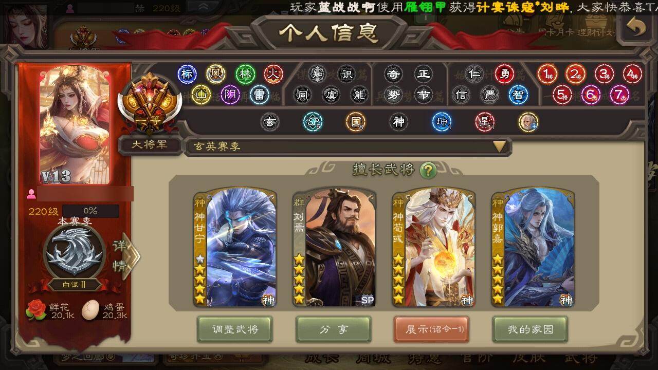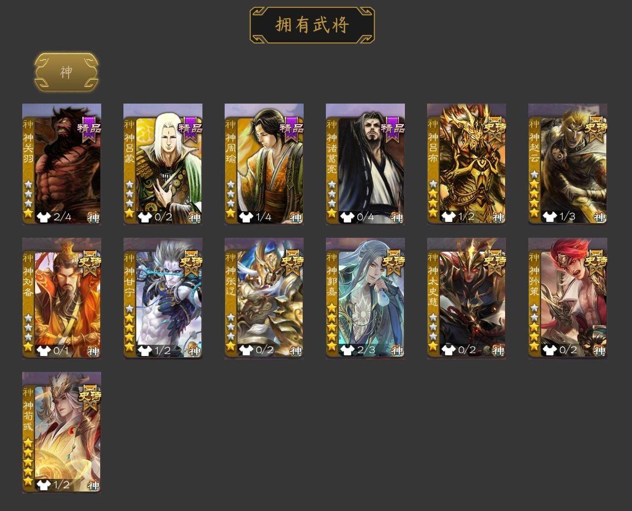 [15298360]【1054】官阶:大将军;vip等级:vip13;史诗武将数量:74;动态皮肤数量:65;武将总数:455;史诗宝珠数量:0;将魂数量:325;神将:10;魏国史诗武将:38;蜀国史诗武将:14;吴国史诗武将:12;群史诗武将:24 神吕布神赵云神刘备神甘宁神张辽神郭嘉神太史慈神孙策神荀彧神诸葛亮星周不疑王粲杨修王元姬王凌马钧界钟会界于禁界曹真嵇康郝昭陈琳曹纯戏志才刘晔谋曹丕程昱关索马云騄谋黄忠谋赵云谋马超诸葛瞻赵襄张星彩王平沙摩柯谯周界黄忠花鬘董允谋黄盖周处吴景孙皓骆统留赞界朱然界徐盛界步练师贺齐文鸯左慈郑玄张仲景张让杨彪徐荣星黄忠陶谦苏飞审配麹义南华老仙祢衡刘焉沮授界左慈公孙康杜预卑弥呼许攸兀突骨士燮司马昭神吕蒙神周瑜神关羽势夏侯尚sp关羽sp曹仁sp蔡文姬乐进曹昂诸葛诞朱灵文聘sp姜维张春华钟会曹冲郭淮满宠界王异界曹操界司马懿界夏侯惇界张辽界许褚界郭嘉李典曹真韩浩史涣陈群曹叡曹休钟繇司马朗王基李通郭皇后孙资刘放辛宪英界甄姬吕虔鲁芝蒯越蒯良界典韦界荀彧界徐晃杜畿界曹丕毌丘俭界邓艾张恭贾逵界曹植界曹彰界满宠界郭淮卞夫人华歆蔡贞姬袁涣王双崔琰毛玠阮慧谋徐晃谋于禁界曹休牵招胡班谋夏侯渊牛金界夏侯渊界曹仁臧霸唐咨董昭sp孙尚香关银屏夏侯霸马良关兴张苞廖化界马岱关平简雍刘封界法正界关兴张苞界刘备界关羽界张飞界赵云界马超sp徐庶吴懿周仓张松刘谌夏侯氏糜竺马忠孙乾李严黄皓吴苋秦宓界黄月英界诸葛亮赵统赵广严颜界伊籍界卧龙诸葛界庞统界孟获界祝融陈到界姜维界刘禅胡金定吕凯张翼杨仪界廖化邓芝傅肜陈震费祎糜夫人王甫赵累界周仓向宠宗预蒋琬刘巴彭羕谋法正谋庞统界张嶷谋姜维谋孟获谋张飞霍峻诸葛果界魏延蒋琬费祎糜芳傅士仁甘夫人鲁肃孙茹凌操大乔小乔诸葛恪诸葛瑾孙鲁育程普韩当潘璋马忠虞翻朱然界周泰界甘宁界吕蒙界黄盖界周瑜界大乔