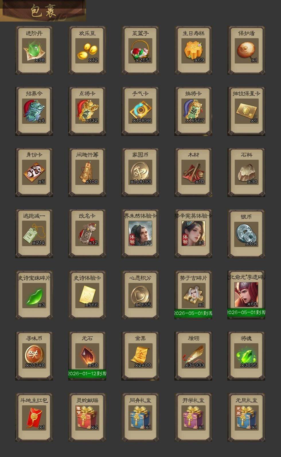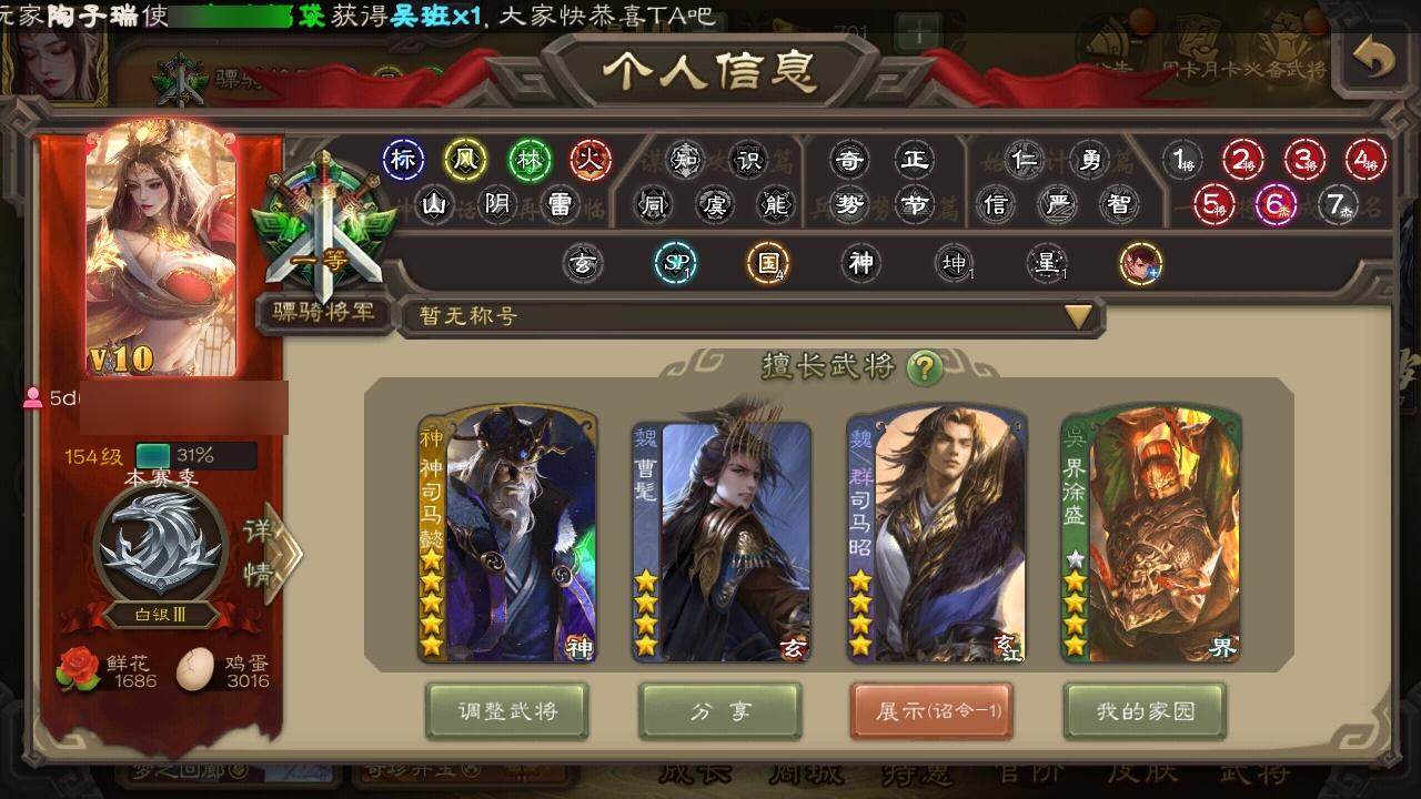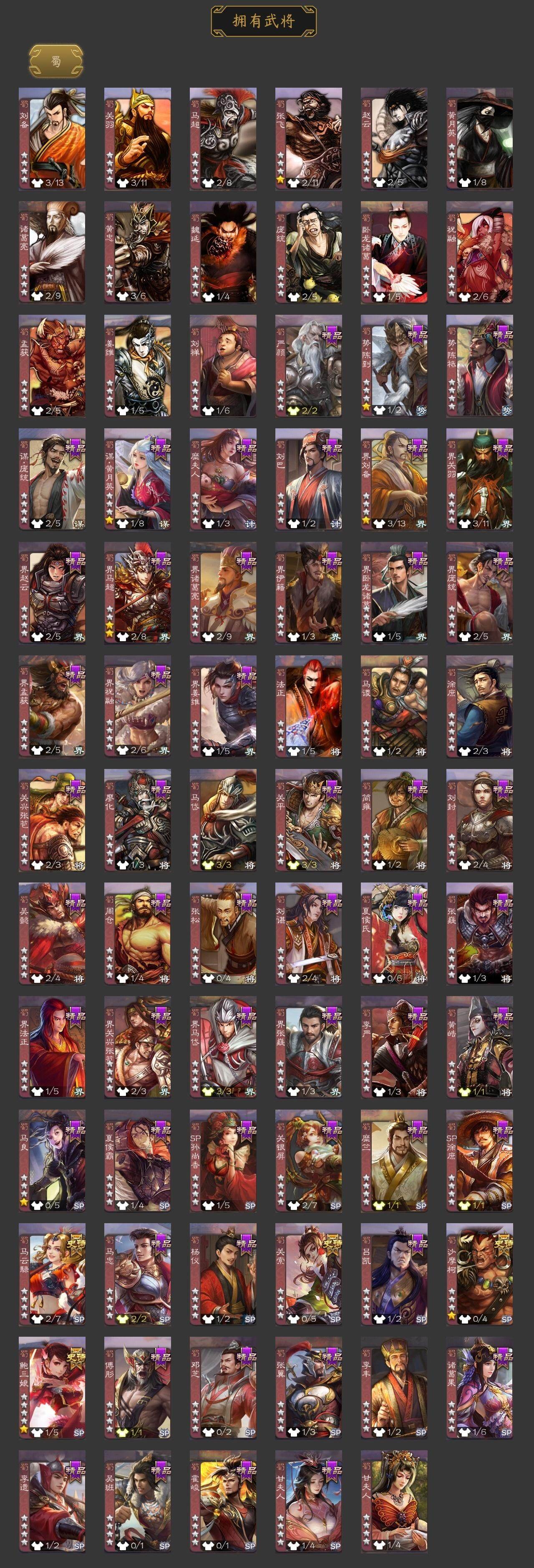 [15298533]【1052】官阶:骠骑将军;vip等级:vip10;史诗武将数量:32;动态皮肤数量:23;武将总数:322;史诗宝珠数量:0;将魂数量:3095;神将:8;魏国史诗武将:18;蜀国史诗武将:4;吴国史诗武将:5;群史诗武将:9 神吕布神赵云神司马懿神陆逊神刘备神张辽神太史慈神诸葛亮sp司马昭曹髦杨修界钟会嵇康曹纯戏志才清河公主程昱关索马云騄沙摩柯鲍三娘留赞界朱然界徐盛文鸯左慈张让麹义南华老仙沮授界李儒兀突骨司马昭神吕蒙神周瑜神关羽势夏侯尚sp关羽sp蔡文姬乐进曹昂诸葛诞朱灵文聘sp姜维钟会曹冲郭淮满宠界王异界曹操界司马懿界夏侯惇界张辽界许褚界郭嘉李典曹真韩浩史涣陈群曹叡曹休钟繇司马朗李通郭皇后孙资刘放鲁芝蒯越蒯良界典韦界荀彧界徐晃杜畿界曹丕张恭界曹植界满宠界郭淮卞夫人华歆蔡贞姬崔琰阮慧胡班司马孚谋夏侯渊牛金界夏侯渊臧霸势陈到sp孙尚香关银屏夏侯霸马良关兴张苞廖化界马岱关平简雍刘封界法正界关兴张苞界刘备界关羽界赵云界马超sp徐庶吴懿周仓张松刘谌夏侯氏糜竺马忠李严黄皓界诸葛亮严颜界伊籍界卧龙诸葛界庞统界孟获界祝融界姜维吕凯张翼杨仪邓芝傅肜糜夫人刘巴谋庞统谋黄月英界张嶷吴班李遗霍峻诸葛果甘夫人势陈祗鲁肃凌操诸葛瑾孙鲁育程普韩当潘璋马忠虞翻朱然界甘宁界吕蒙界黄盖界周瑜界大乔界陆逊孙鲁班朱桓顾雍孙休朱治全琮孙登岑昏界孙权界孙尚香潘濬孙亮严畯界孙坚吕岱周鲂周妃界张昭张纮卫温诸葛直界韩当桥公张温陈武董袭界顾雍谋韩当谋周瑜界全琮界朱治谋小乔张布谋诸葛瑾界小乔友徐庶友庞统伏完刘协界袁术sp赵云张宝伏皇后李儒界张角华雄袁术界华佗界吕布公孙瓒蔡夫人公孙渊郭图逢纪张鲁严白虎sp黄月英董白刘虞曹节界貂蝉sp太史慈张梁刘琦界庞德界颜良文丑界袁绍张济樊稠界董卓刘繇界高顺董承界刘表界公孙瓒胡车儿界伏皇后荀谌谋杨婉王濬谋卢植杨弘张任李傕