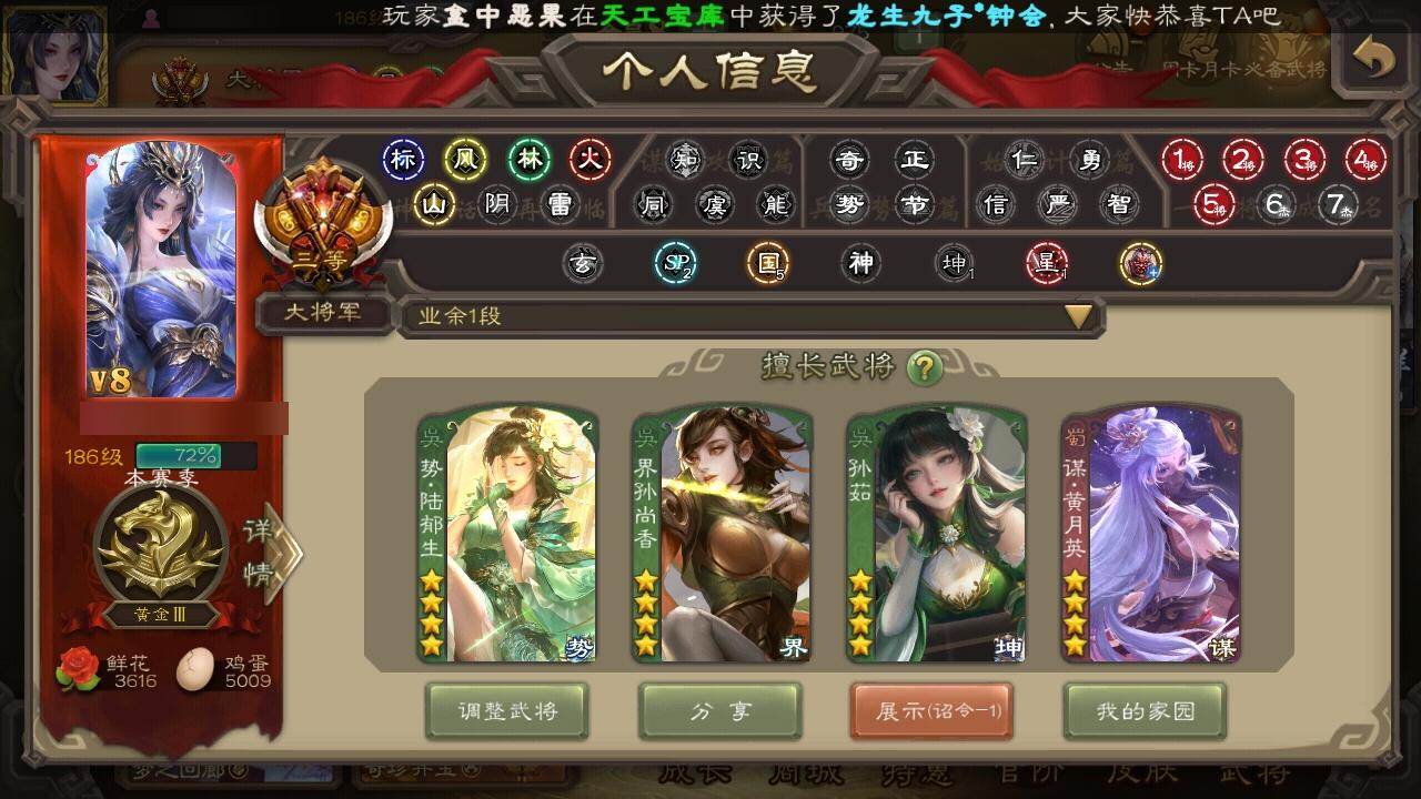 [15373192]【1066】官阶:大将军;vip等级:vip8;史诗武将数量:27;动态皮肤数量:37;武将总数:316;史诗宝珠数量:0;将魂数量:2305;神将:3;魏国史诗武将:18;蜀国史诗武将:5;吴国史诗武将:2;群史诗武将:10 神吕布神赵云神陆逊星周不疑杨修王元姬曹婴曹纯戏志才清河公主程昱关索谋赵云诸葛瞻沙摩柯花鬘界徐盛势陆郁生左慈星黄忠沮授界李儒谋张角许攸星董卓兀突骨司马昭神吕蒙神周瑜势夏侯尚sp关羽sp曹仁sp蔡文姬乐进曹昂诸葛诞朱灵文聘sp姜维张春华钟会曹冲郭淮满宠界王异界曹操界司马懿界夏侯惇界张辽界许褚界郭嘉李典曹真韩浩史涣陈群曹叡曹休钟繇司马朗李通郭皇后孙资刘放鲁芝界荀彧杜畿张恭界曹植界曹彰界满宠界郭淮卞夫人华歆蔡贞姬袁涣崔琰阮慧谋徐晃谋甄姬界曹休牵招胡班文钦谋夏侯渊界夏侯渊臧霸董昭sp孙尚香关银屏夏侯霸马良关兴张苞廖化界马岱关平简雍刘封界法正界关兴张苞界刘备界关羽界张飞界赵云界马超sp徐庶吴懿周仓张松刘谌夏侯氏糜竺马忠李严黄皓界诸葛亮赵统赵广严颜界庞统吕凯杨仪傅肜界简雍陈震费祎糜夫人界周仓刘巴彭羕谋庞统谋黄月英界张嶷谋孟获谋张飞谋祝融李遗霍峻诸葛果甘夫人鲁肃孙茹凌操大乔小乔诸葛恪诸葛瑾孙鲁育程普韩当潘璋马忠虞翻朱然界甘宁界吕蒙界黄盖界周瑜界大乔界陆逊孙鲁班朱桓顾雍孙休朱治全琮孙登界孙权界孙尚香严畯卫温诸葛直桥公陈武董袭吕范界顾雍界孙鲁班谋韩当谋吕蒙谋周瑜界全琮界朱治谋小乔谋诸葛瑾界小乔孟达友徐庶蔡文姬伏完刘协界袁术sp赵云张宝伏皇后李儒界张角华雄袁术界华佗界吕布公孙瓒蔡夫人公孙渊郭图逢纪张鲁蹋顿严白虎sp黄月英董白刘虞曹节蔡邕界貂蝉卢植界庞德界颜良文丑张济樊稠刘繇董承界刘表星张辽星徐晃星张郃界公孙瓒丁原羊祜谋刘赪王濬谋卢植谋华雄阎象木鹿大王张任李傕郭汜势田丰神赵云-战龙在野动态神太史慈-勇撼日月
