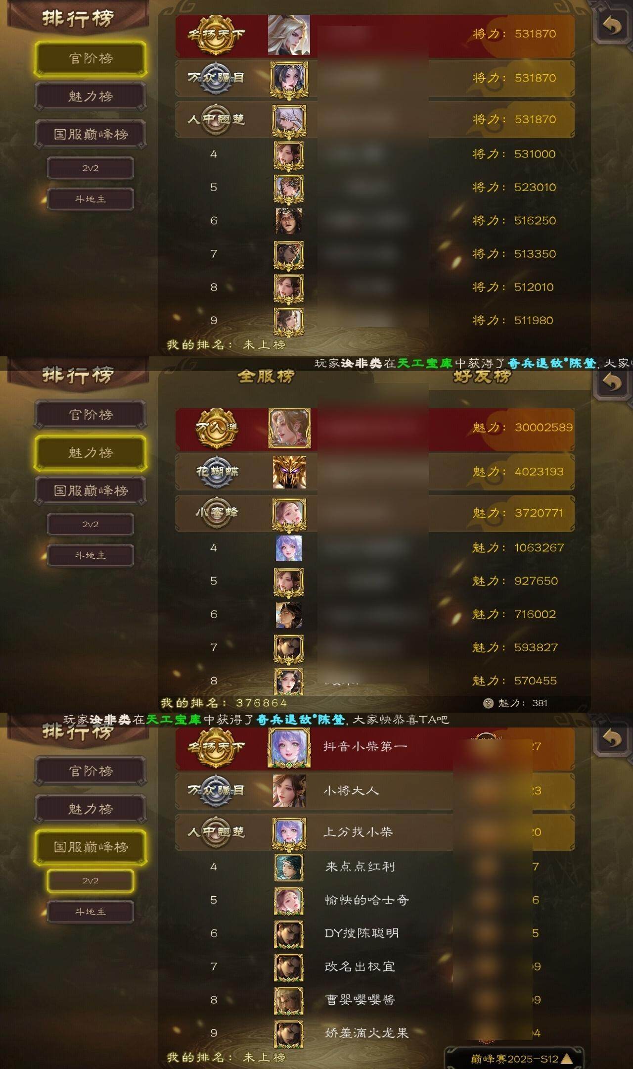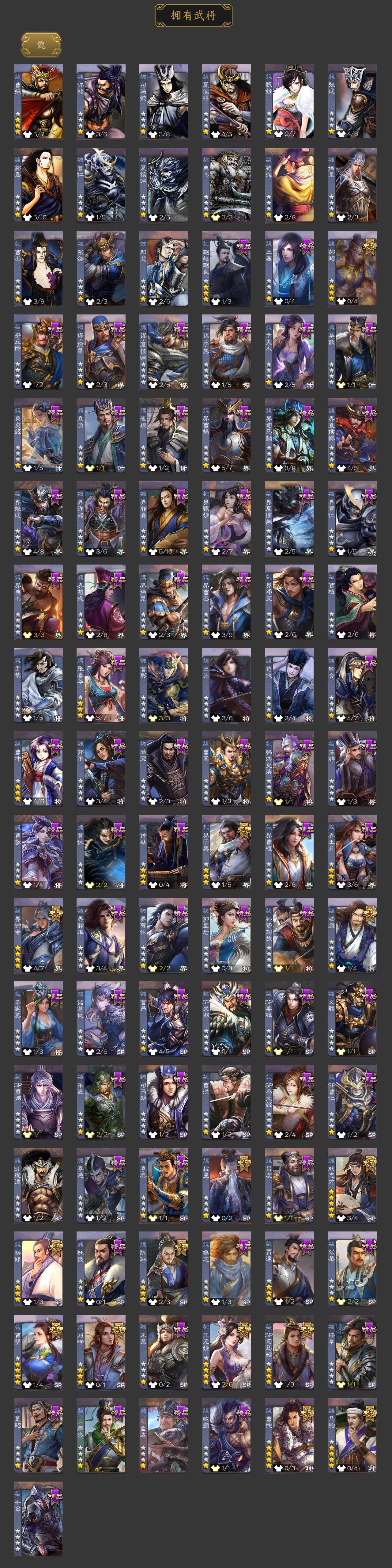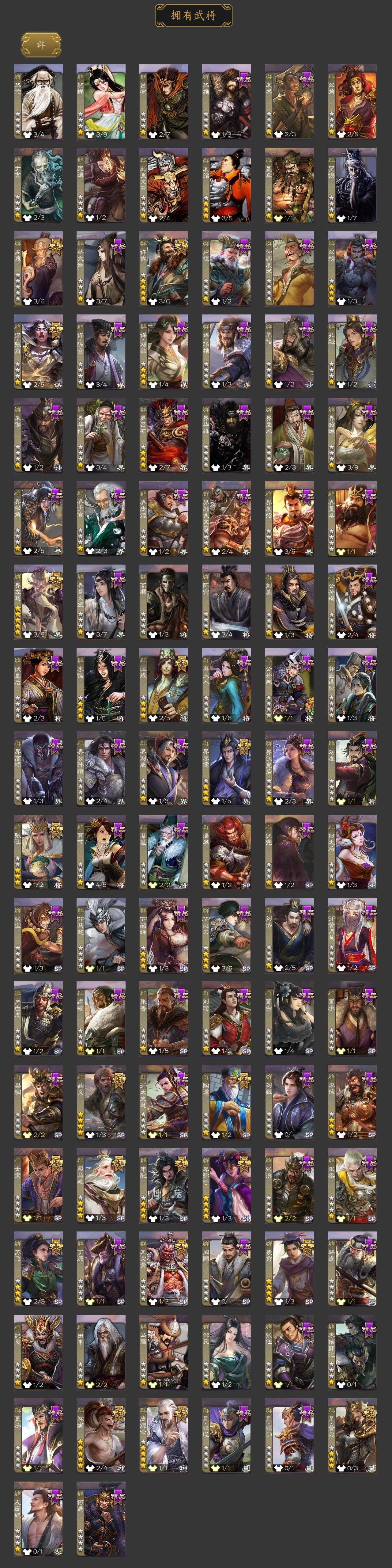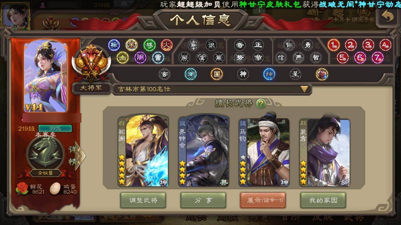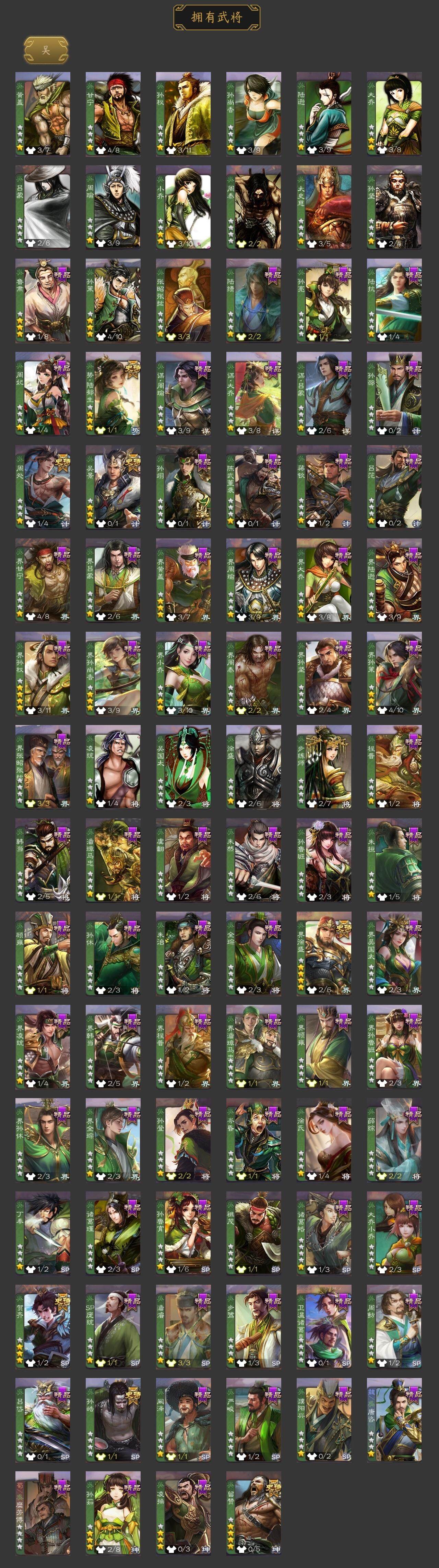 [15373294]【205】官阶:大将军;vip等级:vip11;史诗武将数量:57;动态皮肤数量:53;武将总数:413;史诗宝珠数量:0;将魂数量:2823;神将:8;魏国史诗武将:36;蜀国史诗武将:12;吴国史诗武将:7;群史诗武将:20 神吕布神赵云神陆逊神刘备神张辽神吕蒙神周瑜神诸葛亮sp司马昭杨修王元姬马钧界钟会界于禁嵇康郝昭陈琳曹婴曹纯戏志才刘晔关索马云騄谋赵云谋马超诸葛瞻赵襄张星彩王平沙摩柯界黄忠花鬘董允周处吴景孙皓留赞界徐盛贺齐势陆郁生谋黄月英裴秀左慈张让星黄忠陶谦苏飞司马徽审配麹义庞德公祢衡沮授界左慈界李儒卑弥呼谋张角张绣李傕许攸神陆逊-绽焰摧枯动态神吕蒙-兼资文武动态神曹操-天下归心神曹操-玄天通冥动态神吕布-冠绝天下动态神赵云-战龙在野动态sp司马昭-鼠年冬至(动态)曹植-龙年中秋动态钟会-潜蛟觊天动态曹丕-龙年中秋动态sp蔡文姬-兔年冬日动态曹冲-五陵英少动态甄姬-牛年清明动态曹丕-猪年端午动态张郃-背水一战动态邓艾-神兵天降动态界甄姬-牛年清明动态界曹丕-猪年端午动态界邓艾-神兵天降动态钟会-谋谟之勋动态界钟会-谋谟之勋动态戏志才-举棋若定动态曹婴-兔年春节动态王元姬-鼠年冬至动态清河公主-魅影萦心动态刘备-龙御天下动态诸葛亮-龙年限定动态马超-牛年春节动态张飞-猪年中秋动态赵云-截江救主动态黄月英-鼠年春节动态魏延-麒麟生角动态刘禅-猪年端午动态界张飞-猪年中秋动态界赵云-截江救主动态界马超-牛年春节动态界黄月英-鼠年春节动态界魏延-麒麟生角动态界刘禅-猪年端午动态夏侯氏-猪年中秋动态关银屏-鼠年中秋动态关银屏-兔年春节动态张星彩-猪年中秋动态赵襄-猪年春节动态关索-虎年七夕动态李丰-太仓聚粟动态诸葛果-蛇年限定动态孙策-虎踞江东动态孙权-猪年端午动态孙权-吴王六剑动态孙尚香-星流霆击动态大乔-猪年七夕动态大乔-鼠年春分动态孙策
